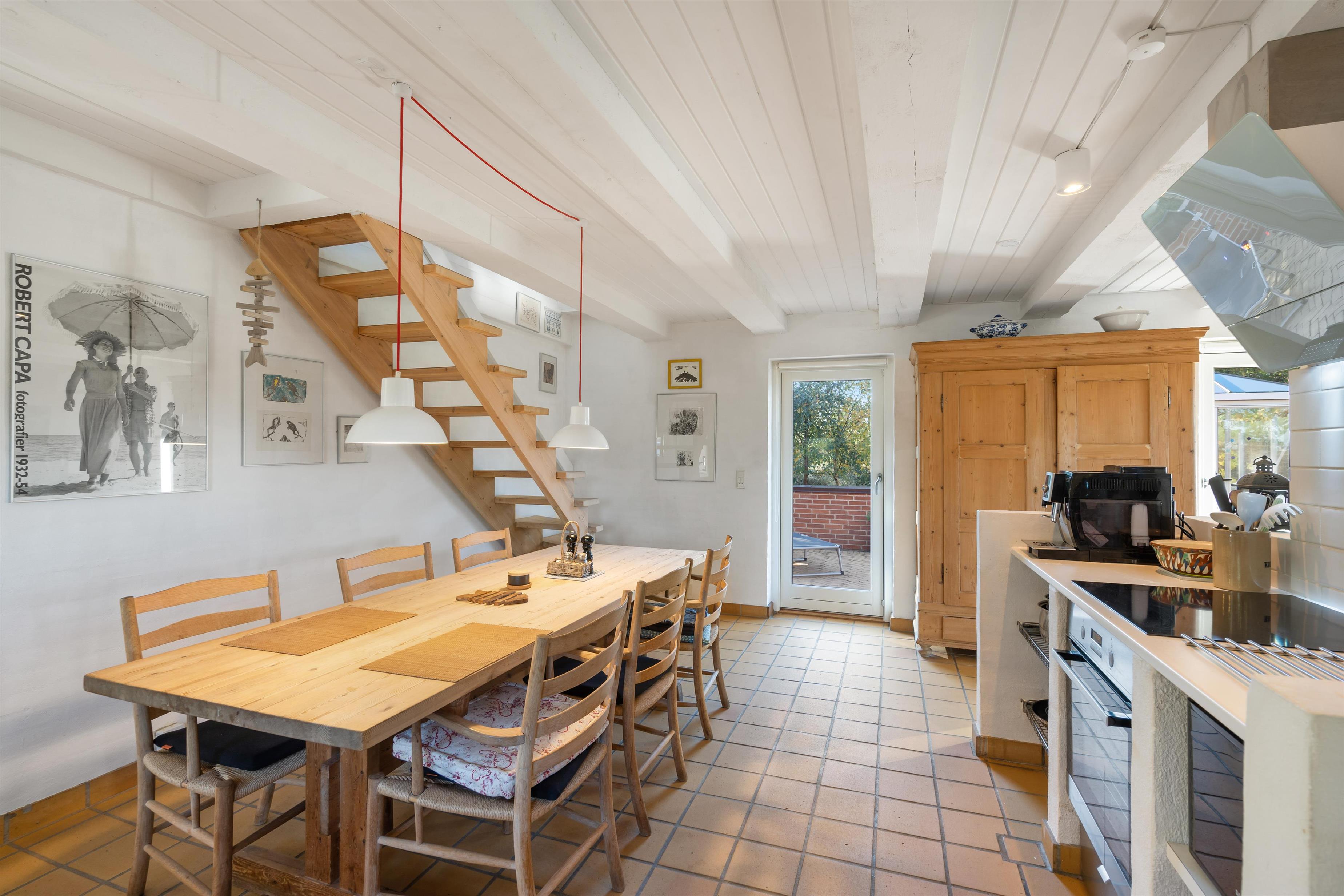 I stueplan finder I sommerhusets hjerte, som også udgør jeres store samlingspunkt; alrummet. Her er rammerne sat for hyggelige feriestunder, hvor I kan se jeres yndlingsfilm i tv’et via Apple TV, spille sjove spil ved bordet eller lave lækker mad i køkkenet.