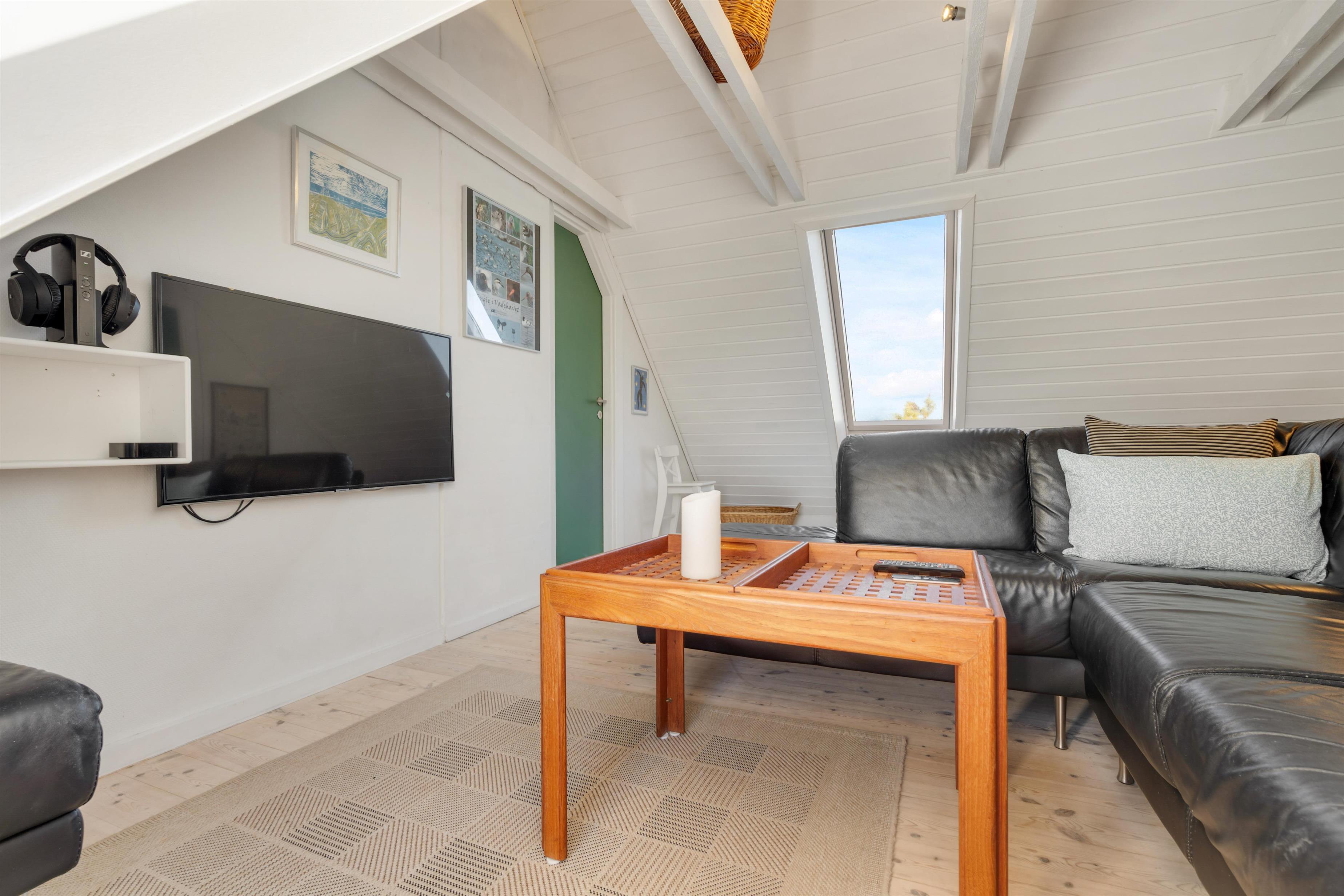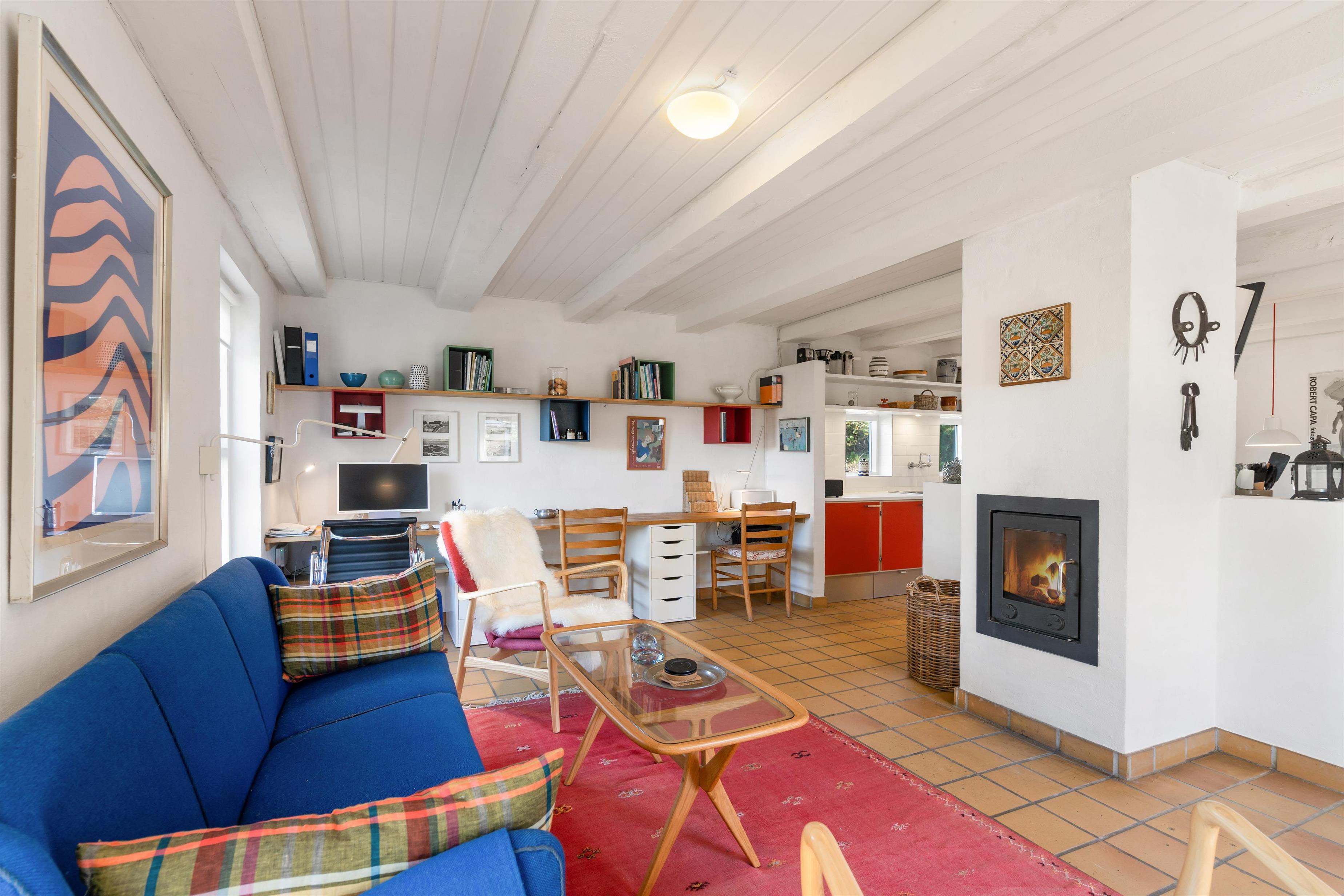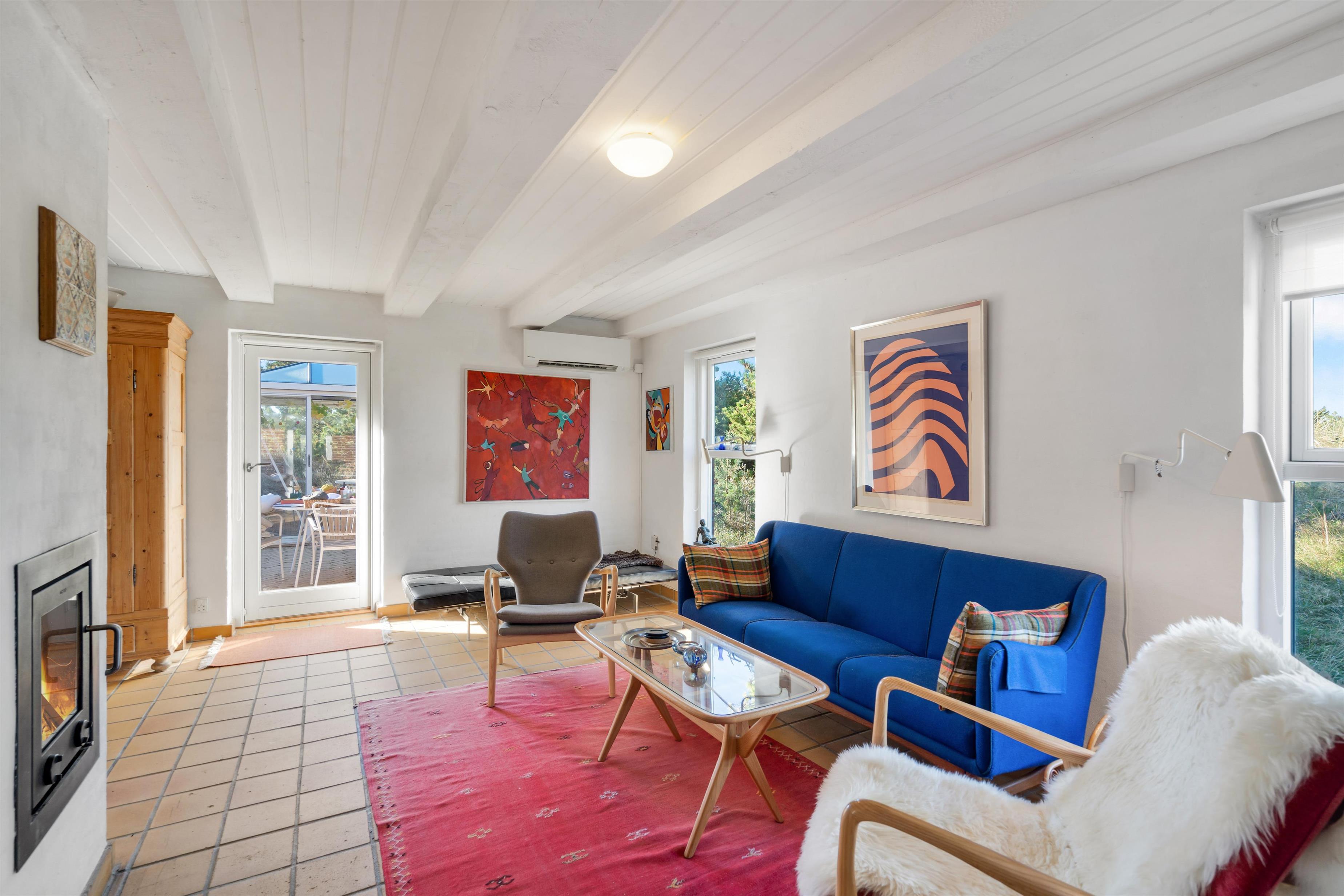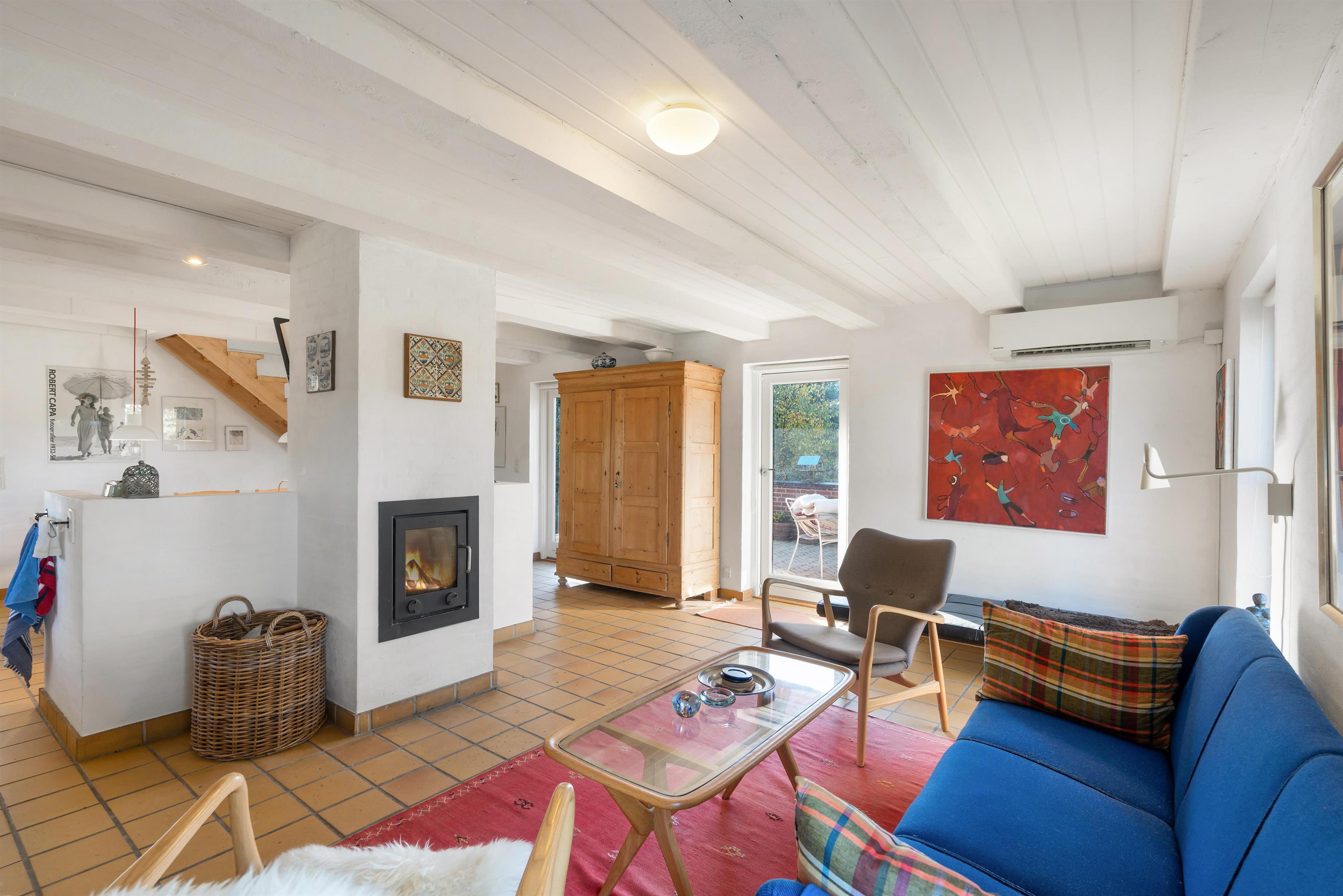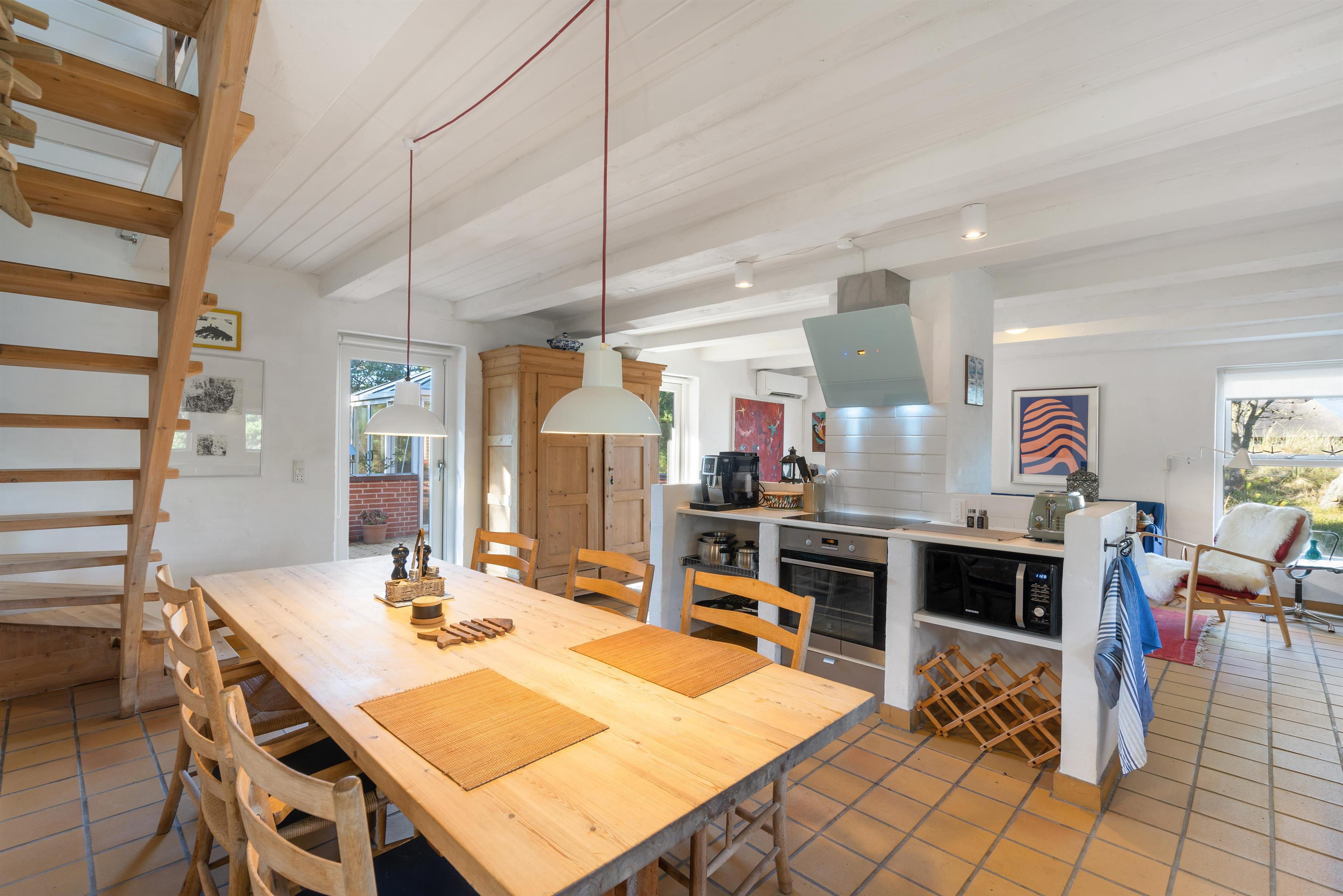 I alrummet sørger brændeovnen med sin knitren og varme for, at feriestemningen bliver fuldendt. Derudover er der en varmepumpe i feriehuset, der på energivenlig vis sørger for, at I har et godt indeklima med behagelige temperaturer.