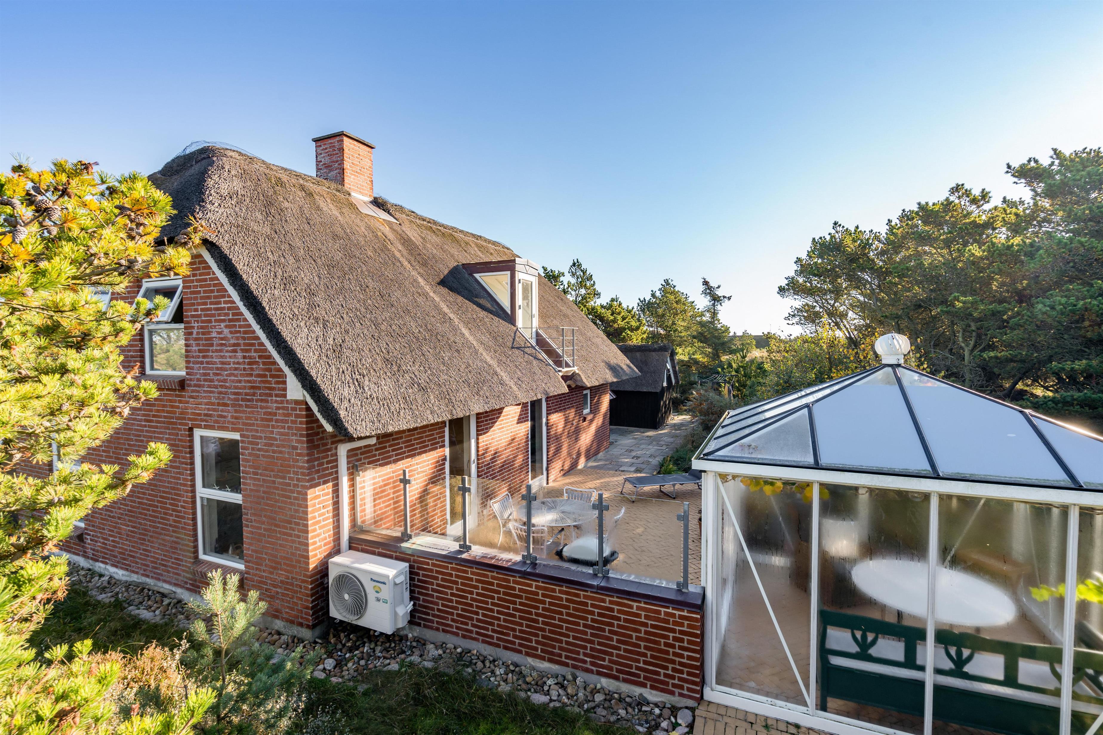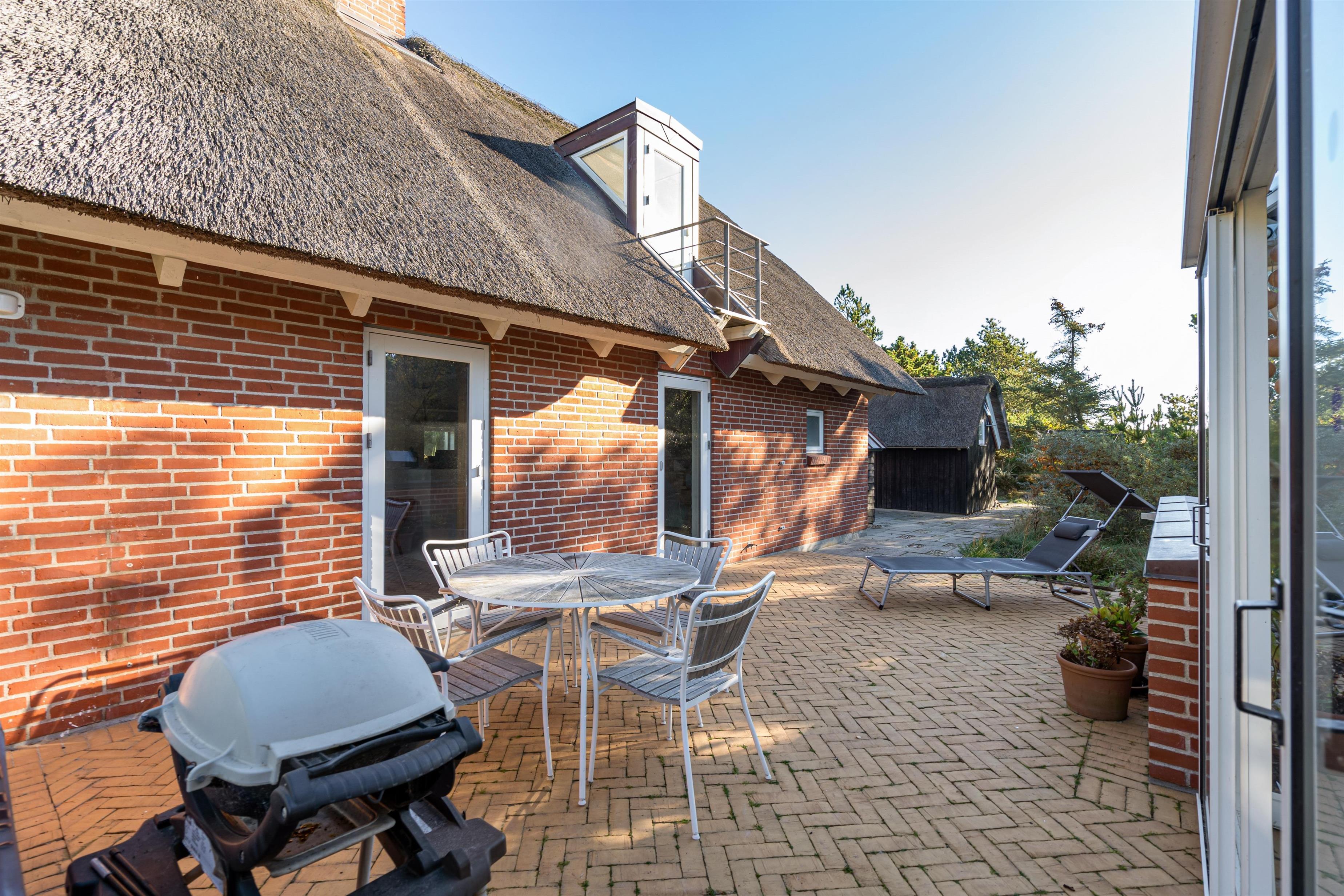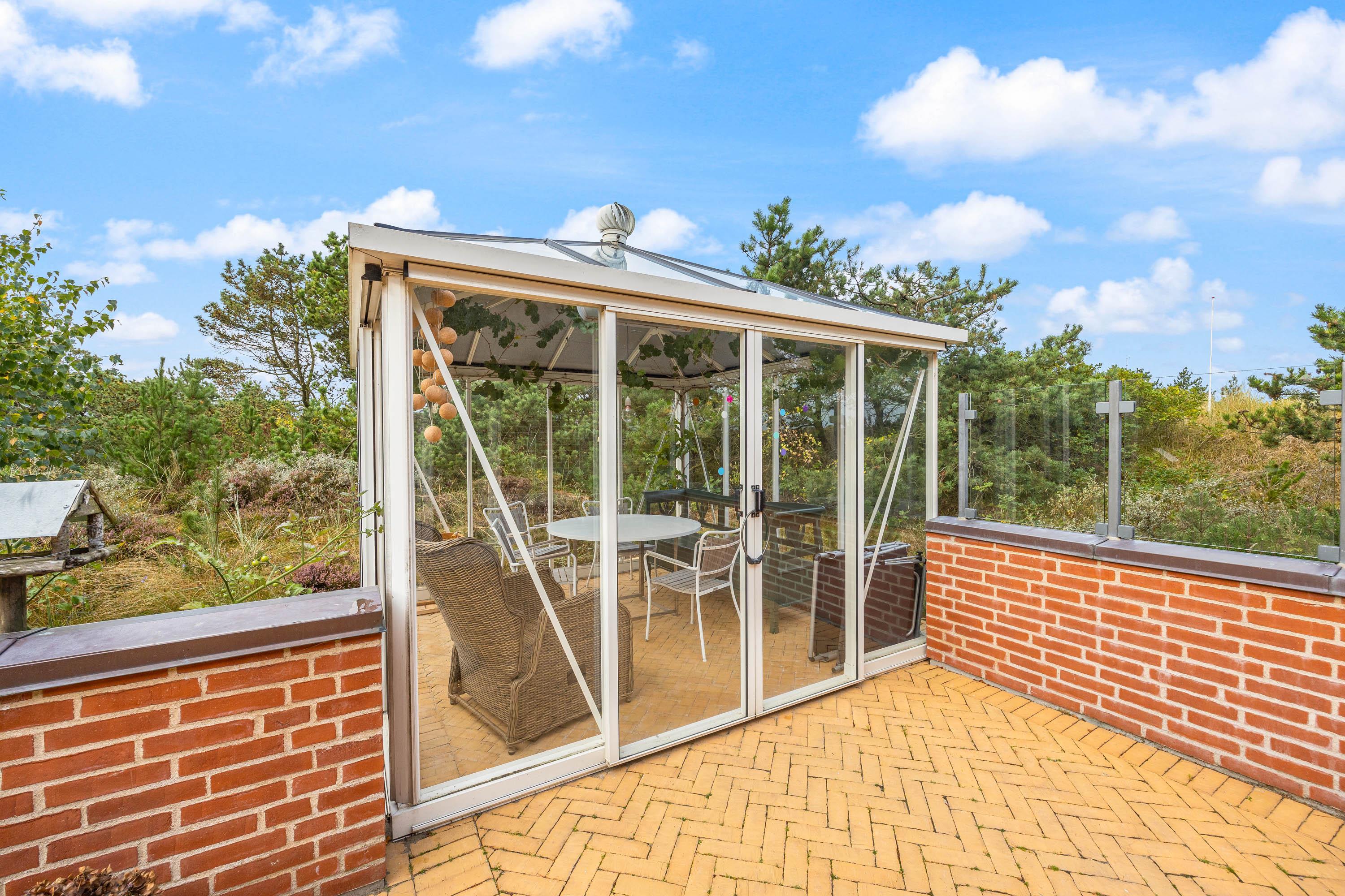 På de solrige feriedage kan I rykke ud på sommerhusets terrasse, hvor I kan sætte jer godt til rette i havemøbler og liggestole, mens I slapper af til lyden af bølgernes brusen i baggrunden. I kan også sætte jer ind i det hyggelige orangeri, hvor der både er ly og læ.