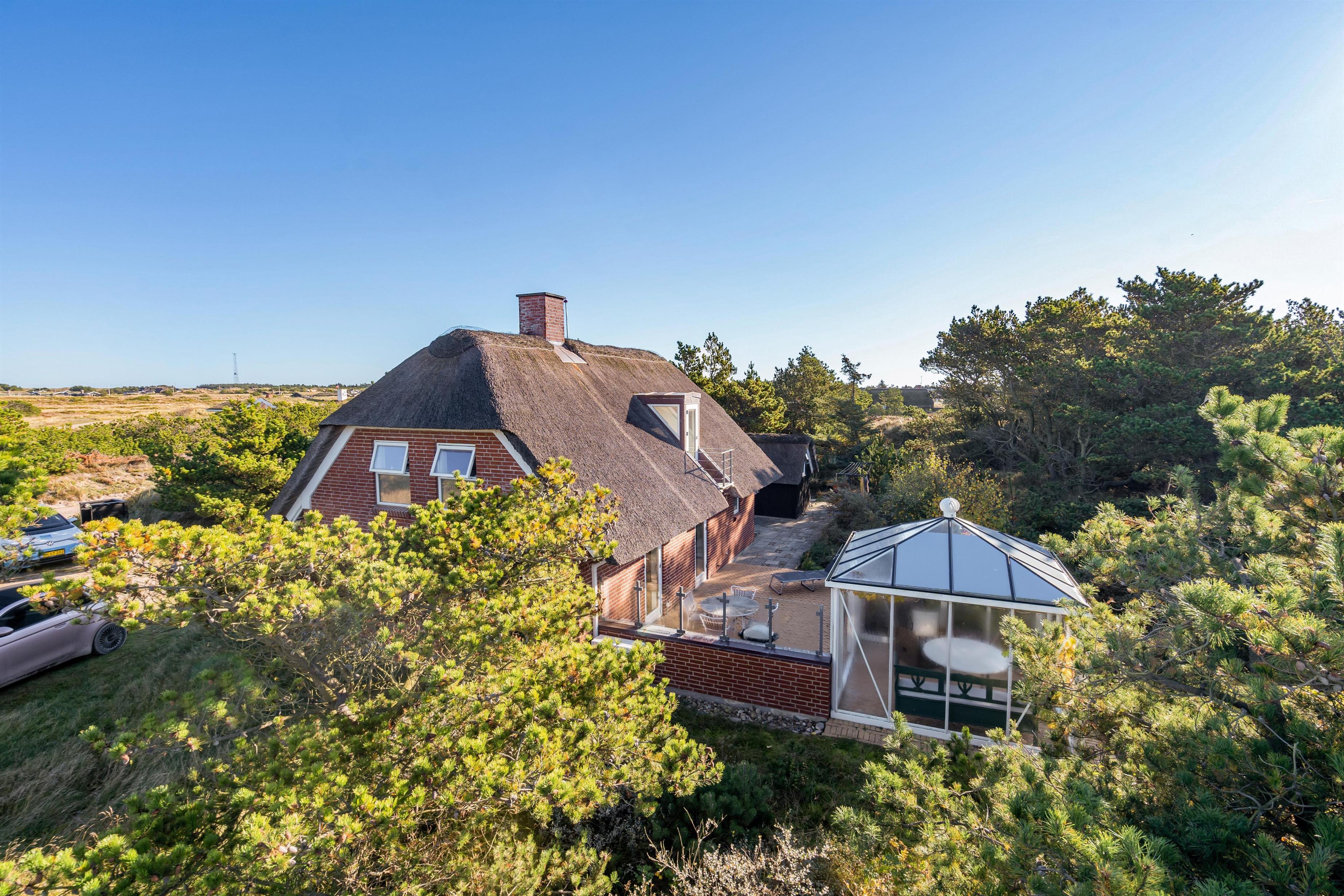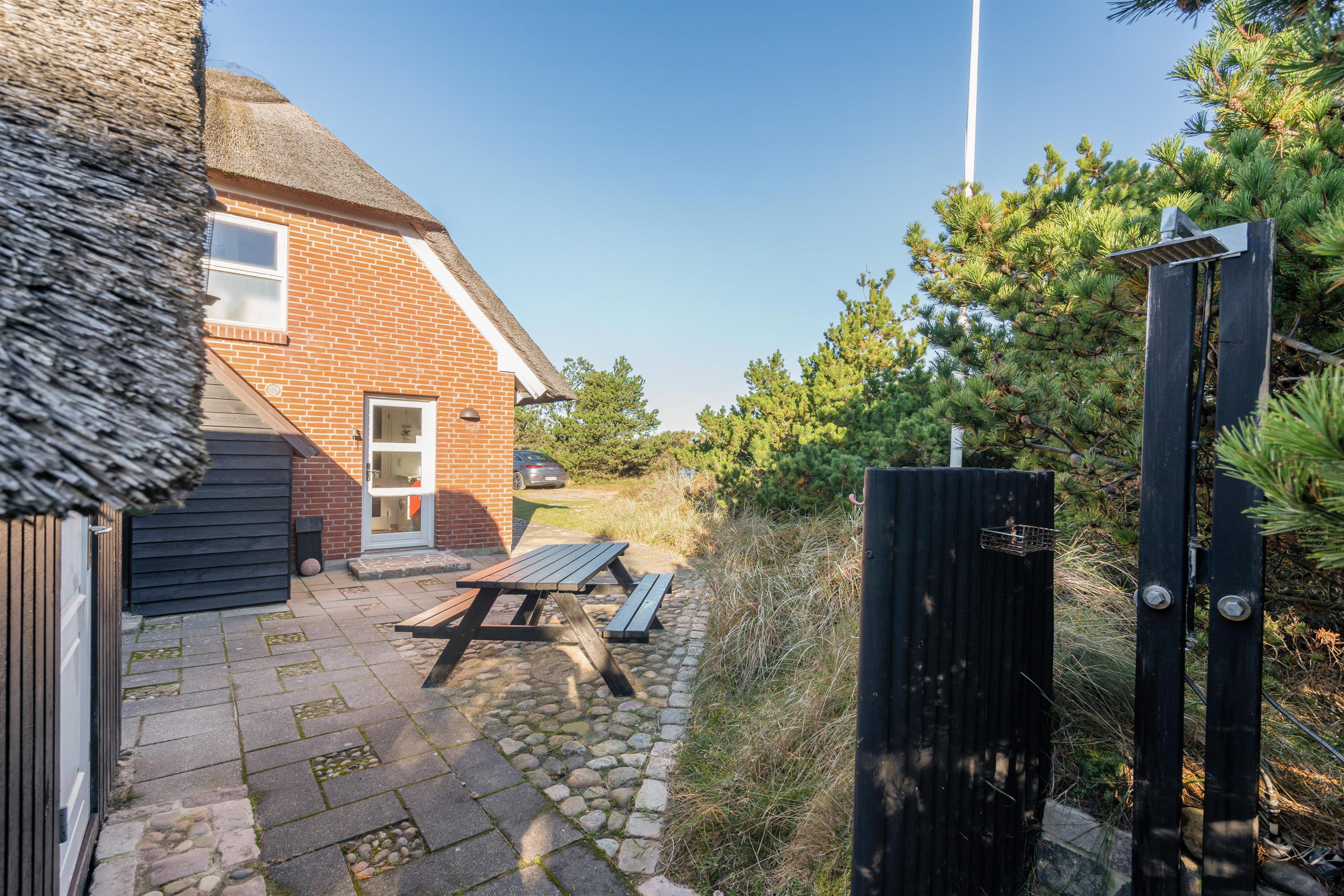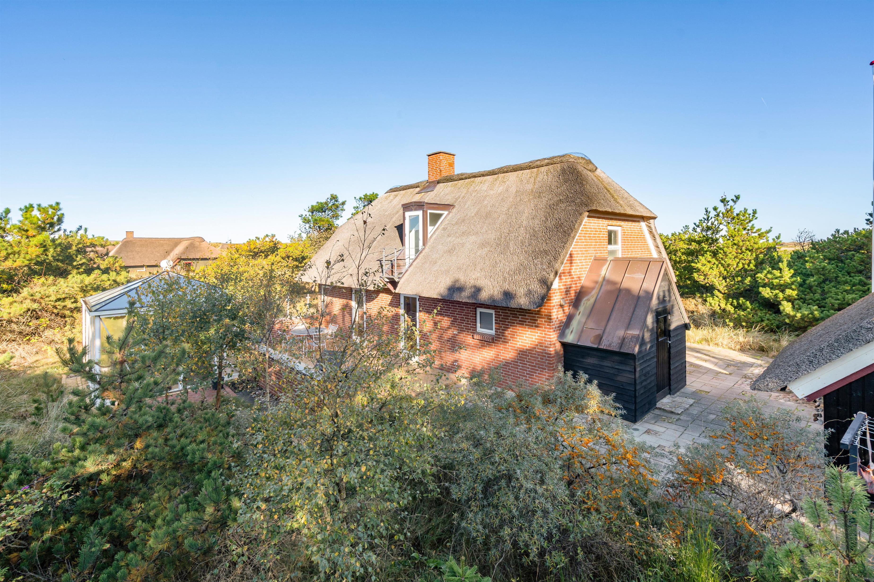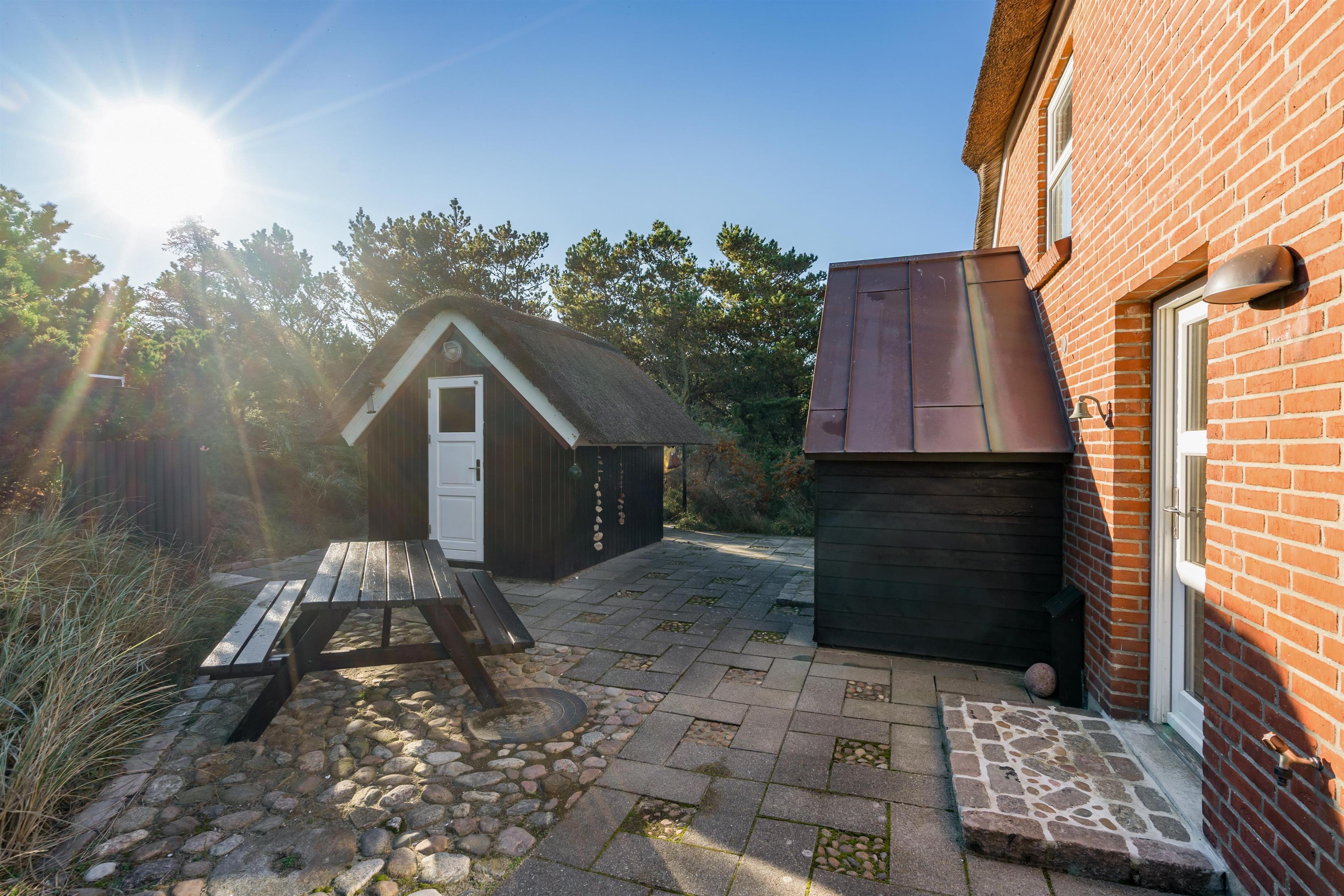 På de solrige feriedage kan I rykke ud på sommerhusets terrasse, hvor I kan sætte jer godt til rette i havemøbler og liggestole, mens I slapper af til lyden af bølgernes brusen i baggrunden. I kan også sætte jer ind i det hyggelige orangeri, hvor der både er ly og læ.