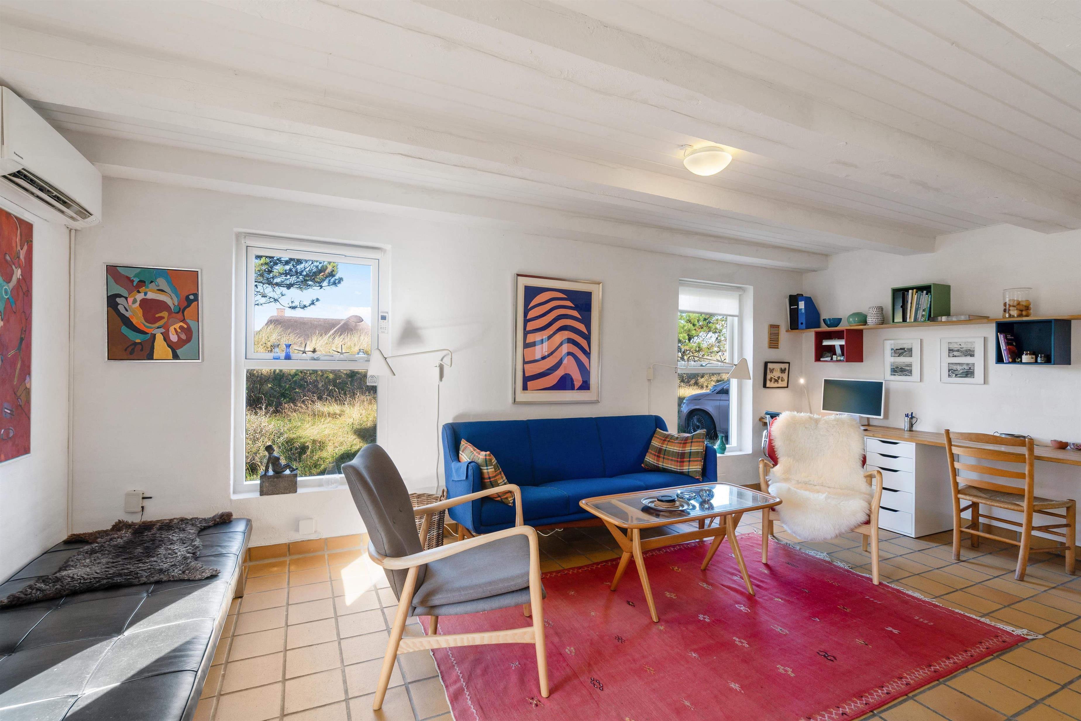 Sommerhuset på Horns Rev 79 i Blåvand rummer en hyggelig indretning i to plan, som I helt sikkert vil komme til at føle jer hjemme i, allerede når I træder ind i feriehuset.