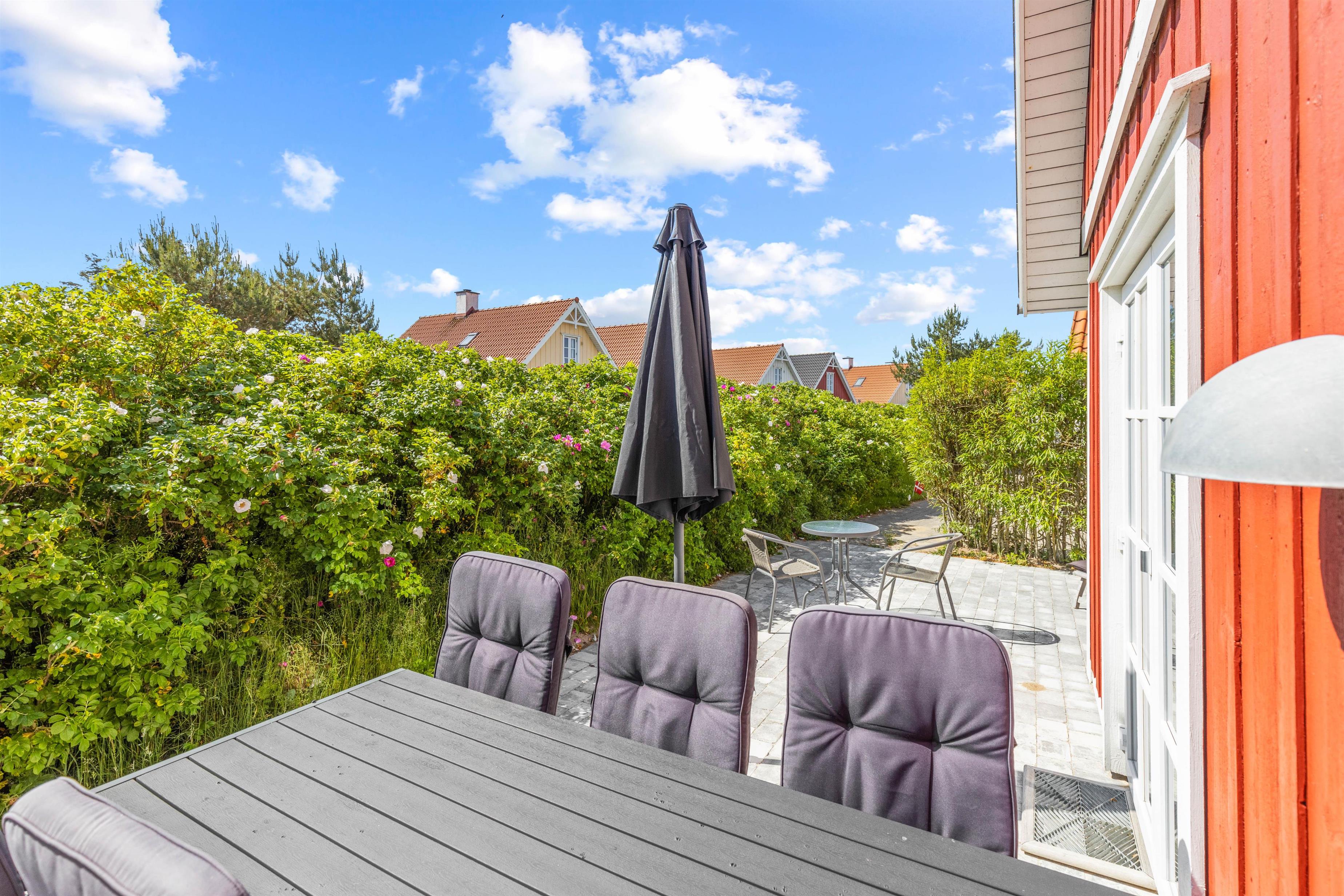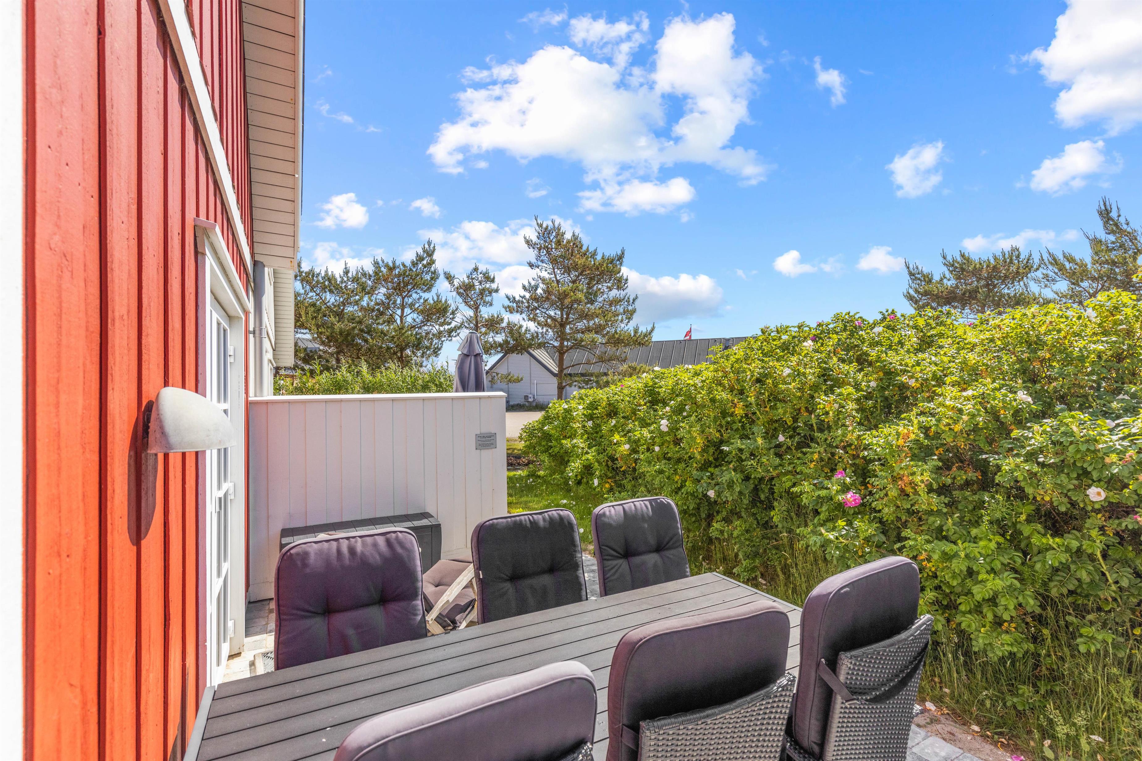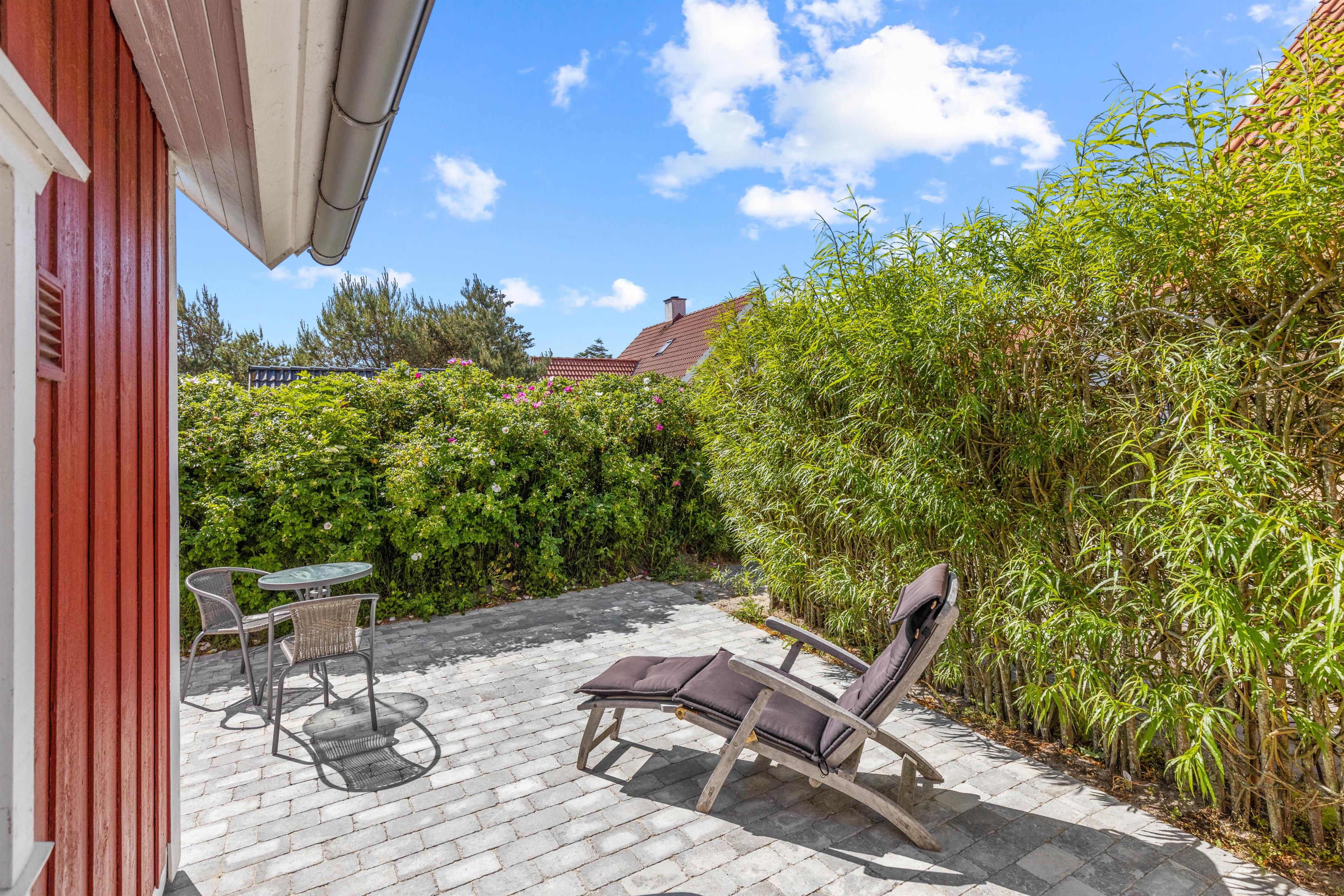 I kan også slappe af på sommerhusets terrasse, hvor der i sommermånederne er både havemøbler og liggestole til jer. Sæt jer til rette med en god bog og lidt koldt at drikke og nyd ferien fuldt ud i det varme vejr. Som afslutning på en dejlig feriedag kan I tilberede aftensmaden på sommerhusets grill, som I kan nyde med et godt glas vin til.