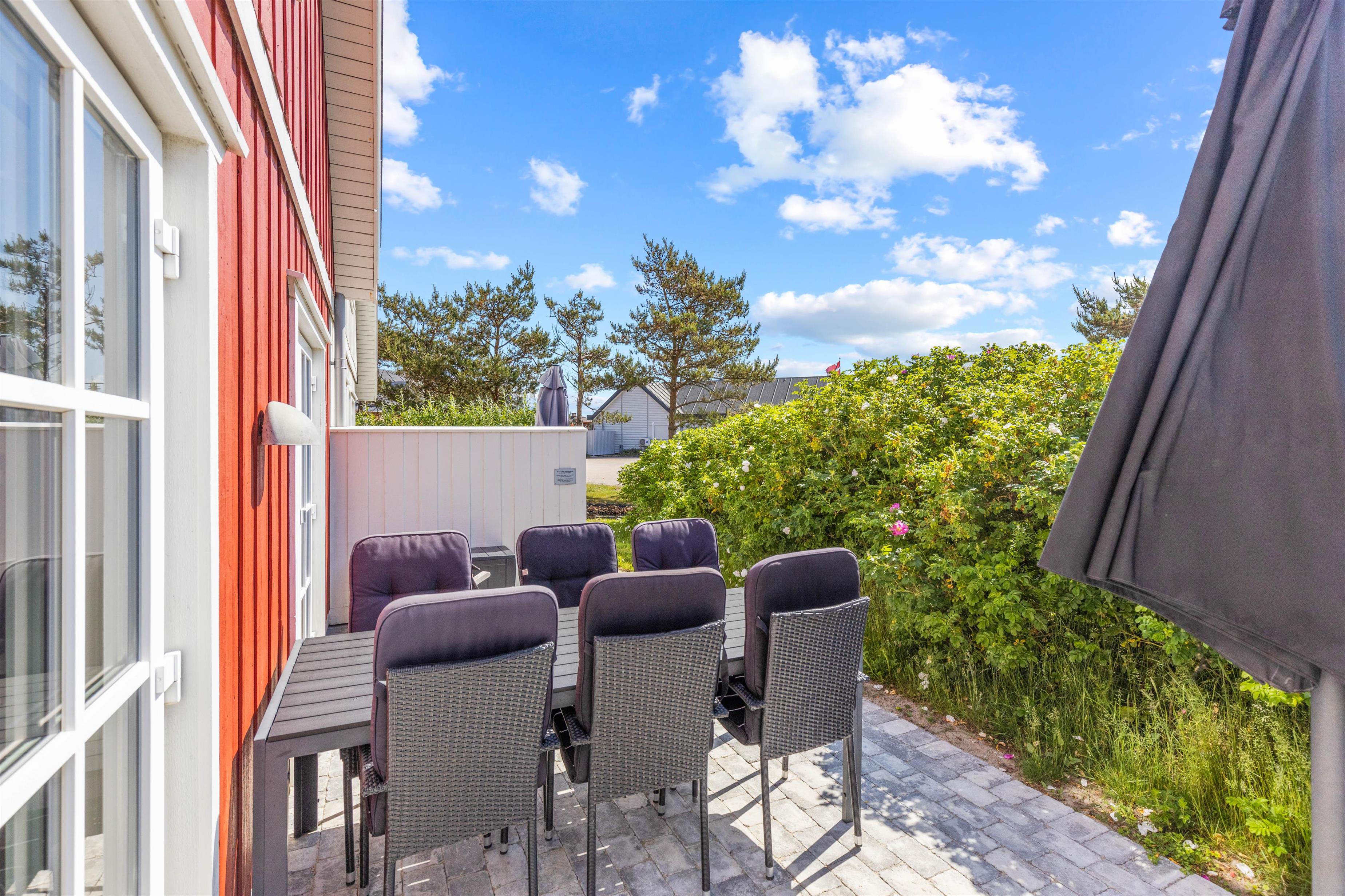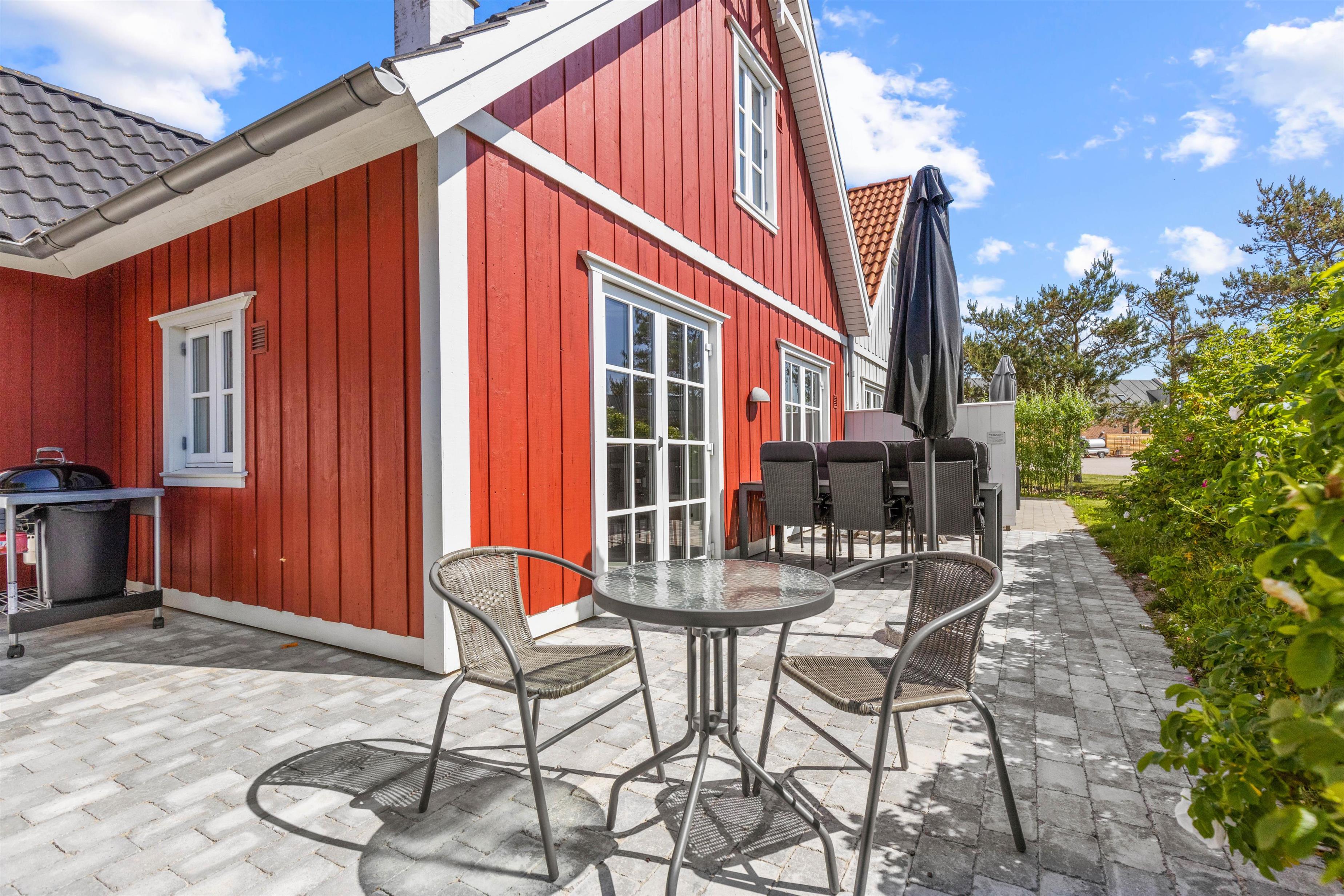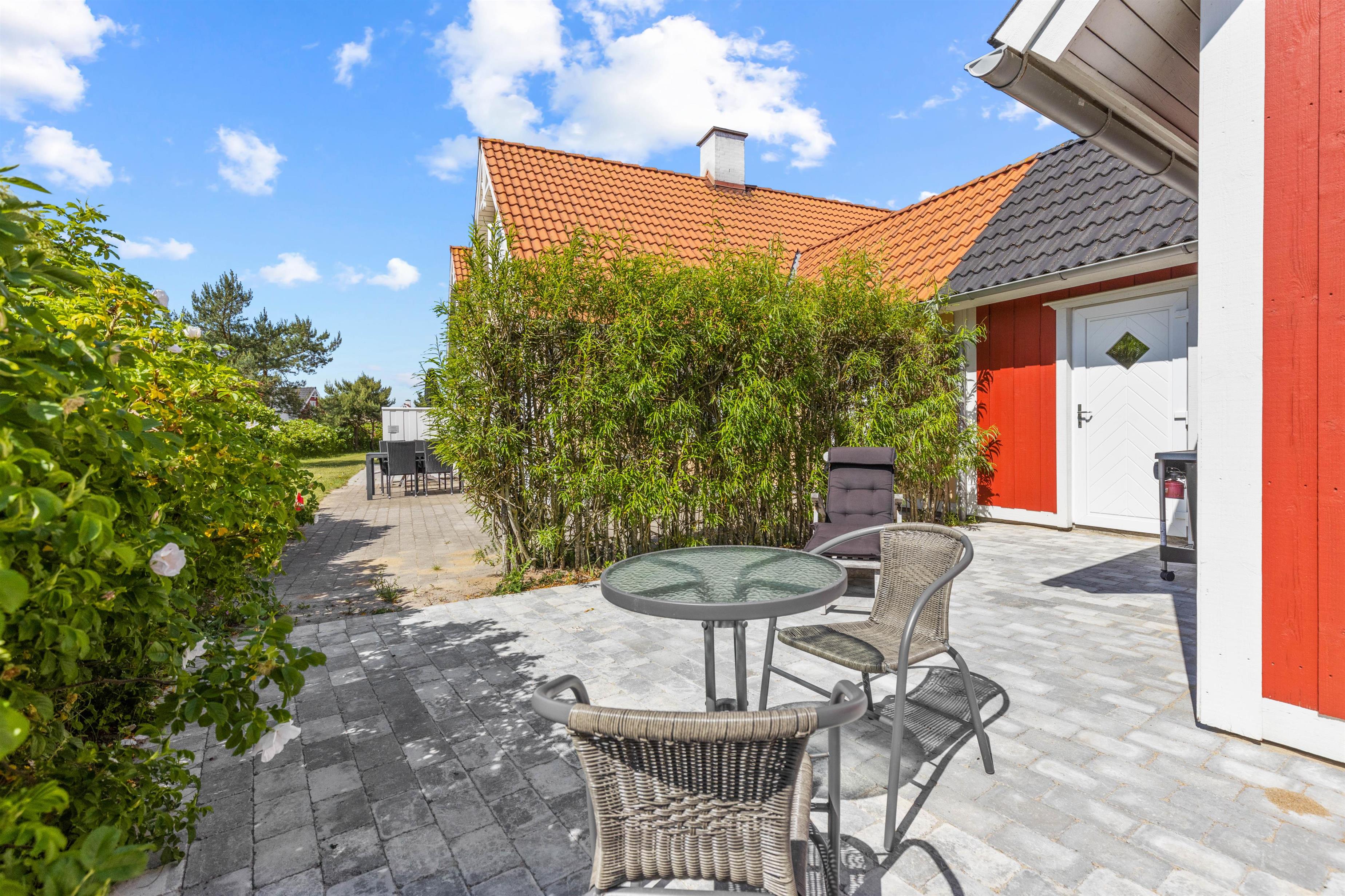 I kan også slappe af på sommerhusets terrasse, hvor der i sommermånederne er både havemøbler og liggestole til jer. Sæt jer til rette med en god bog og lidt koldt at drikke og nyd ferien fuldt ud i det varme vejr. Som afslutning på en dejlig feriedag kan I tilberede aftensmaden på sommerhusets grill, som I kan nyde med et godt glas vin til.
