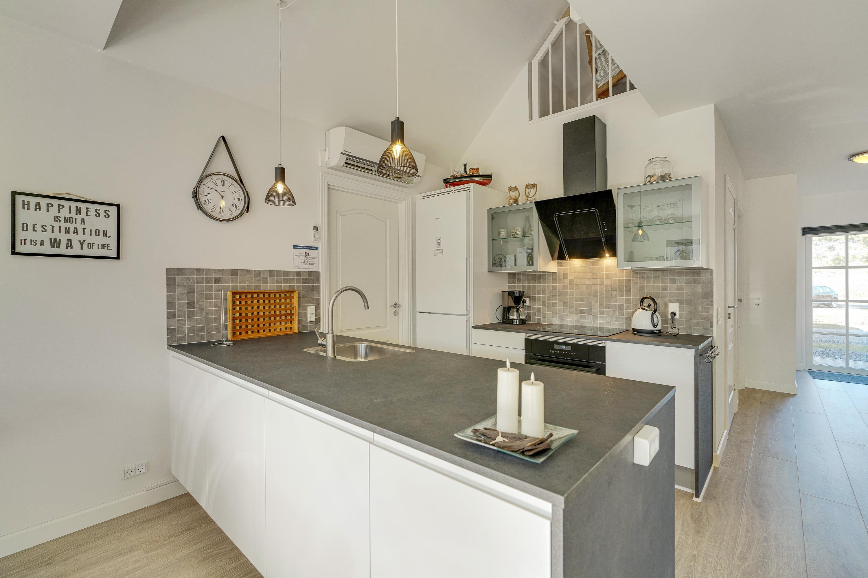 For at I kan tilbringe endnu mere tid på afslapning og samvær med familien på jeres ferie, har I gode praktiske faciliteter i form af opvaskemaskine, vaskemaskine og tørretumbler, der hjælper jer med husarbejdet.