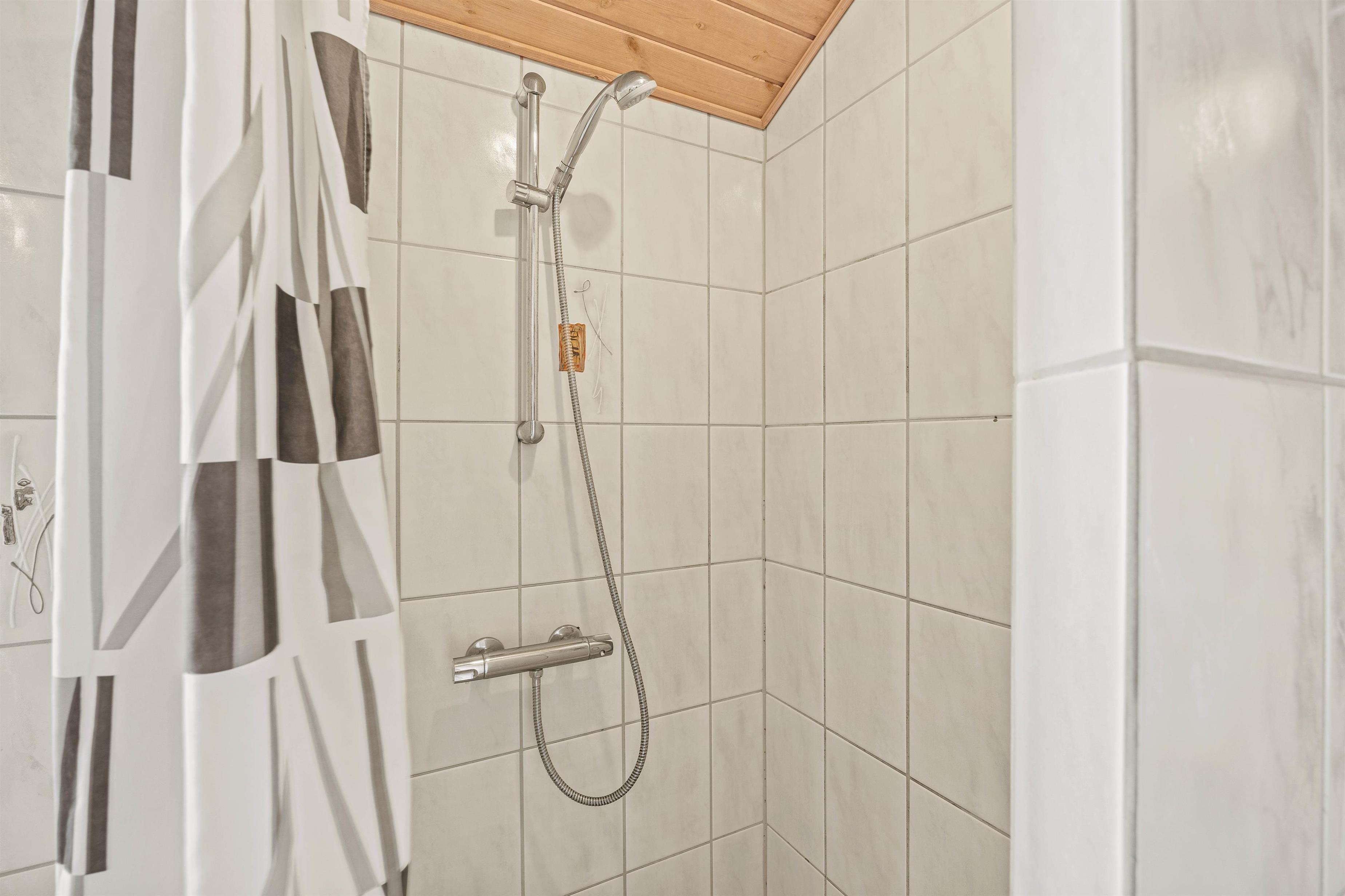 Straks I kommer ind i entreen, hvor der god plads til sko og overtøj, vil I føle jer hjemme. Her er adgang til 2 af husets 3 soveværelser og det store lækre badeværelse med 2-personers spa og sauna. Der er også et gæstetoilet, hvor der desuden er vaskemaskine og tørretumbler til jeres rådighed.