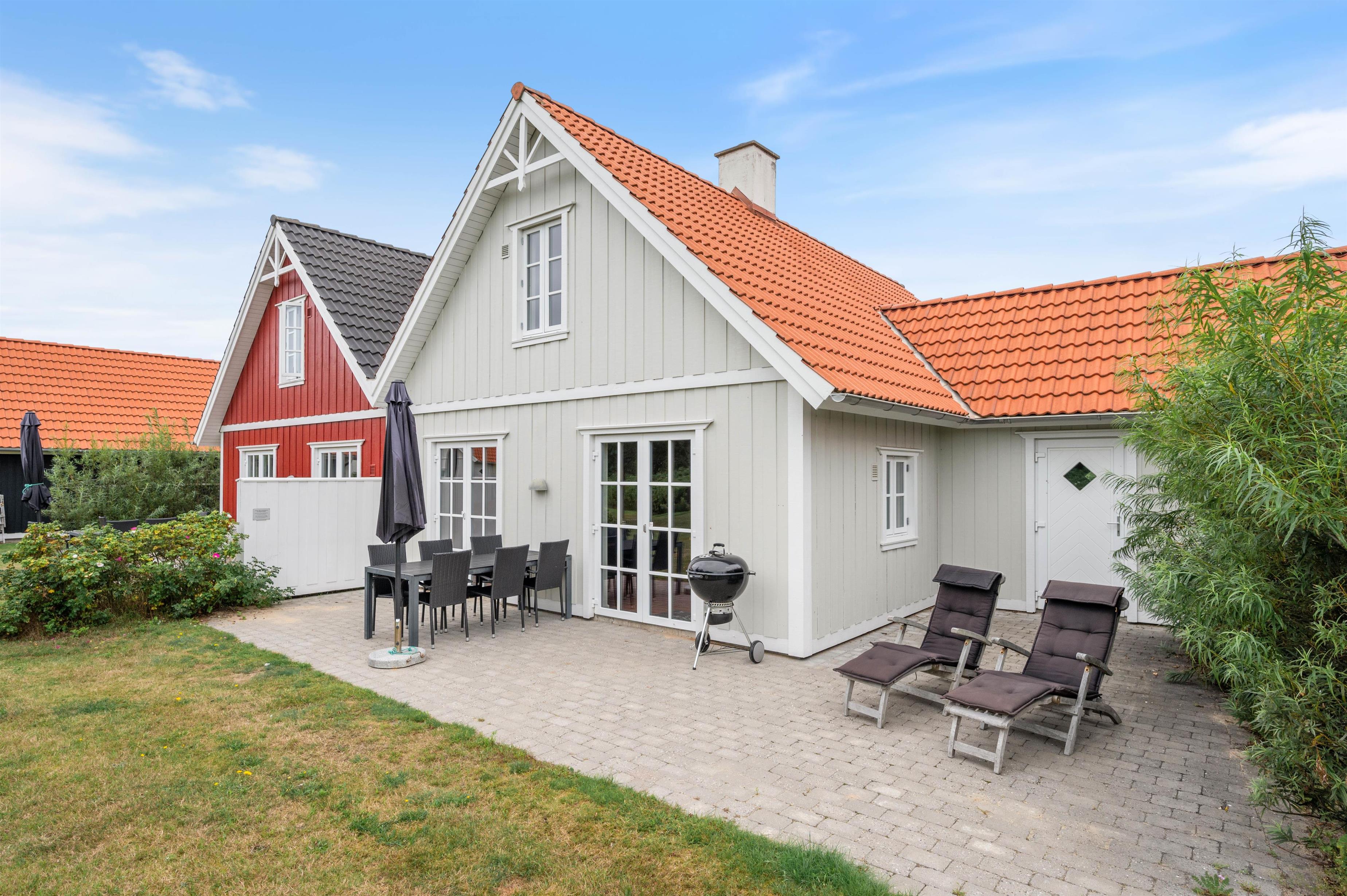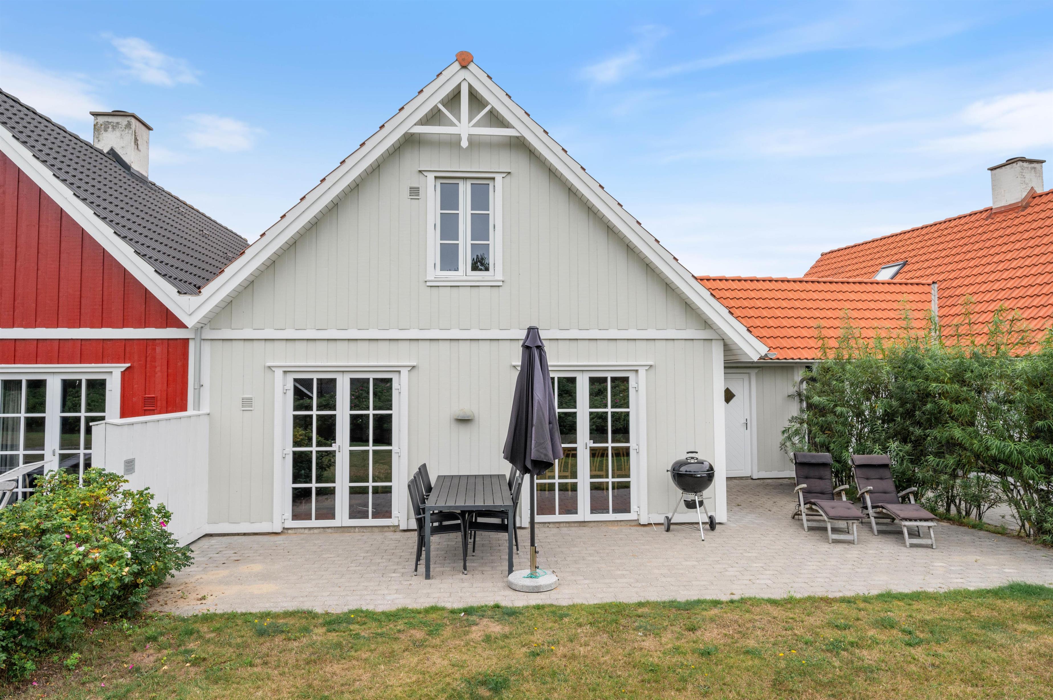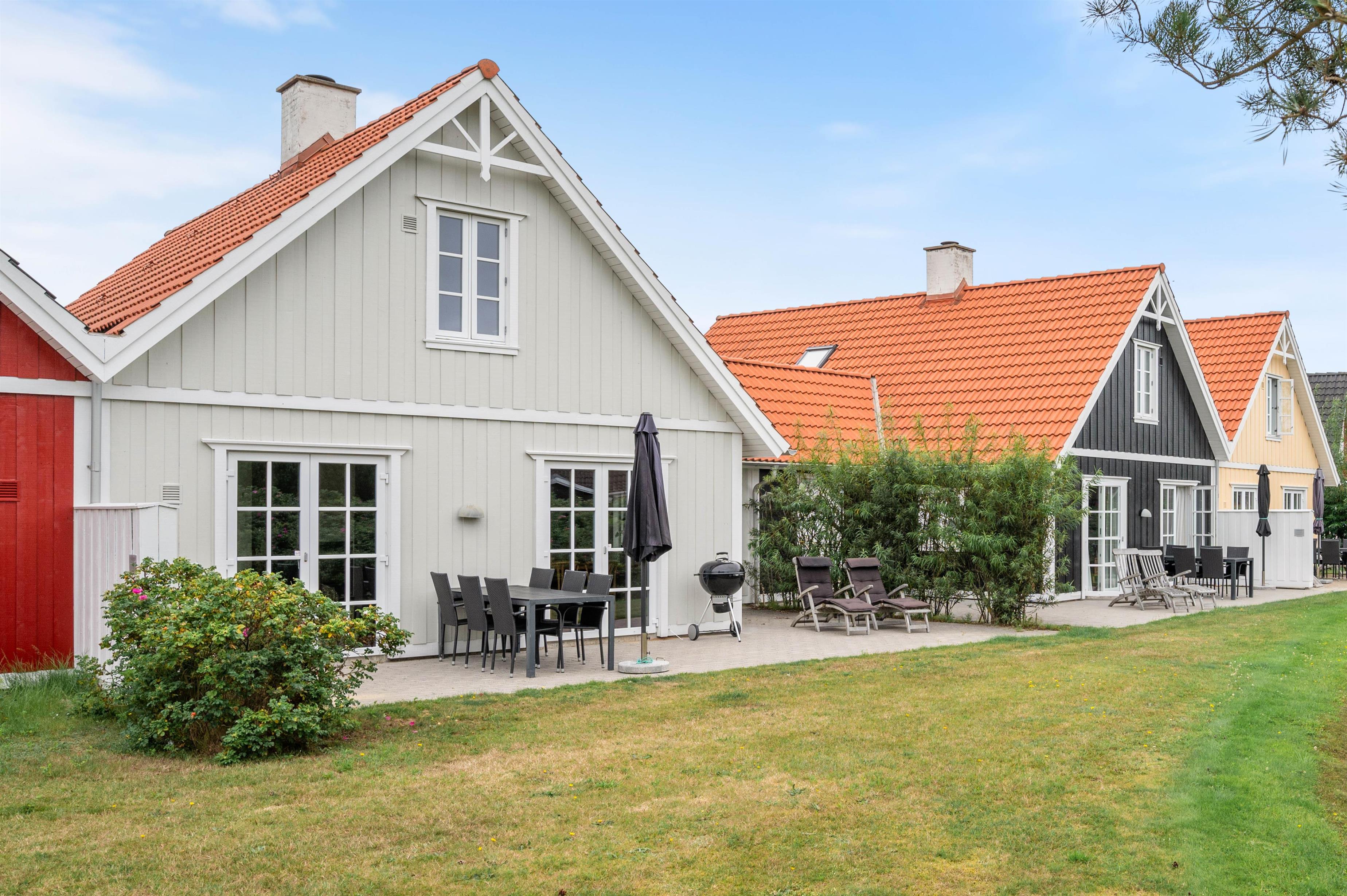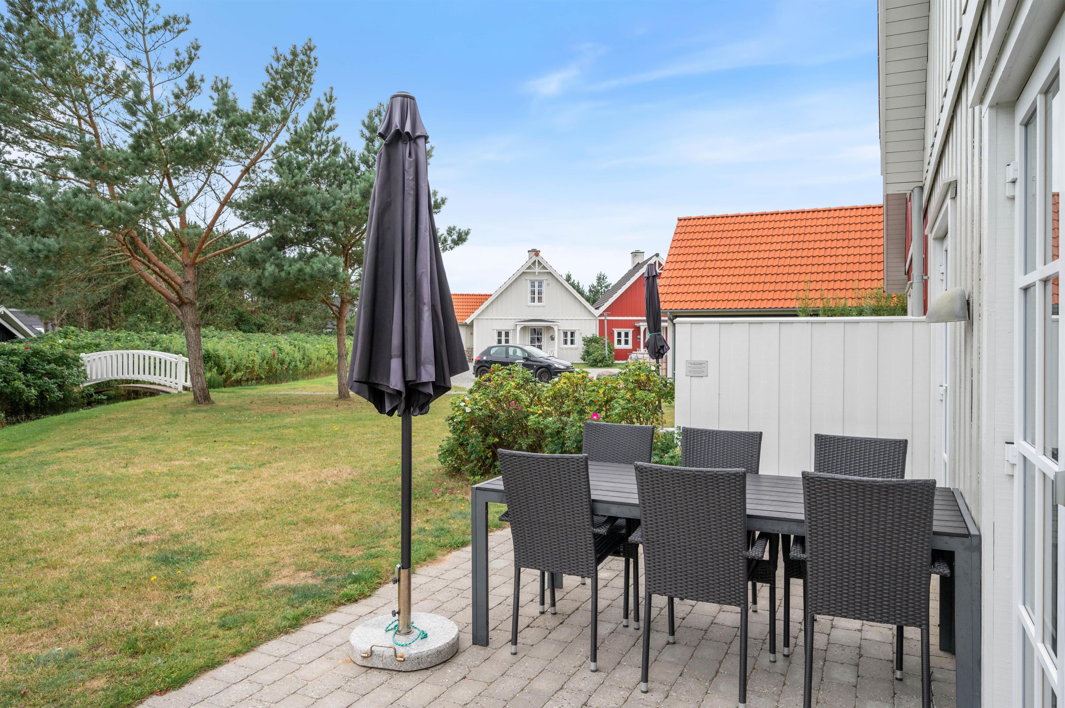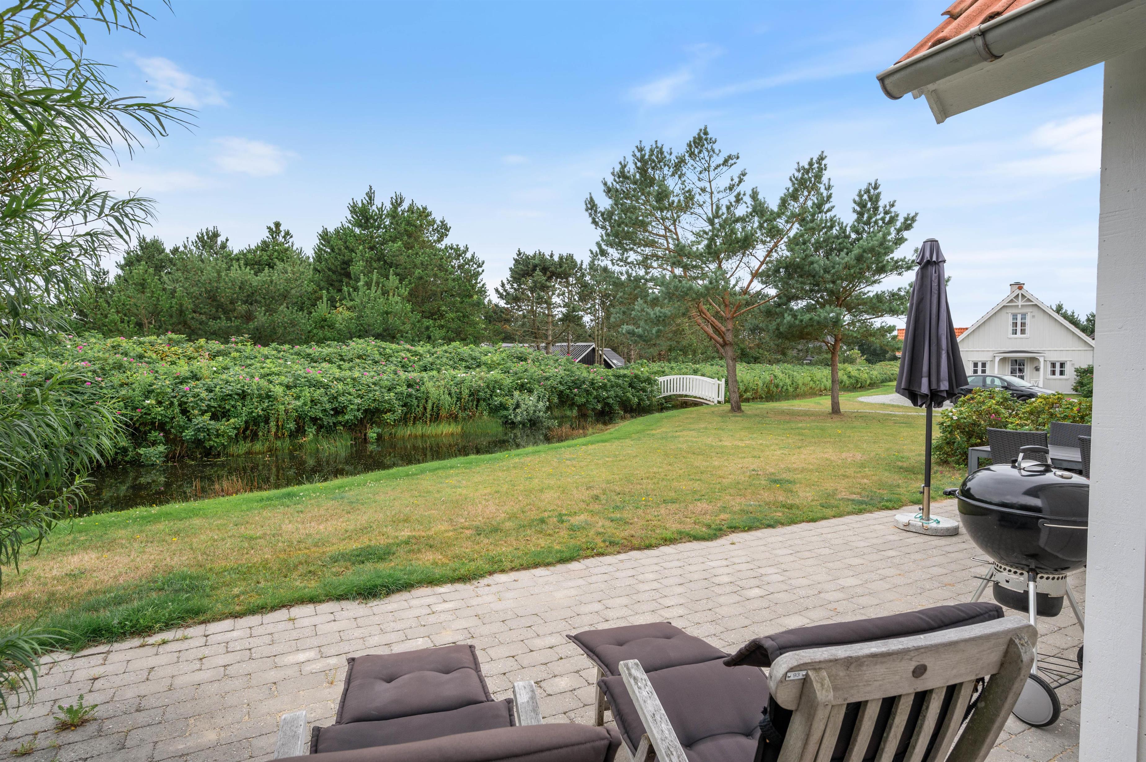 I får egen terrasse med grønt græsareal og udsigt til den lille 'å', der snor sig i området - ren idyl. Der er selvfølgelig sørget for havemøbler og en god grill til de varme sommerdage på terrassen.