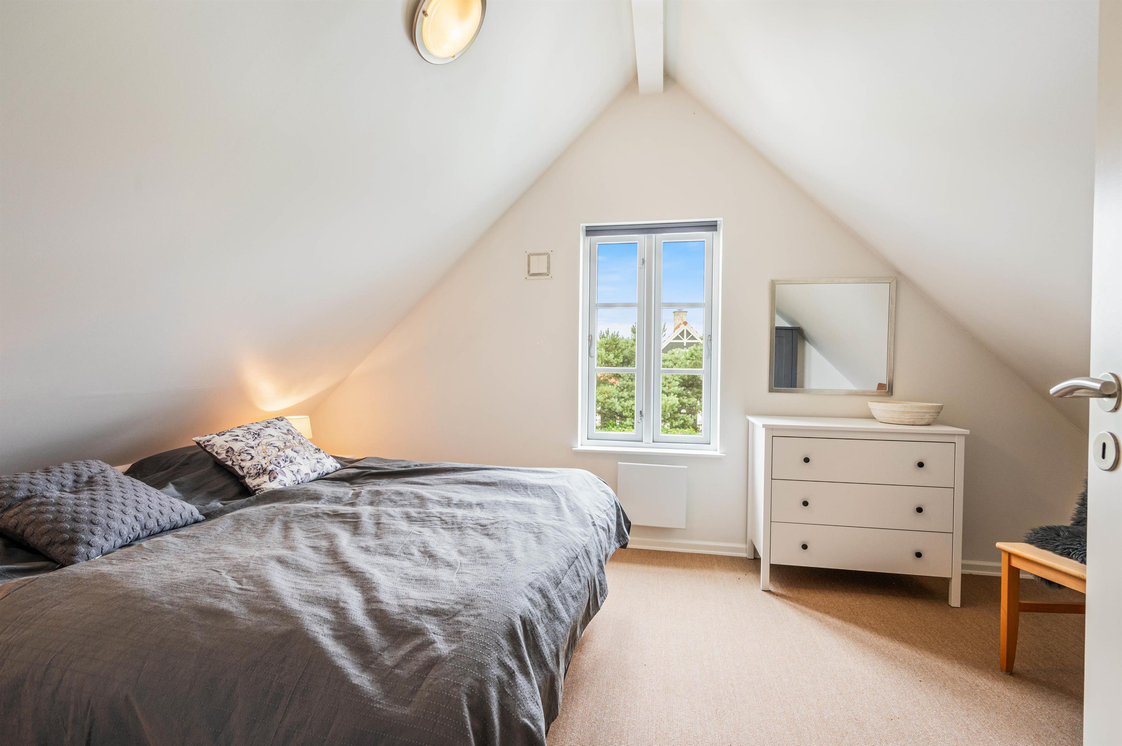 Ferielejligheden i Blåvand har med sine to etager plads til op til 6 personer - også det sidste familiemedlem, hunden, er velkommen. Lejligheden er moderne indrettet med gode soverum, den klassiske brændeovn og et veludstyret køkken med opvaskemaskine.