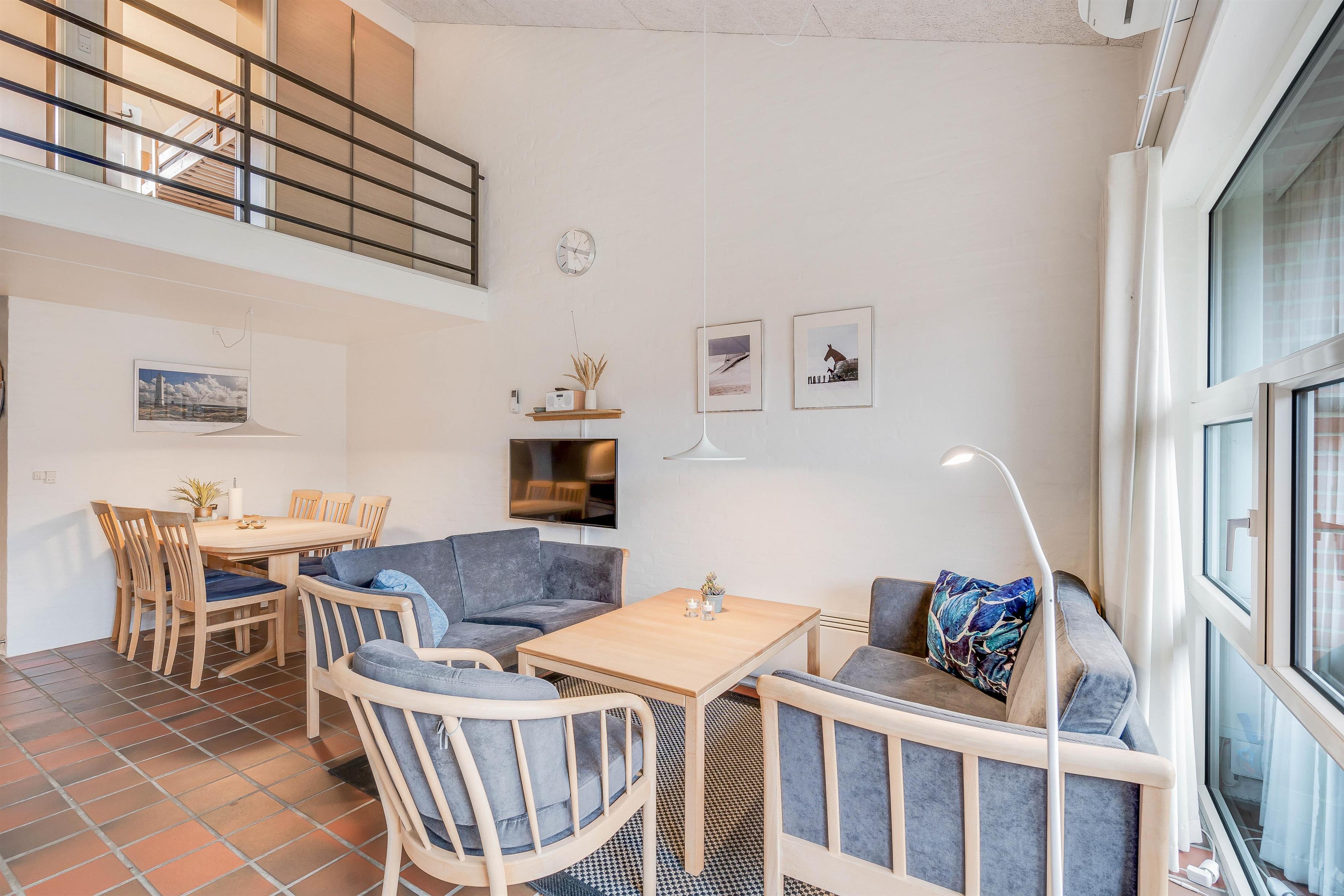 Den 61 kvadratmeter store ferielejlighed byder på en lys indretning i 2 plan. I stueplan venter jer det hyggelige alrum, hvor køkken, stue og spiseplads forenes, og som kommer til at danne rammen om mange hyggelige feriestunder. I køkkenet har I desuden en opvaskemaskine, der klarer opvasken for jer efter madlavningen.