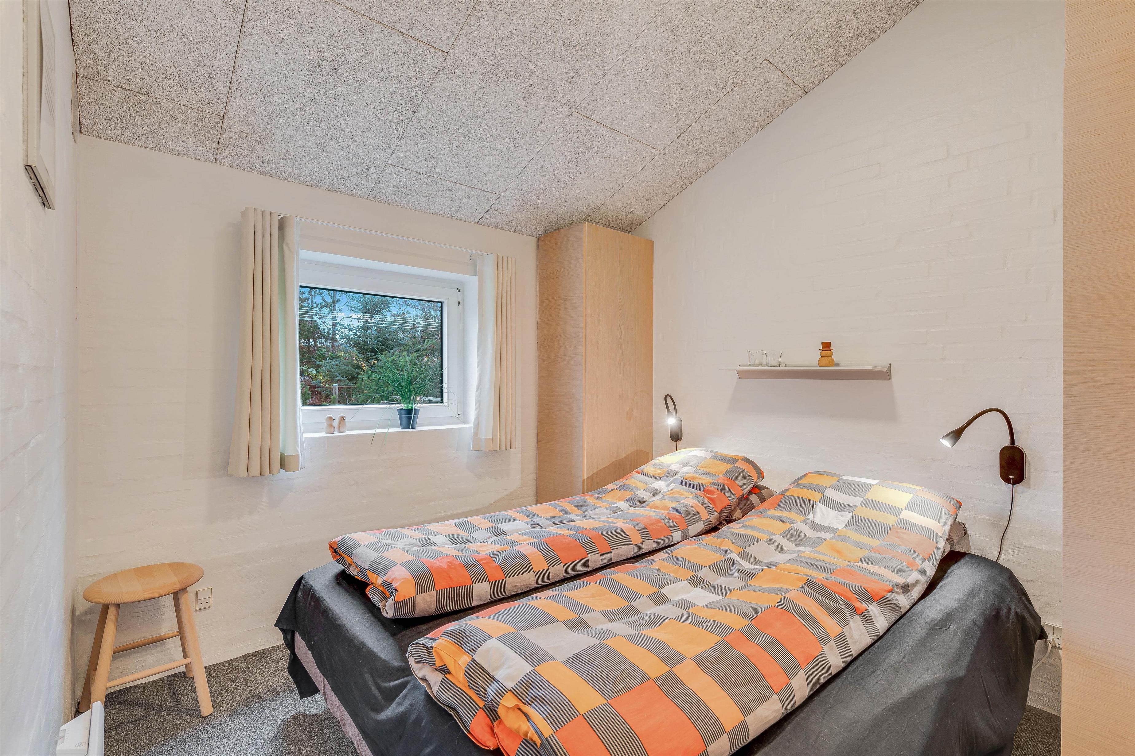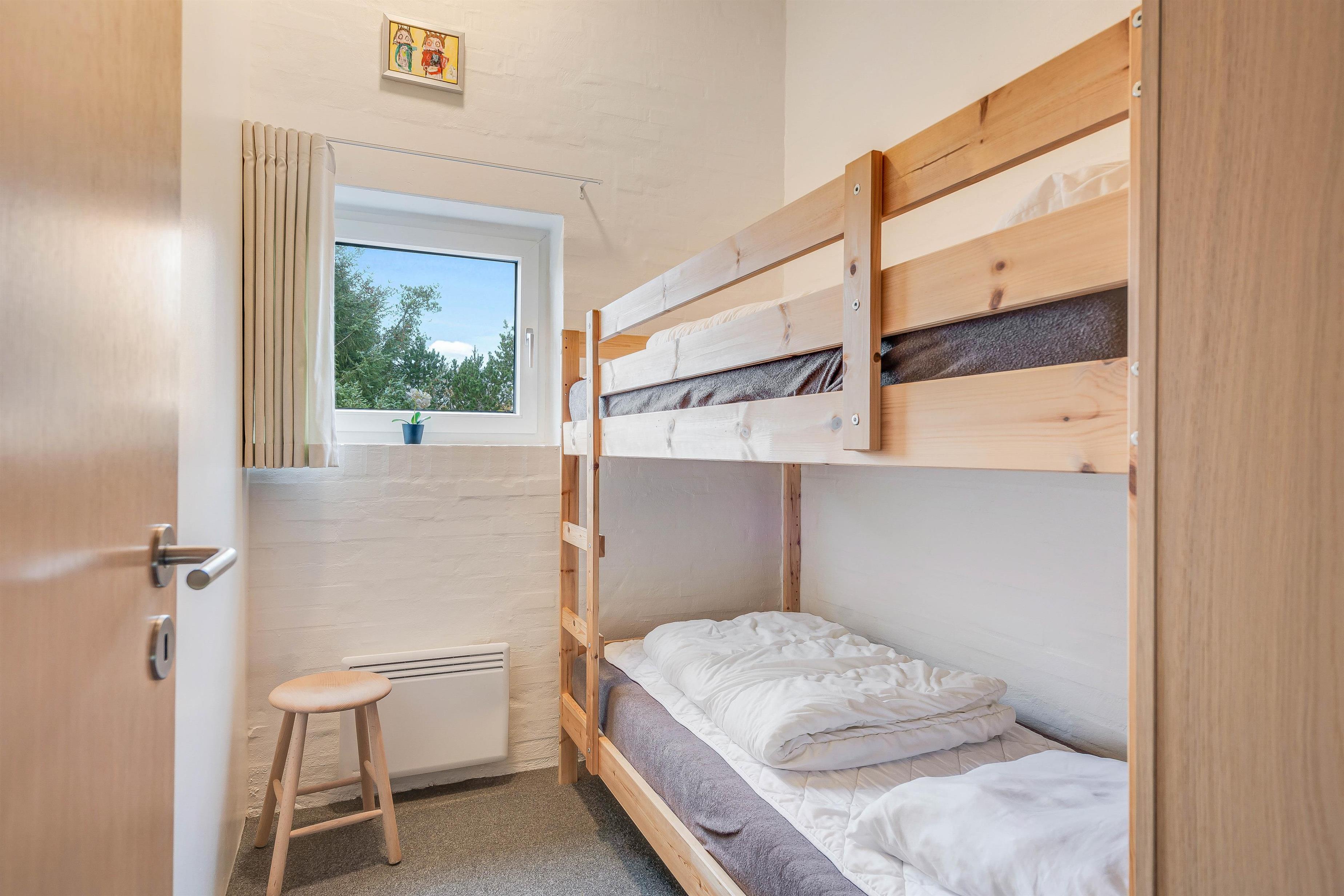 I stueplan finder I derudover badeværelset, der er udstyret med gulvvarme, samt et soveværelse, der er indrettet med en dobbeltseng. De resterende sovepladser finder I på førstesalen, hvor der er et soveværelse med etageseng og et soveværelse med 2 enkeltsenge.