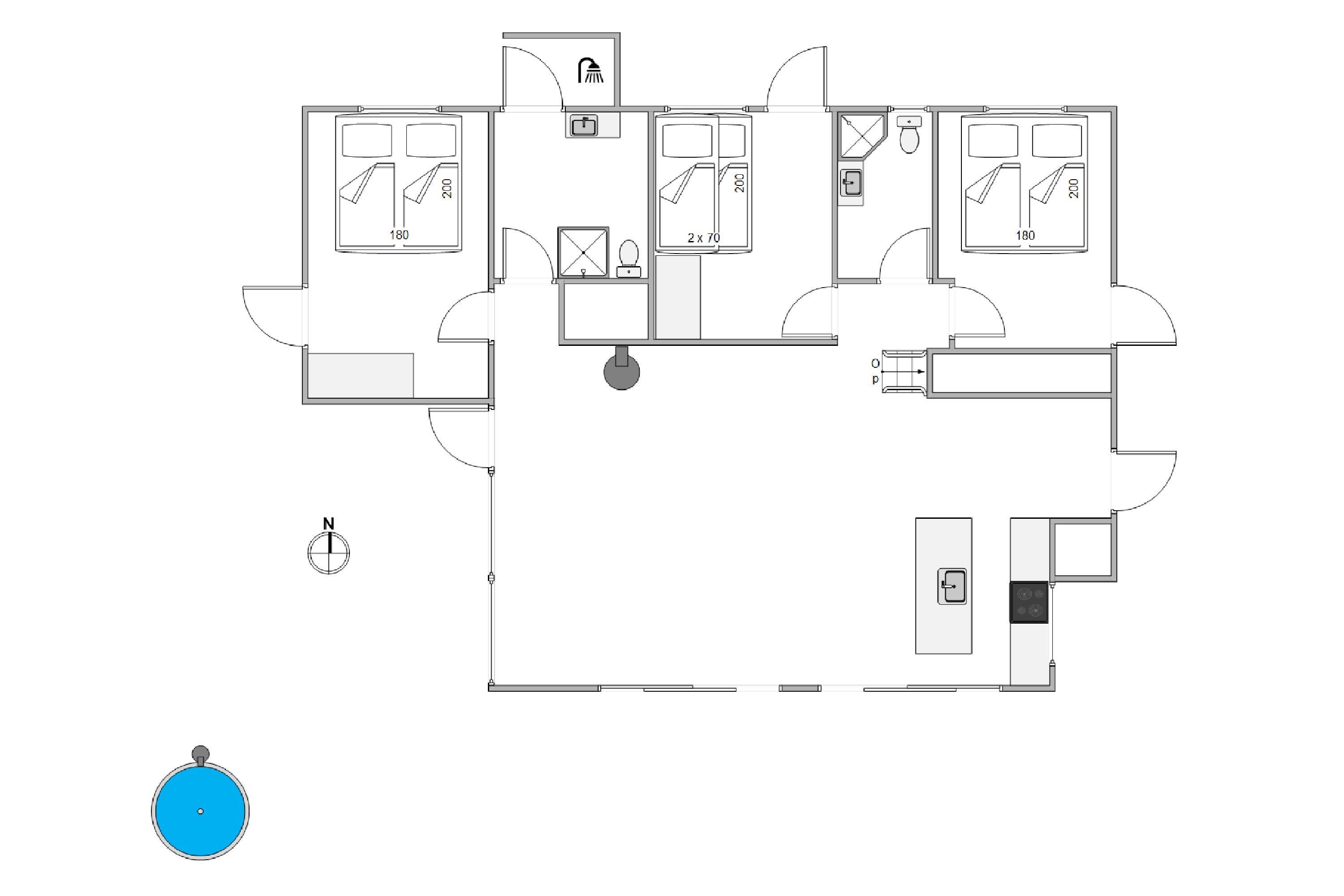 I slipper helt for at stå i kø, når I står op om morgenen, da sommerhuset er indrettet med hele 2 badeværelser. På begge badeværelser er der desuden gulvvarme, så I også slipper for at starte jeres feriemorgener med at fryse fødderne.