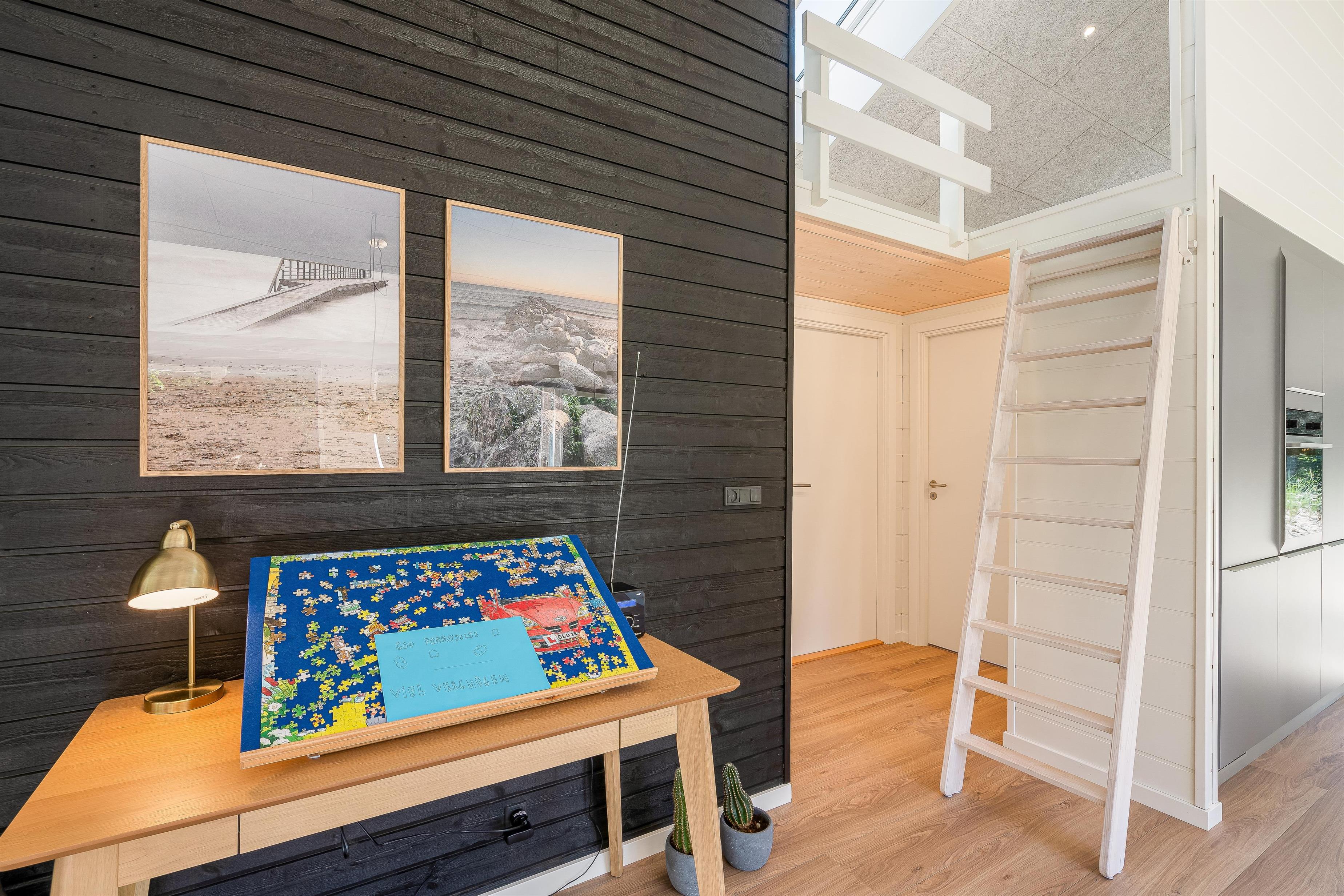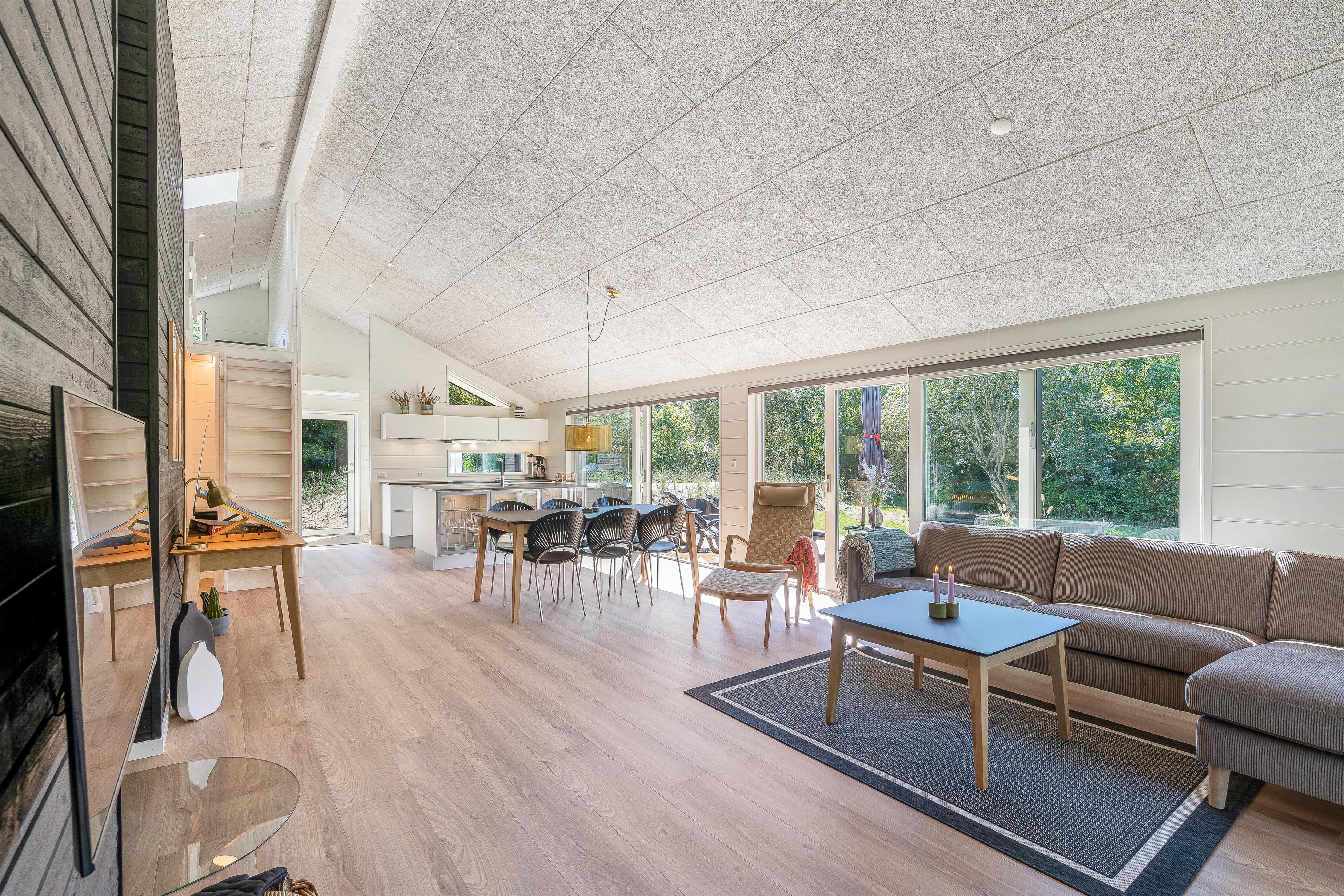 Alrummet er hjertet i sommerhuset, og her vil mange timer af jeres ferie helt sikkert komme til at foregå. Her kan I blandt andet samles foran tv’et, hvor I kan streame jeres yndlingsfilm og -serier via Chromecasten, mens brændeovnen knitrer i baggrunden og fuldender den hyggelige stemning.