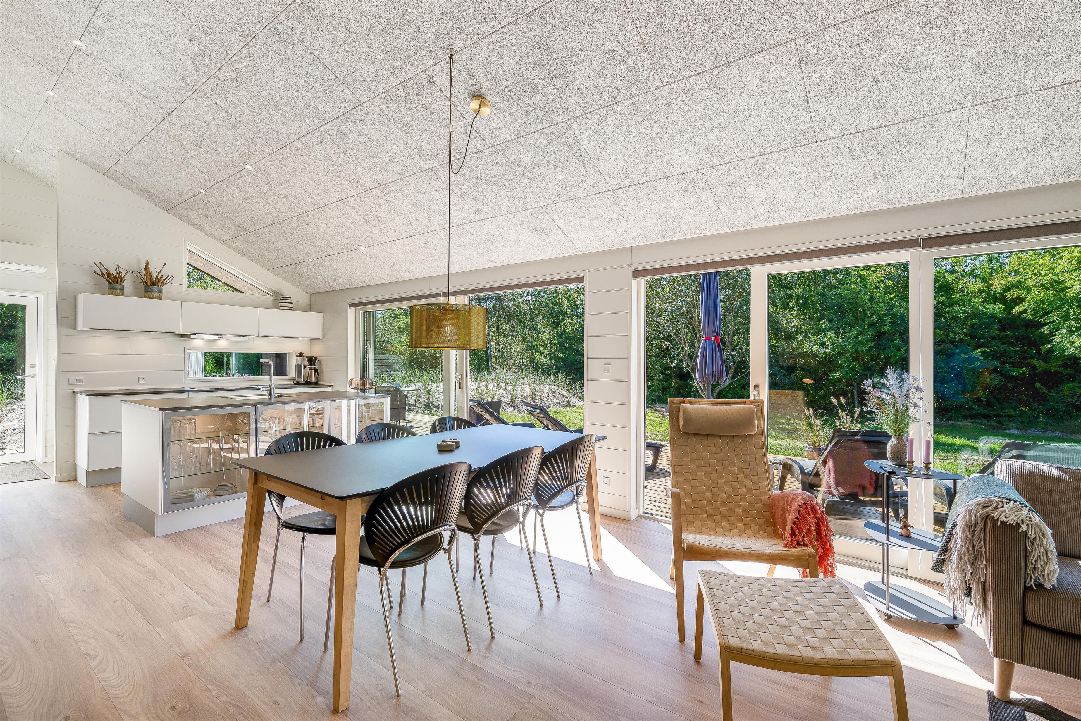 Indendørs i sommerhuset, der er bygget i 2022, venter jer en lys indretning, som I straks kommer til at føle jer hjemme i. Sommerhuset er udstyret med opvaskemaskine, vaskemaskine og tørretumbler samt en energivenlig varmepumpe, der sørger for et godt indeklima til jer.