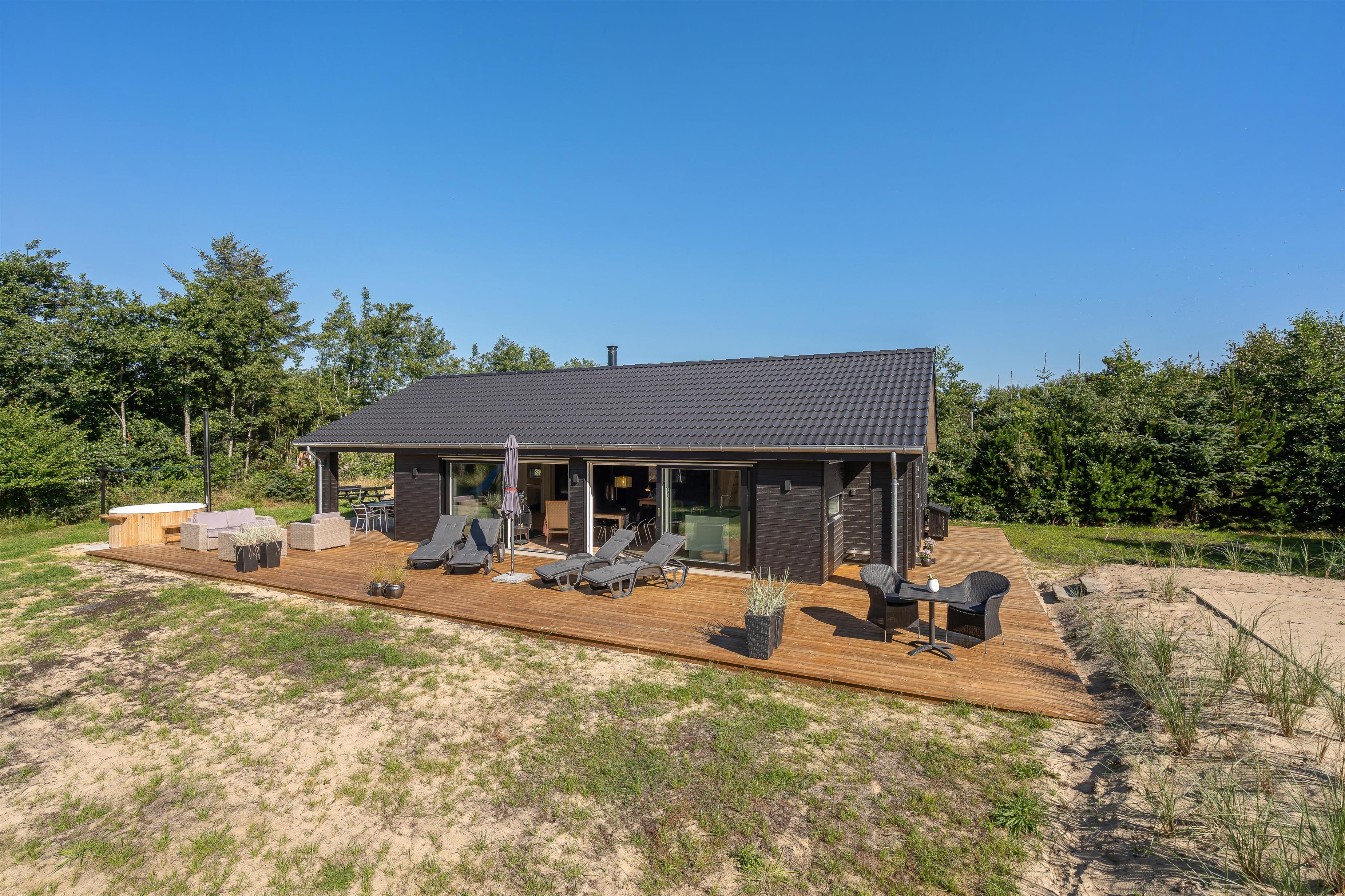 I dette lækre sommerhus på Hvidbjerg Strandvej 46A i Blåvand med plads til 5 personer, kan du og din familie eller vennegruppe se frem til at holde en fantastisk ferie! Det nybyggede (2022) sommerhus byder på et lækkert vildmarksbad og en udebruser, og så kan I samtidig bo kun 500 meter fra stranden og det brusende Vesterhav!