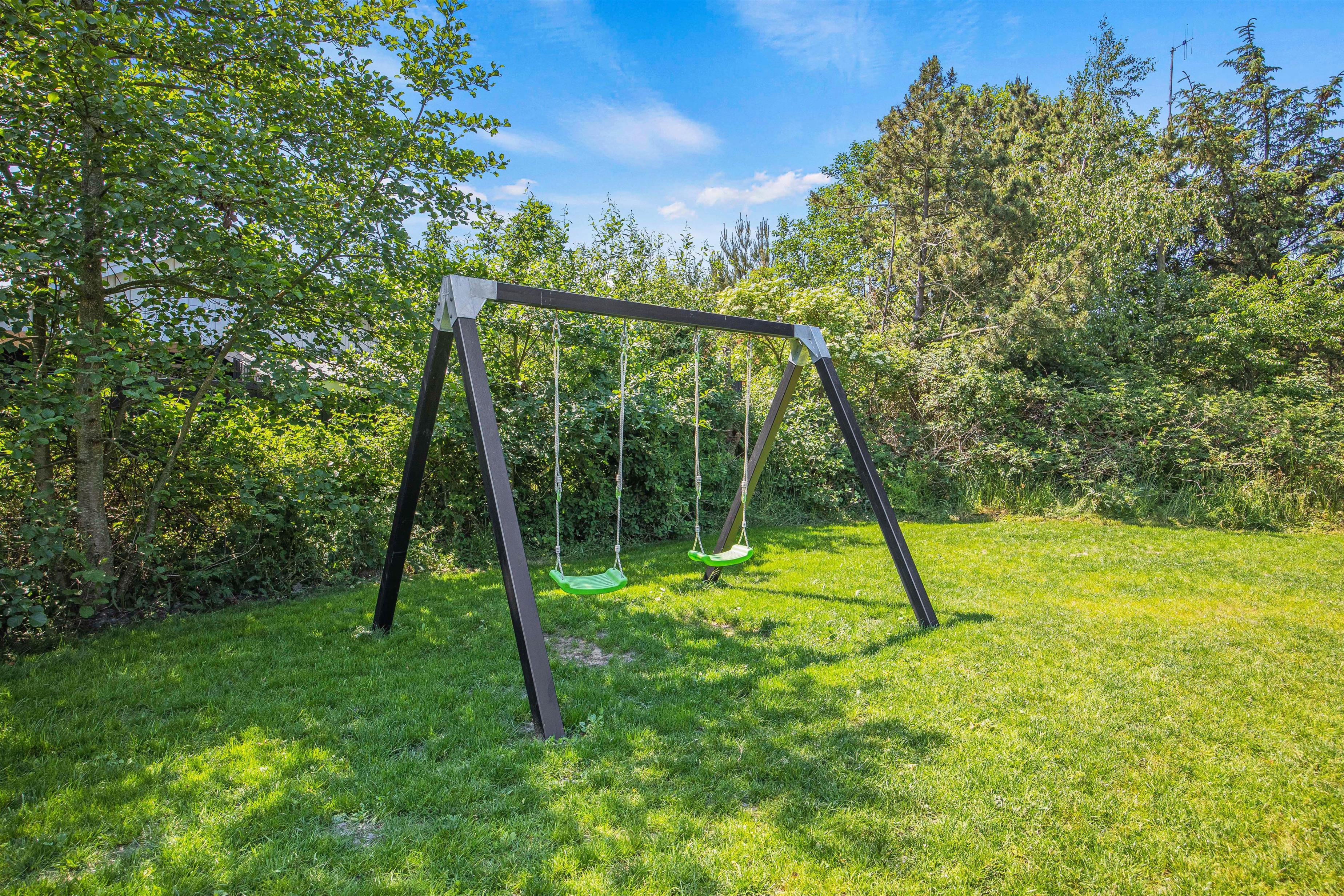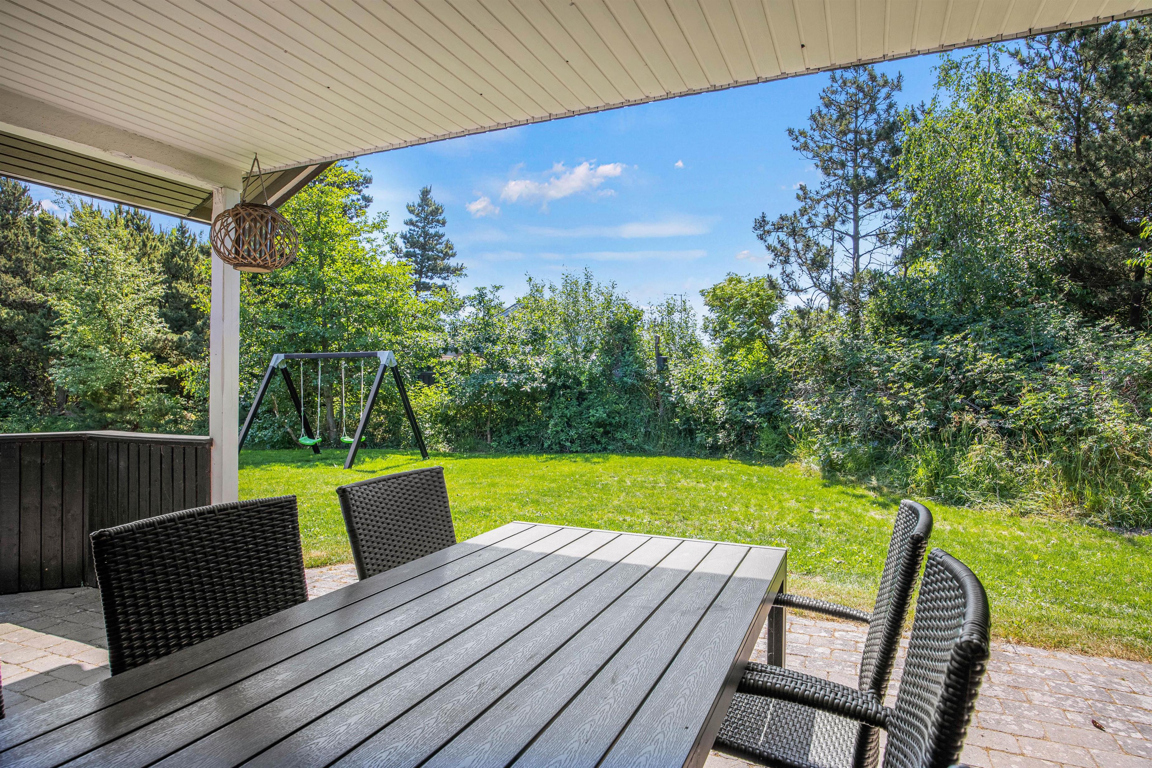 I haven finder I også et gyngestativ til familiens mindste, som vil kunne få mange timer til at gå med leg på den store grund, mens de voksne snakker eller måske læser en god bog på terrassen. Og hvem ved - måske kigger de lokale, vilde dyr forbi?
