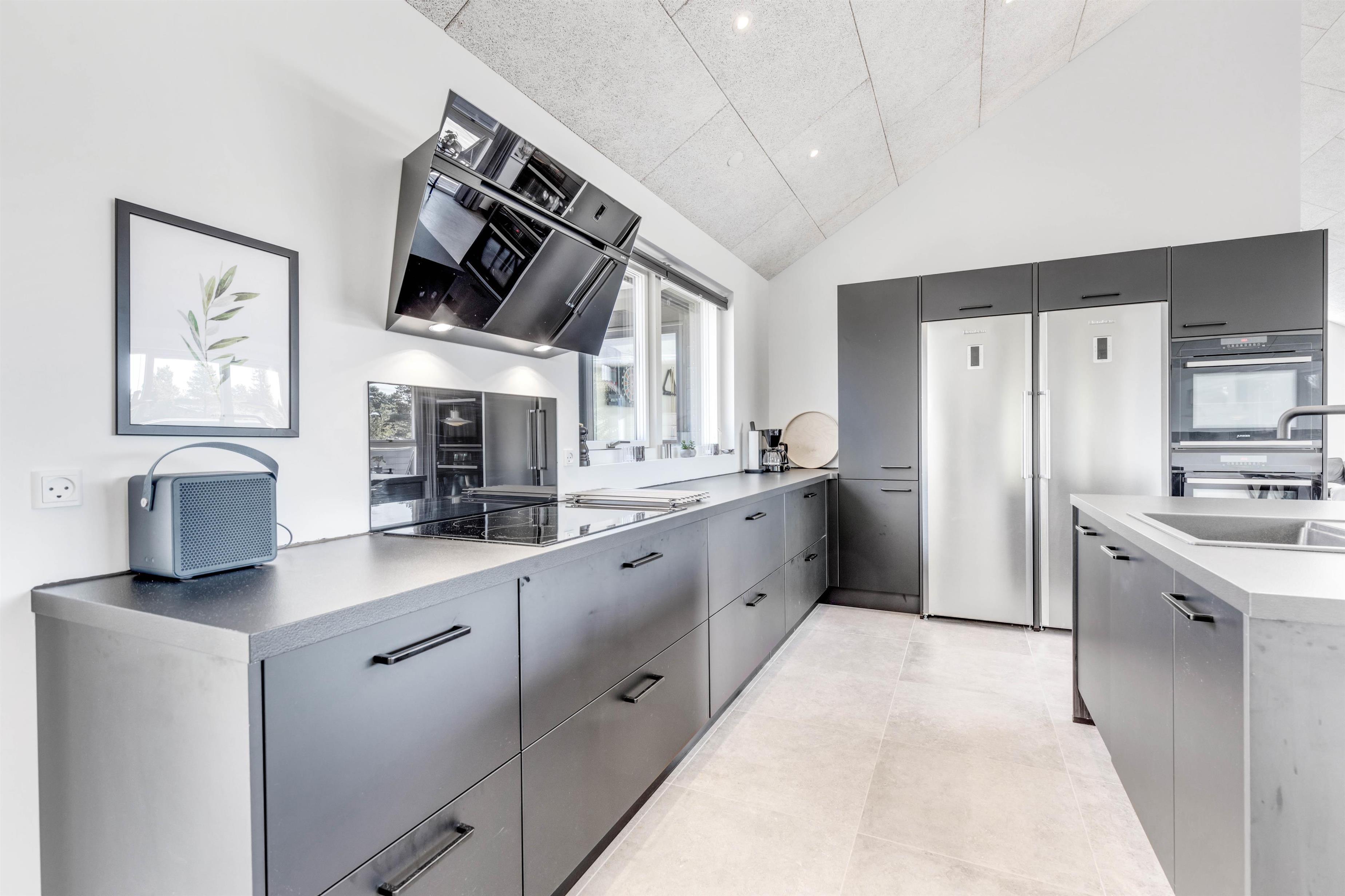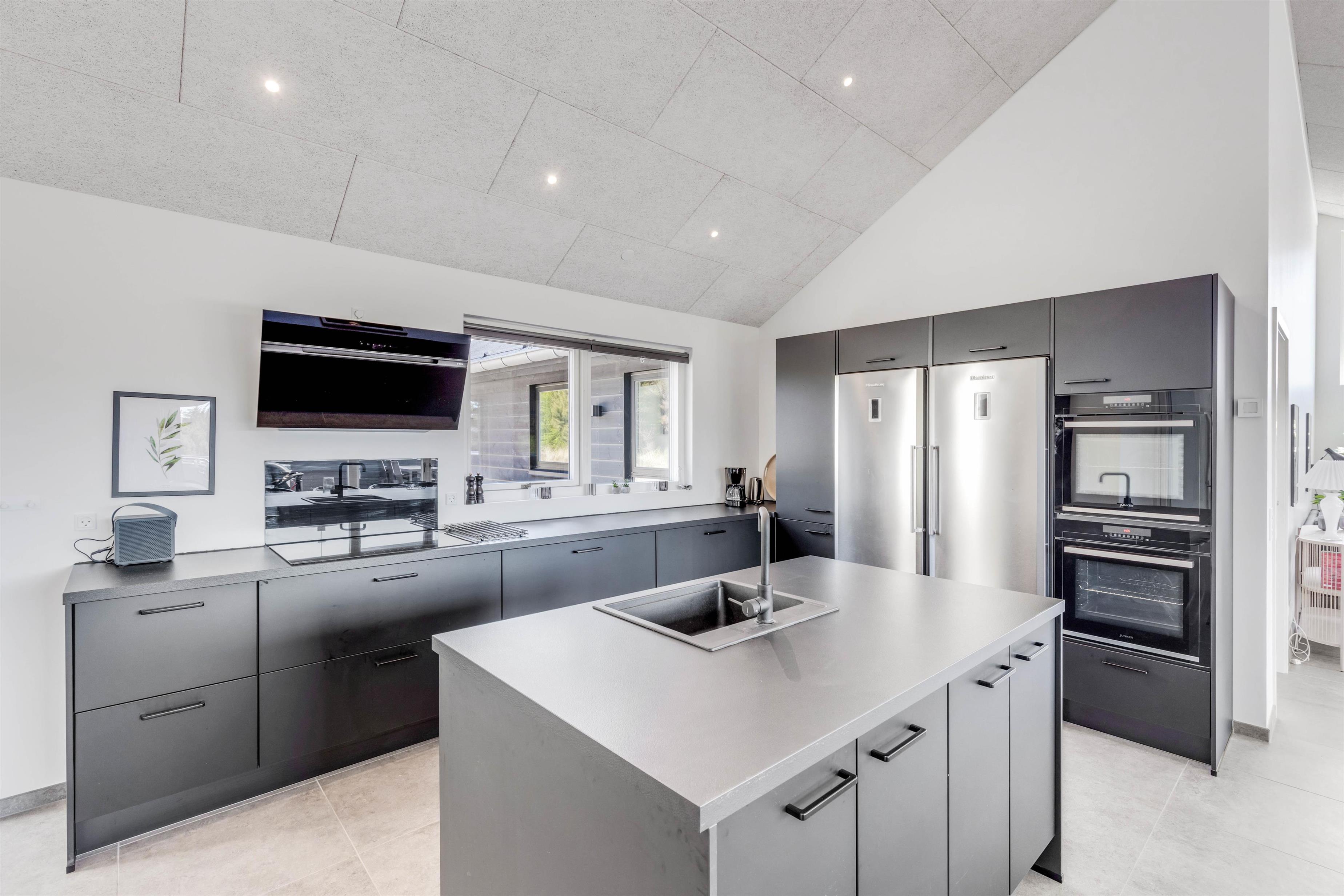 For at I ikke skal tilbringe en masse tid på praktisk husarbejde på ferien, så har I gode praktiske faciliteter i sommerhuset. Både opvaskemaskinen, vaskemaskinen og tørretumbleren står klar til at hjælpe jer med det praktiske husarbejde. Desuden er der en energivenlig varmepumpe, der sørger for et godt indeklima samt 2 store køleskabe i køkkenet, så I har rigeligt plads til mad og kolde drikkevarer.