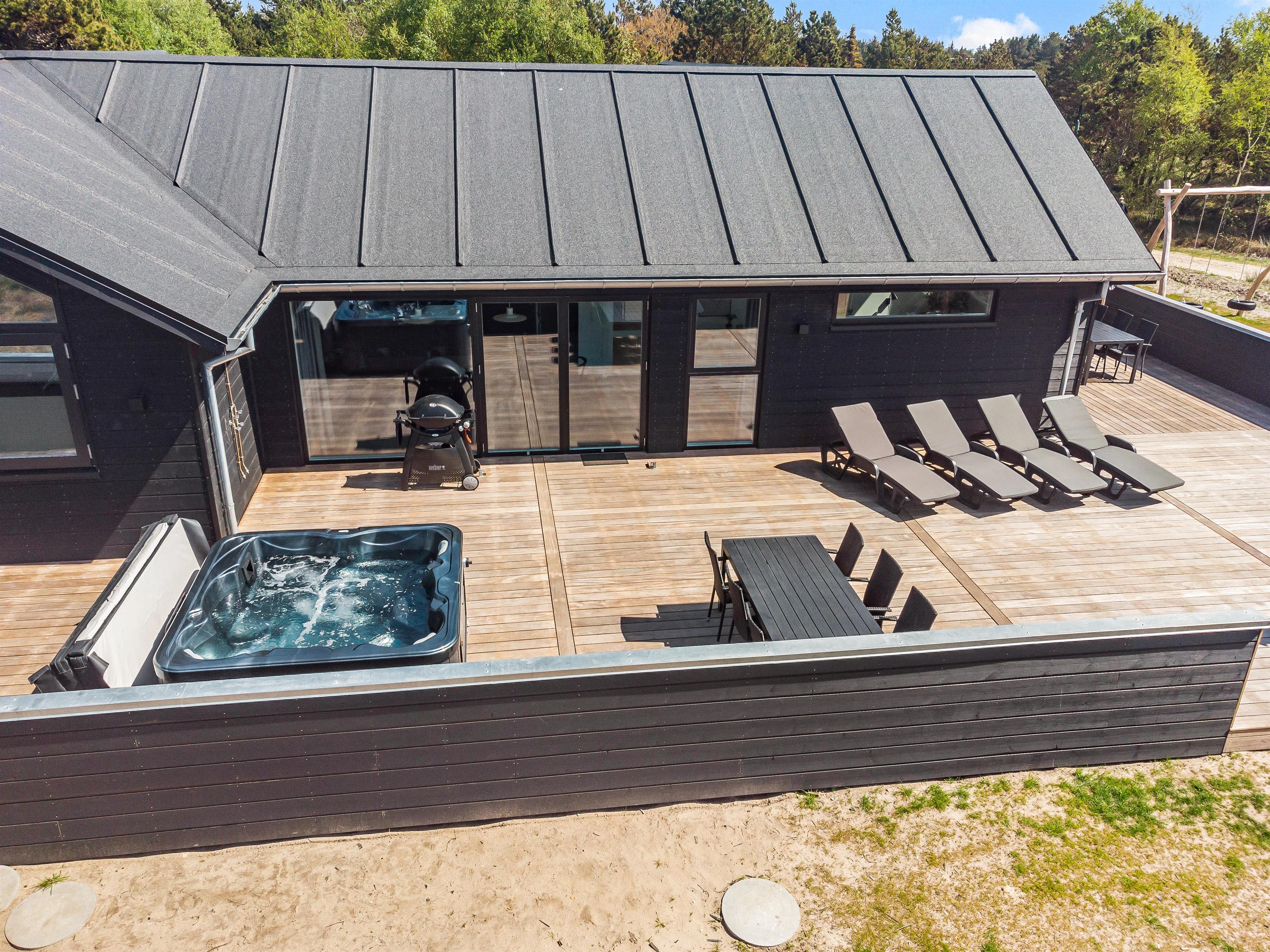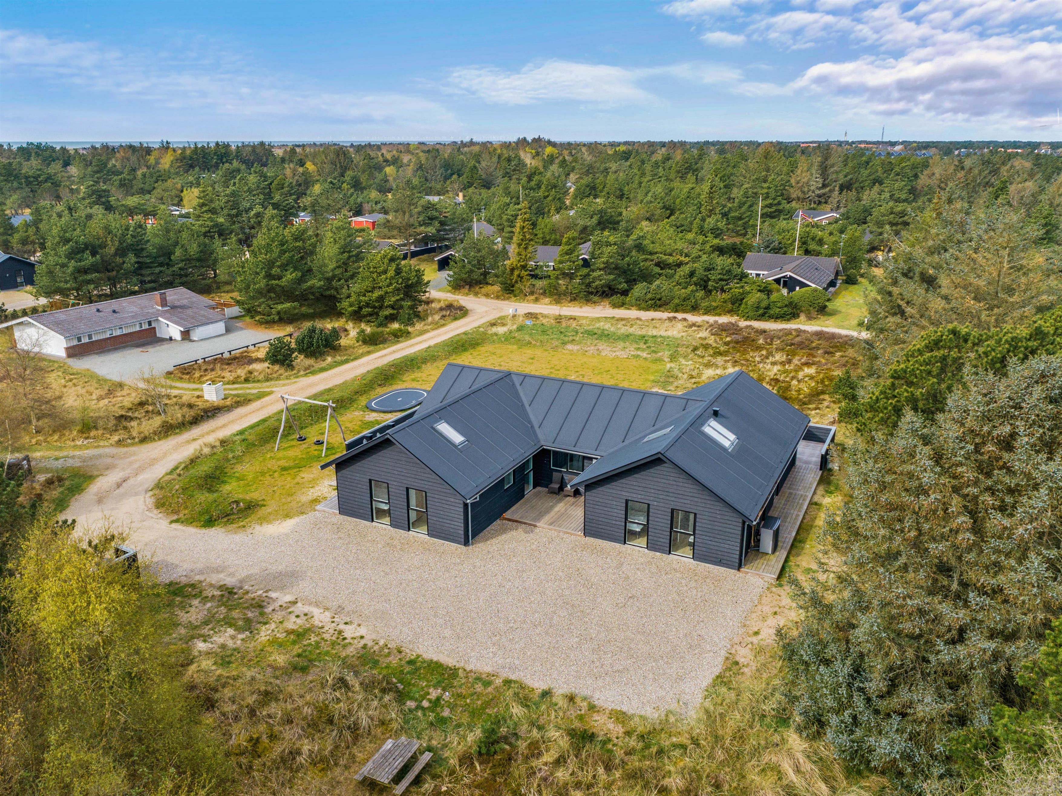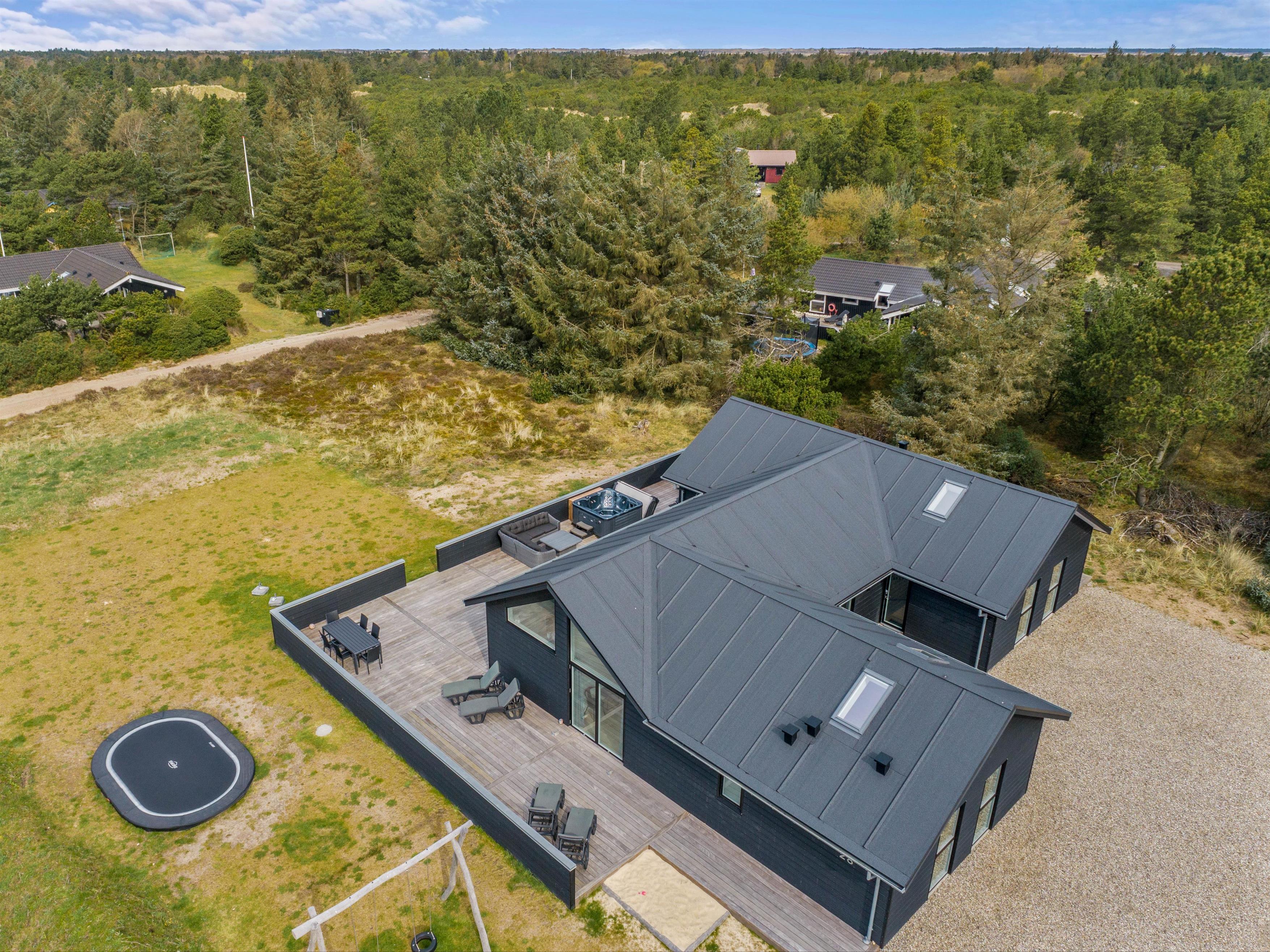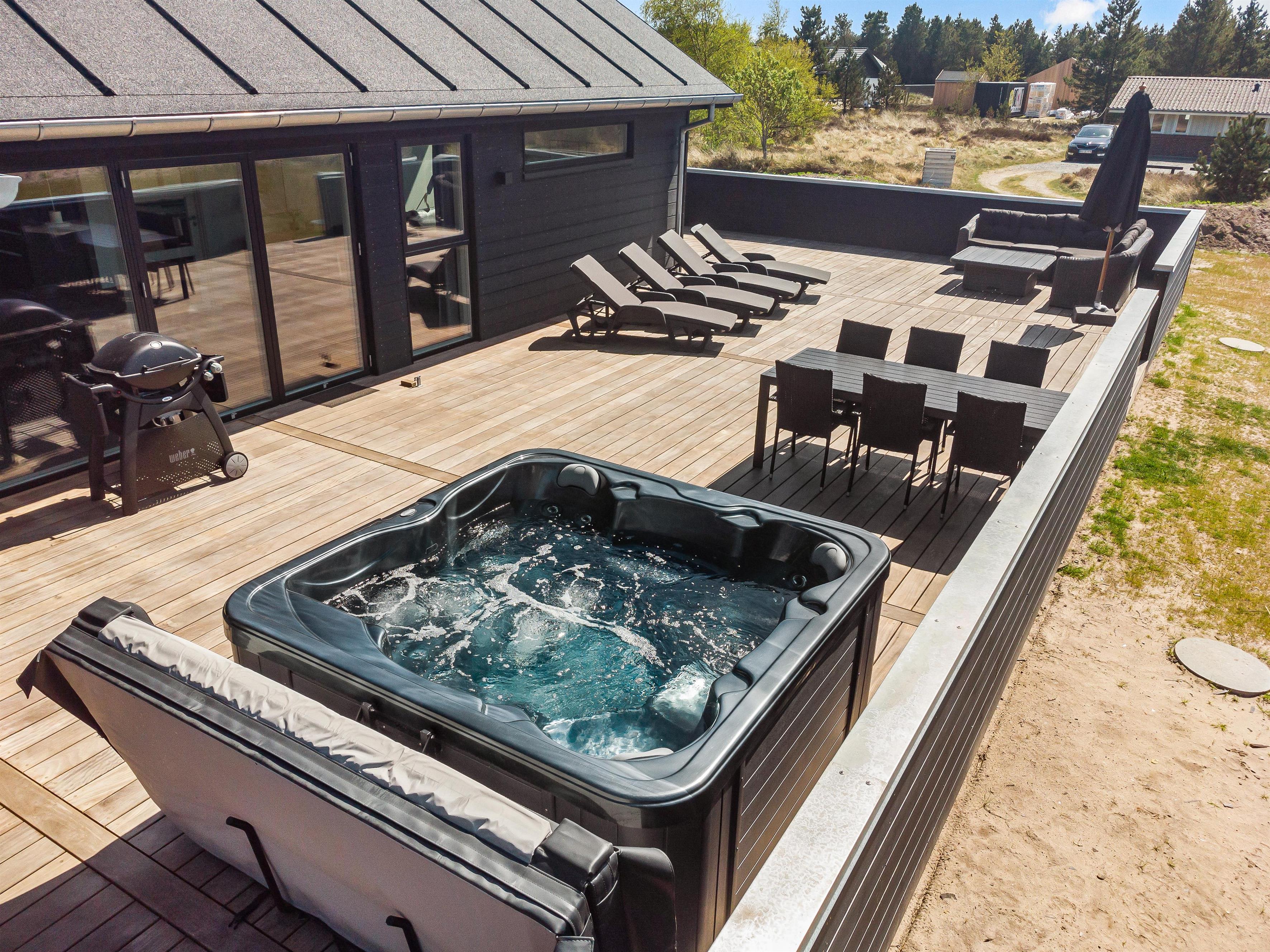 Skal jeres næste ferie holdes med den store vennegruppe eller med nogle andre familier? Så tag et kig på dette femstjernede sommerhus på Søren Gades Mark 28 i Blåvand. I det nybyggede (2022) sommerhus er der plads til op til 12 personer, der kan holde en dejlig ferie, hvor I kan tilbringe masser af tid i swimmingpoolen, udespaen og saunaen. Desuden er der også både billard og bordtennis i feriehuset. Hvis I har hund, er den hjerteligt velkommen på ferien.