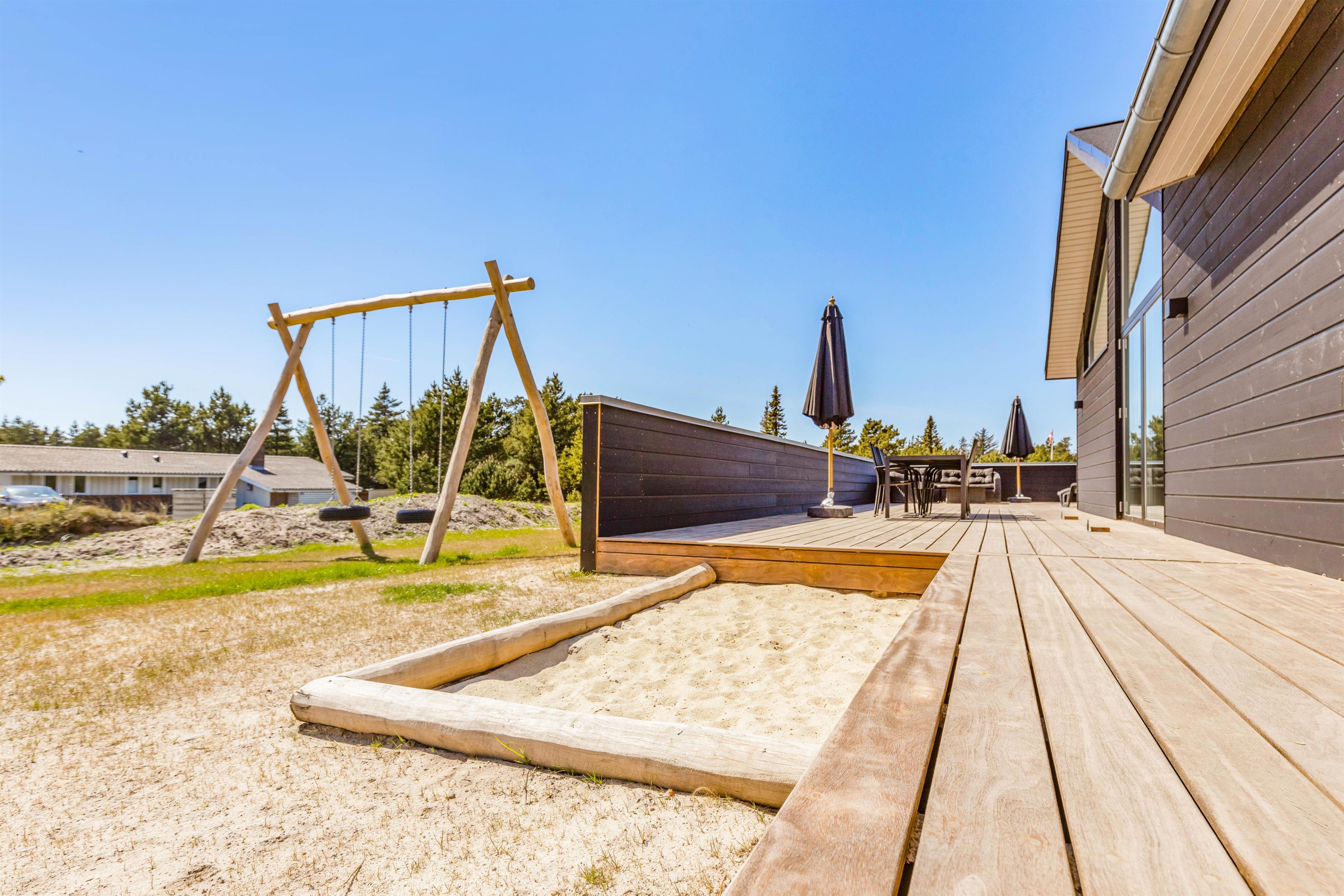 Mens I slapper af og nyder ferien fra terrassen, kan børnene lege i haven, hvor der både er en sandkasse og et gyngestativ til dem. Som dagen lakker mod enden, kan I samle alle feriegæster på terrassen og sammen nyde en lækker middag, som I kan lave på sommerhusets gasgrill.