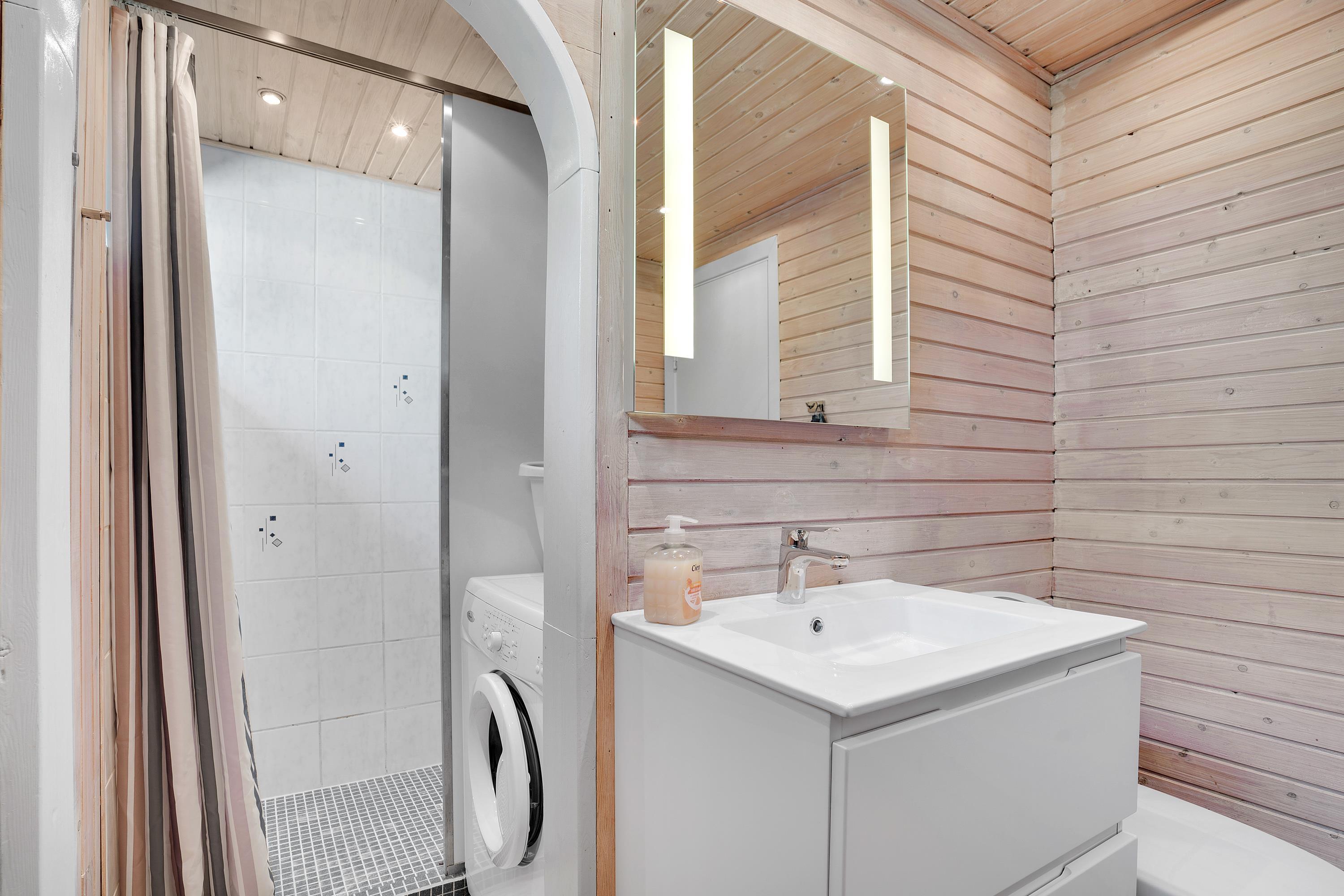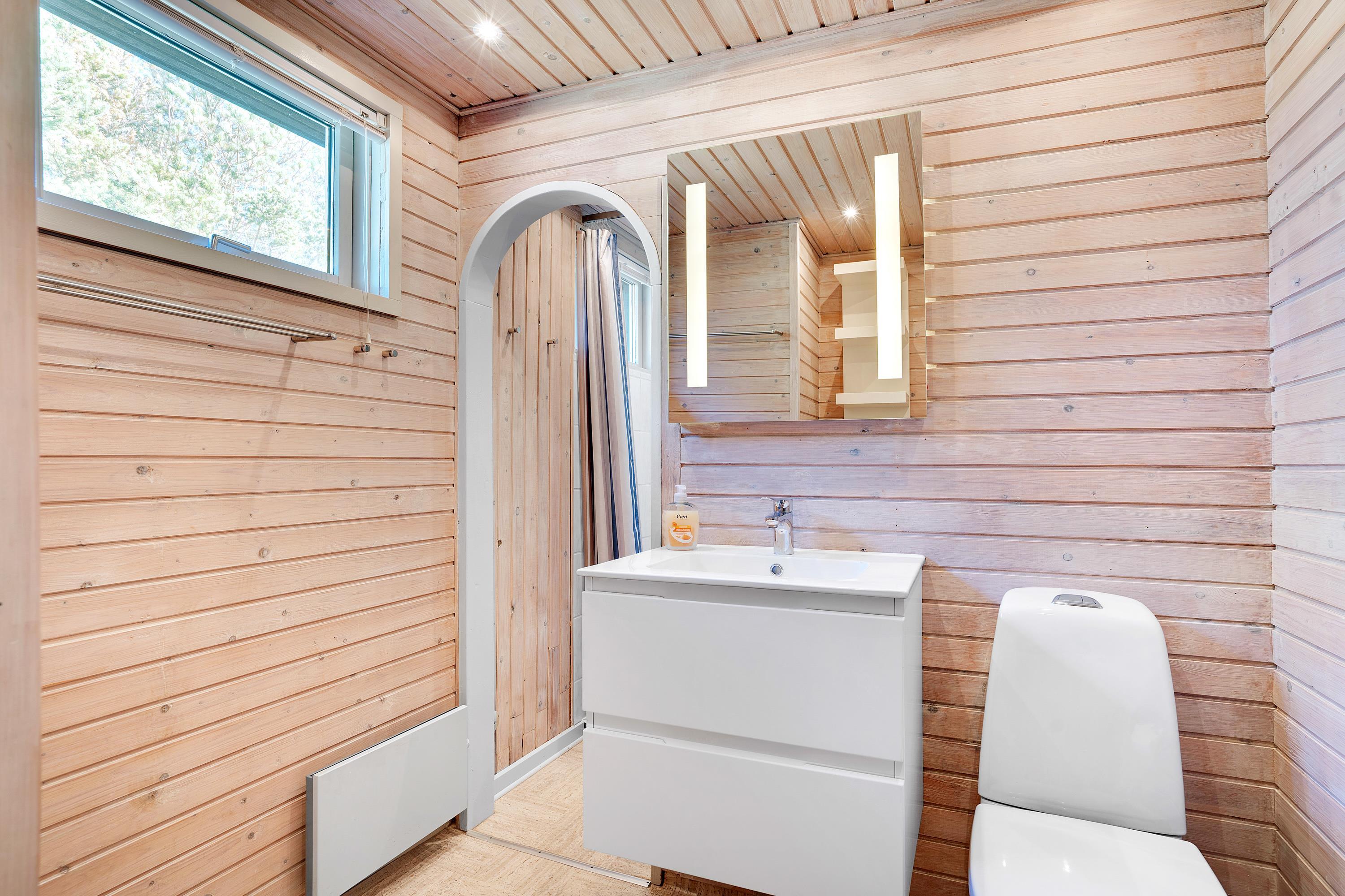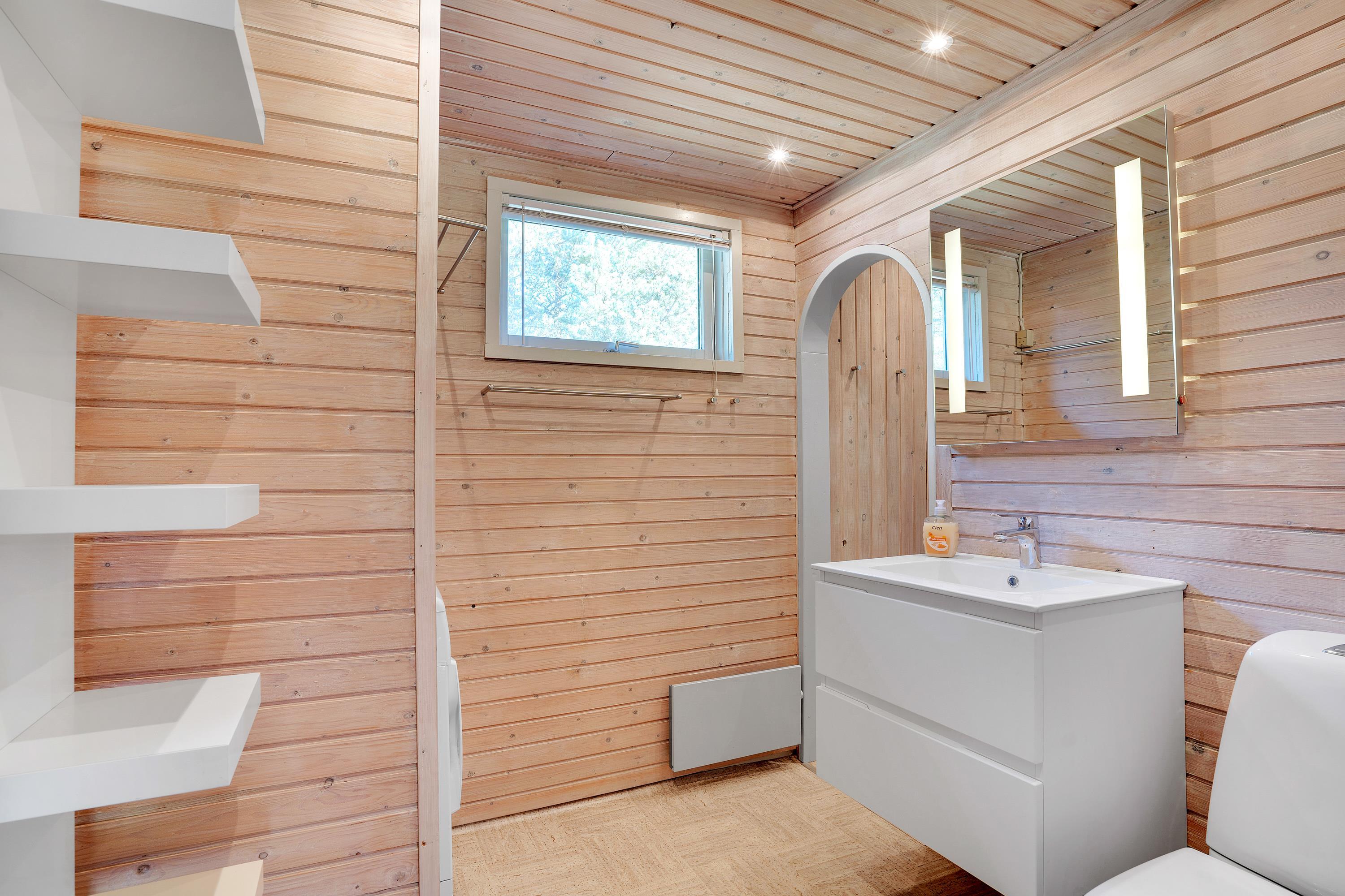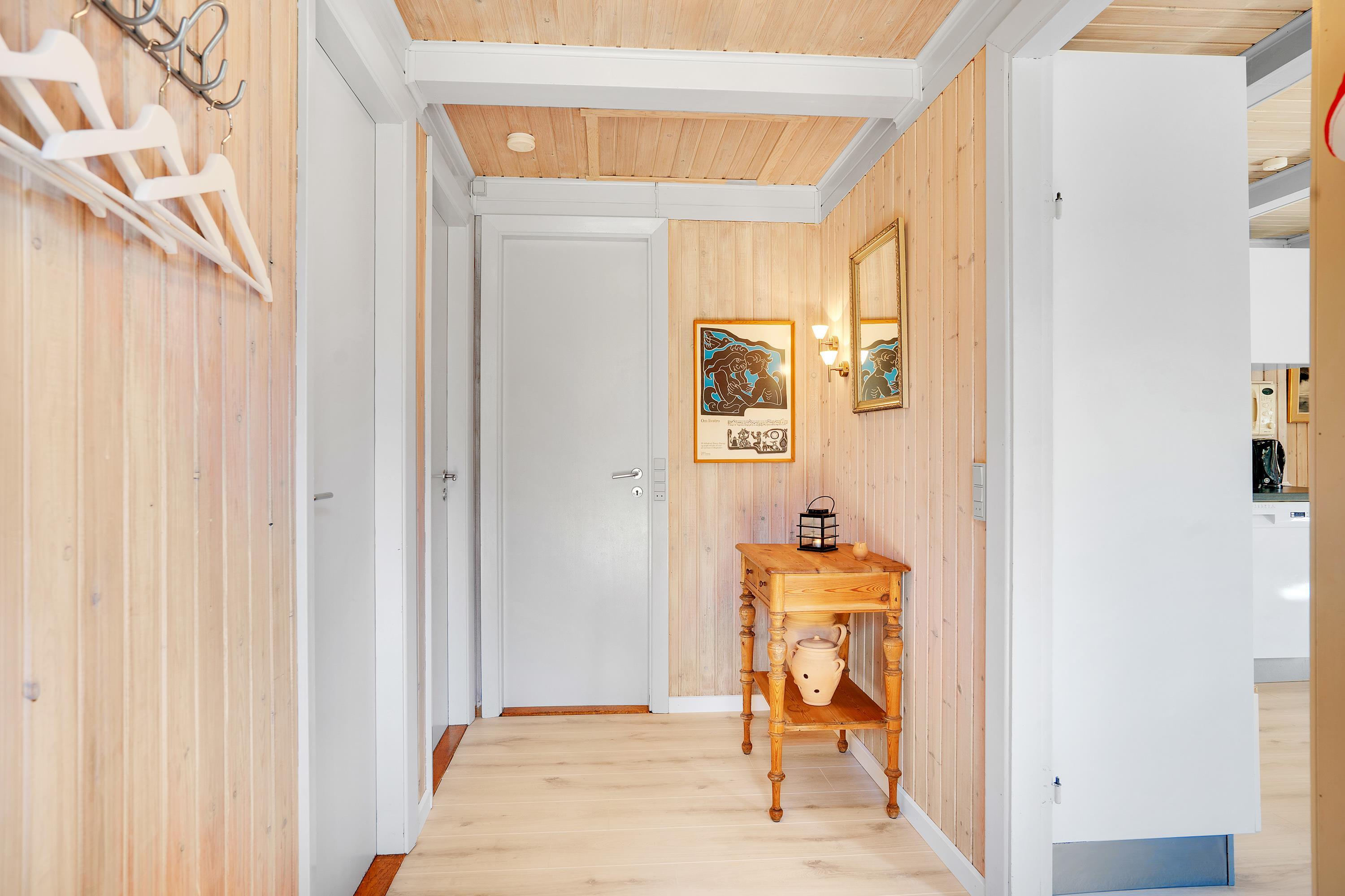 Sommerhuset er i 2020 blevet renoveret og fremstår lyst og venligt. Det åbne opholdsrum, der kombinerer køkkenalrum og stue i ét, er husets hjerte og centrum for samvær. Her står desuden den klassiske brændeovn, som sammen med de synlige loftsbjælker tilfører det indre ekstra charme.