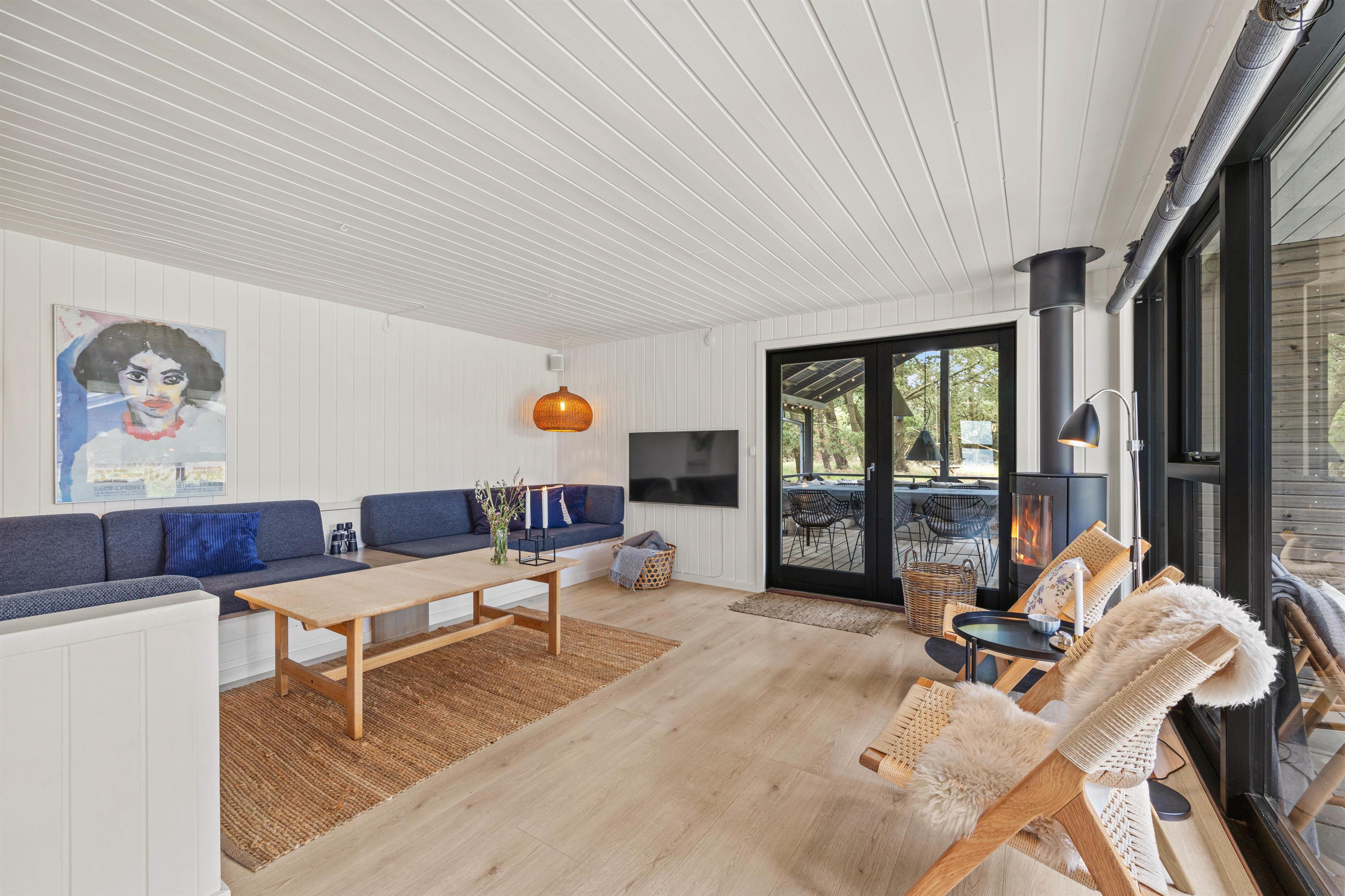 I sommerhusets alrum er der lagt op til masser af hyggestunder for hele familien. Her kan I blandt andet samles foran tv’et til en god film eller omkring spisebordet til et sjovt spil eller god mad. Her har I også en hyggelig alkove, hvor I kan trække jer tilbage til en stille stund. Brændeovnen i alrummet sørger for, at feriestemningen bliver fuldendt, og samtidig spreder den også en dejlig varme i rummet. Derudover har I en energivenlig varmepumpe i feriehuset, der sørger for behagelige temperaturer i huset året rundt, idet den både kan køle og varme.