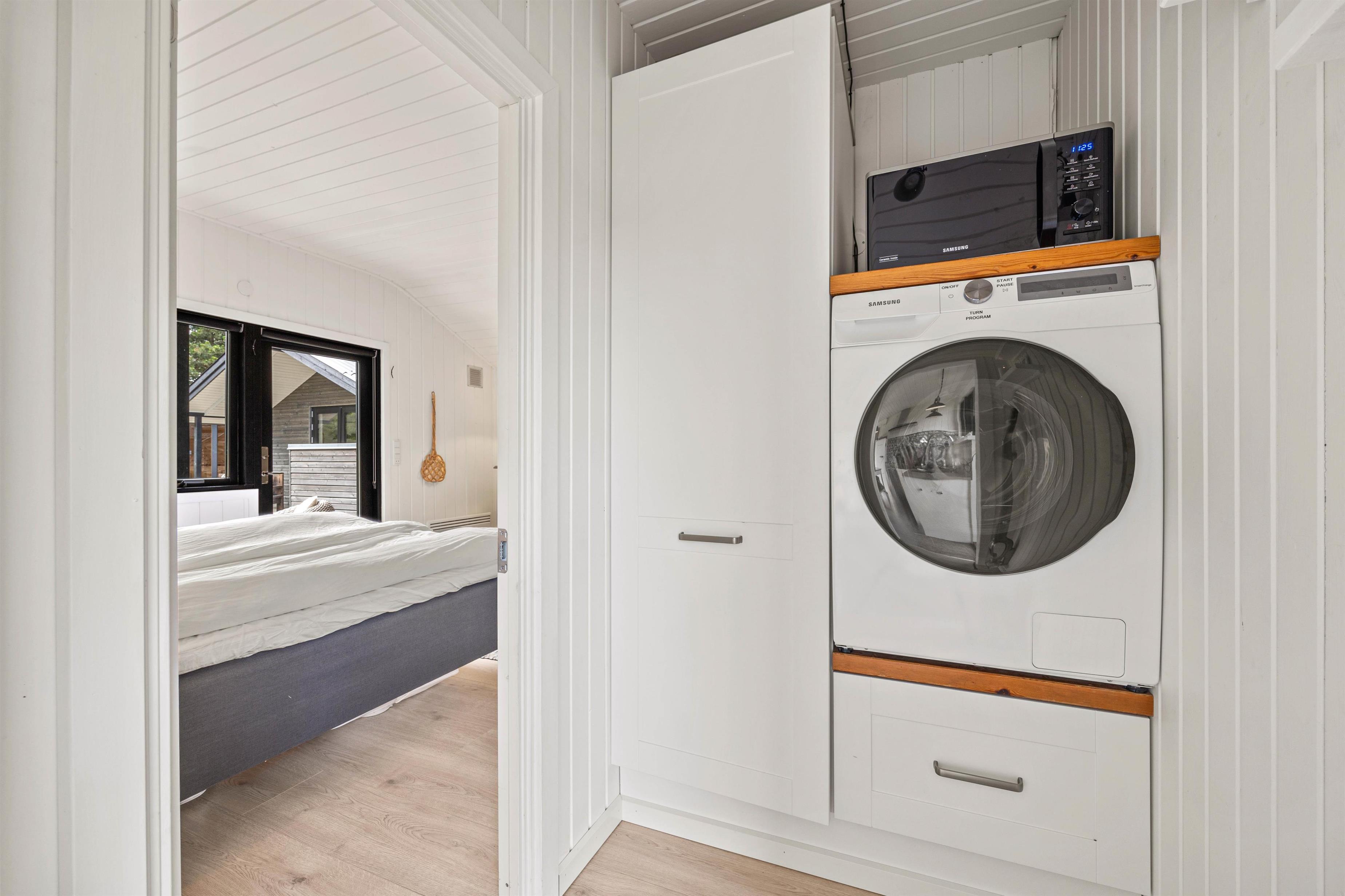 Jeres ferietid skal selvfølgelig ikke gå med at lave en masse praktisk husarbejde. Når I har lavet mad i køkkenet, sørger opvaskemaskinen for opvasken, og når tøjet skal vaskes i løbet af ferien, har I både vaskemaskine og tørretumbler til rådighed.