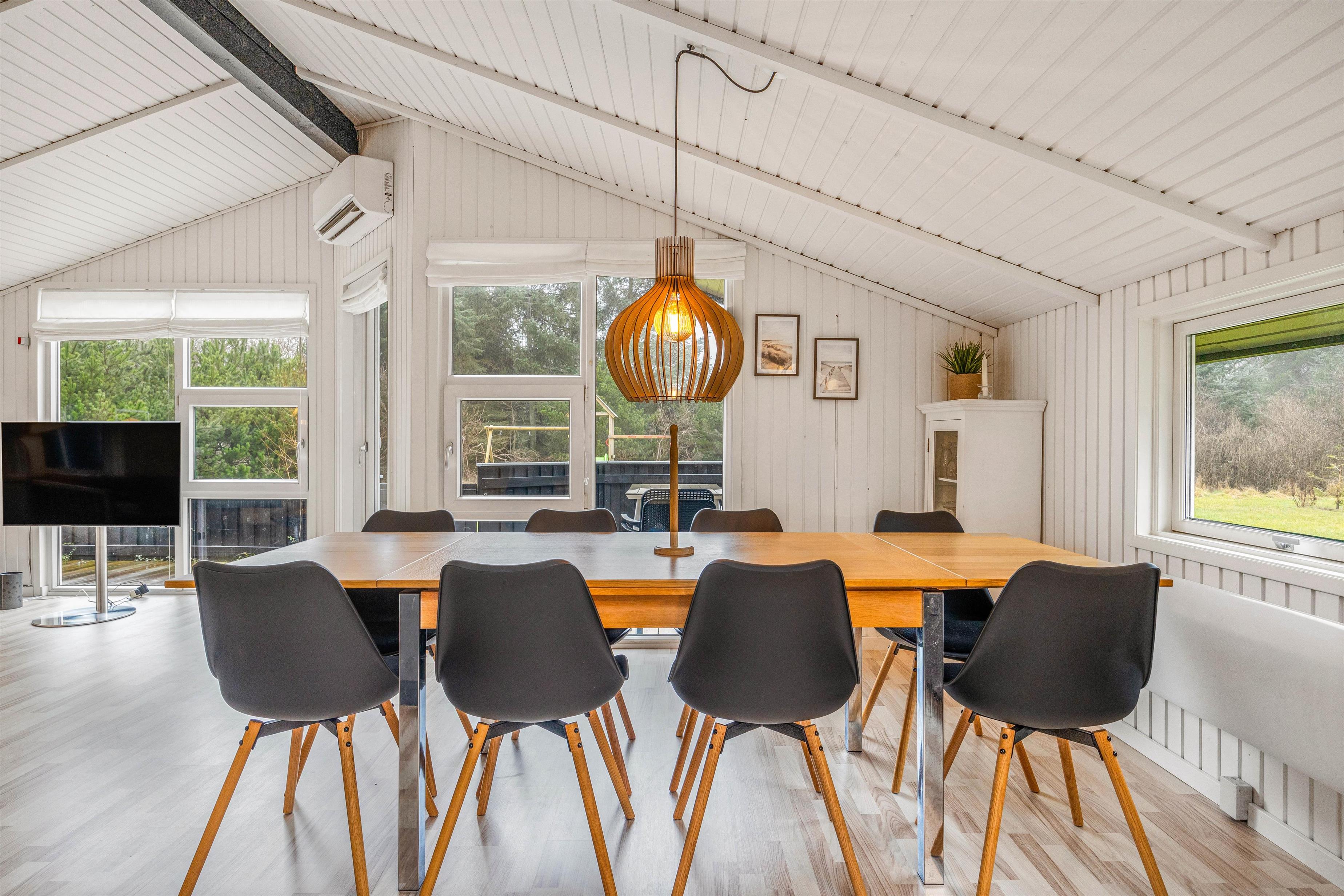 Alrummet byder også på en hyggelig brændeovn, der sætter prikken over i’et for feriestemningen med sin knitren i baggrunden. Derudover spreder brændeovnen også en dejlig varme i alrummet. Desuden er sommerhuset også udstyret med en energivenlig varmepumpe, der sørger for gode indendørs temperaturer.