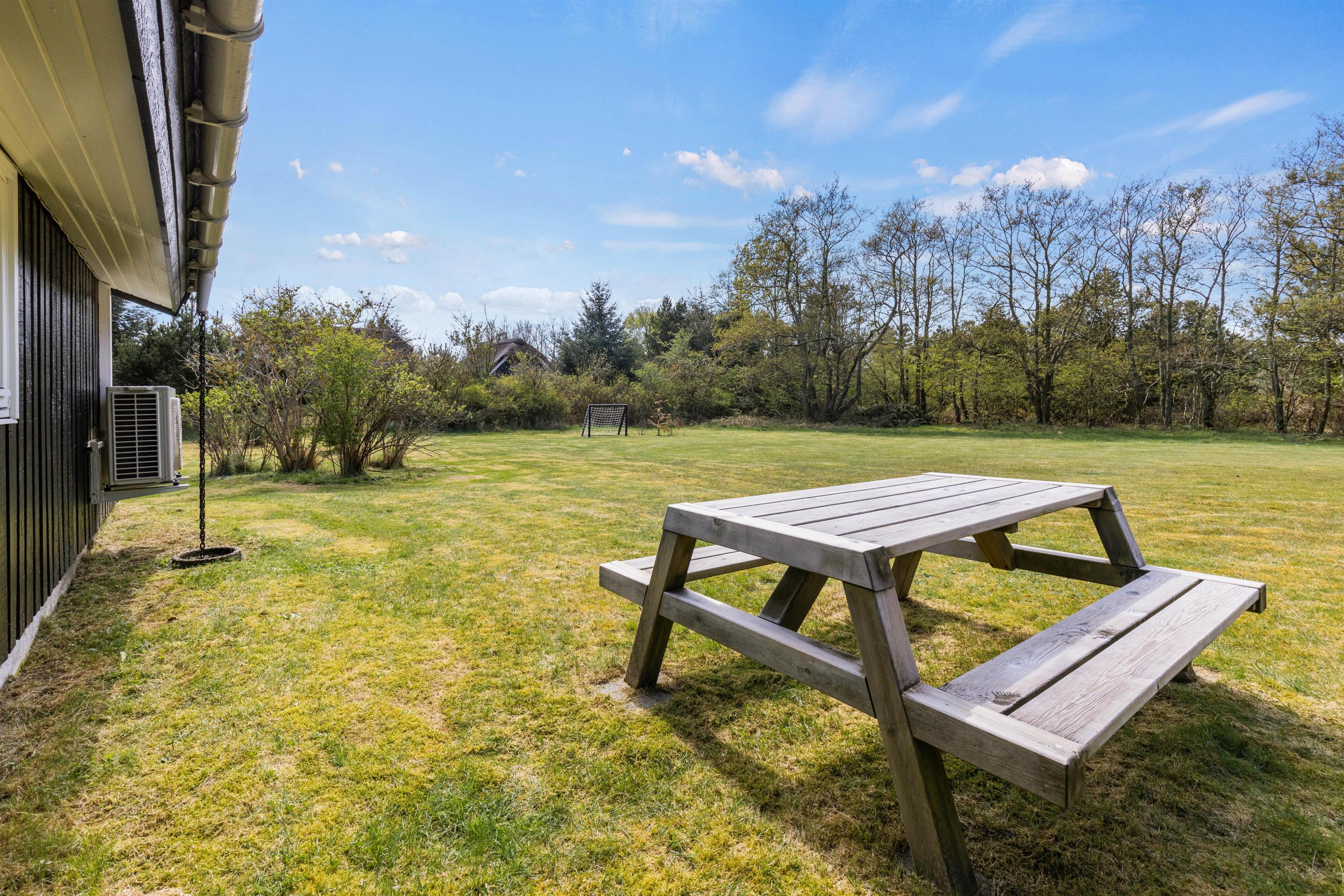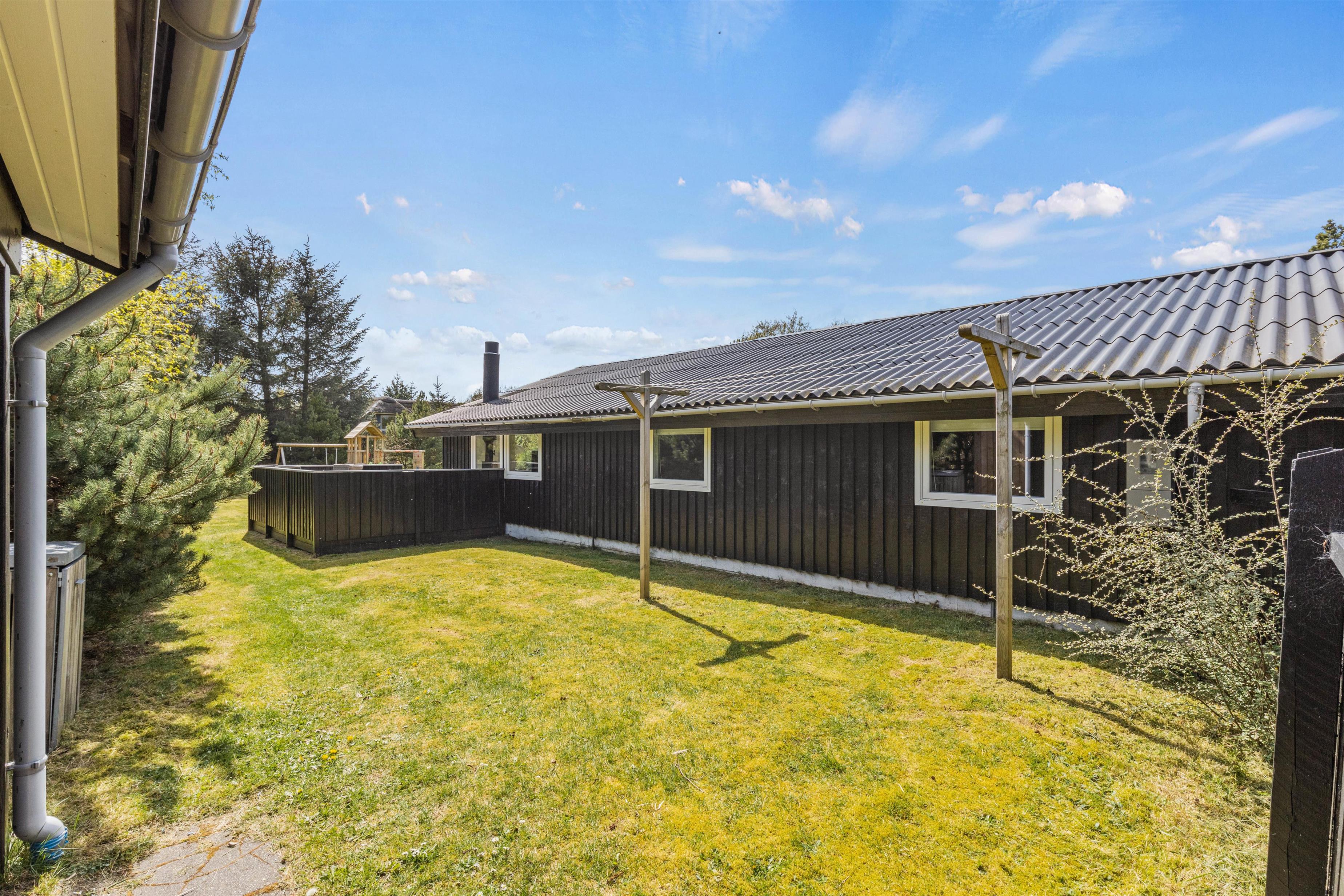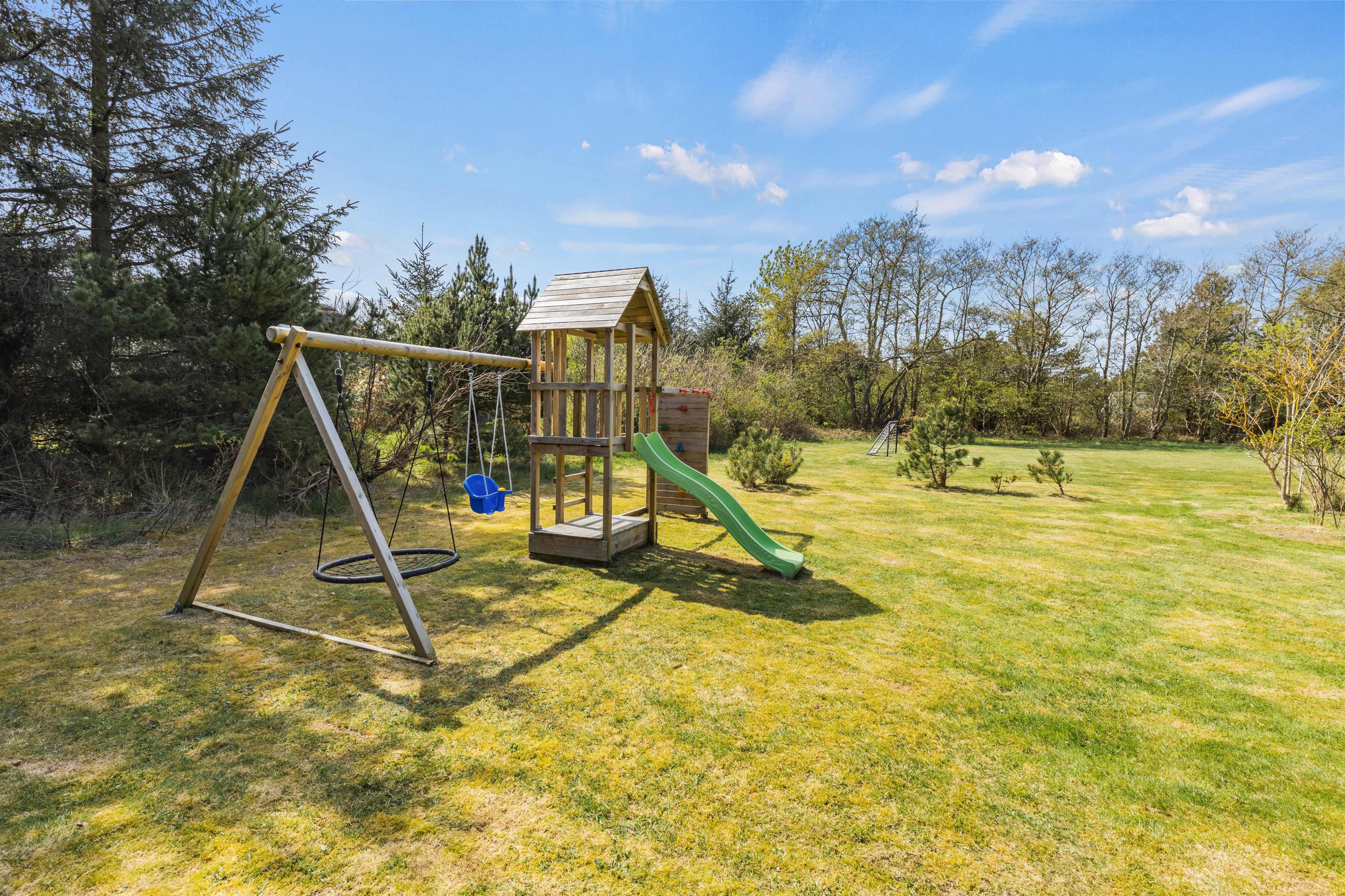 Sommerhuset er beliggende på en 2.400 kvadratmeter stor plænegrund, og her venter jer et stort udendørs område, som både store og små kan tilbringe de solrige feriedage på. Feriens yngste gæster vil helt sikkert elske den store have, og derudover er der også en gynge til dem.