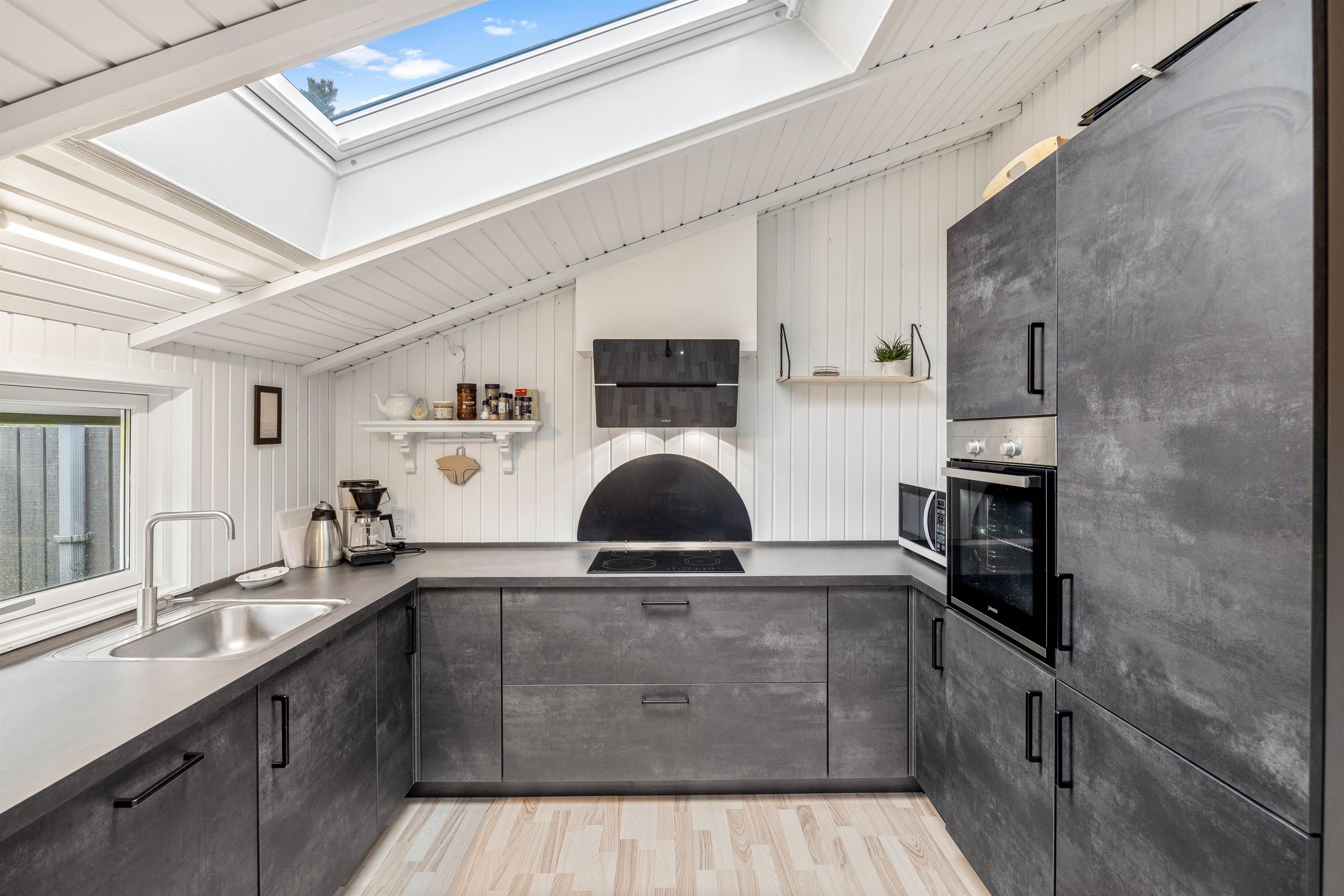 Sommerhusets hjerte, som også bliver jeres store samlingspunkt på ferien, er alrummet. Her er køkken, stue og spiseplads samlet, og I har derfor rig mulighed for at tilbringe mange dejlige feriestunder her, hvor I blandt andet kan lave mad i det nye køkken fra 2021.