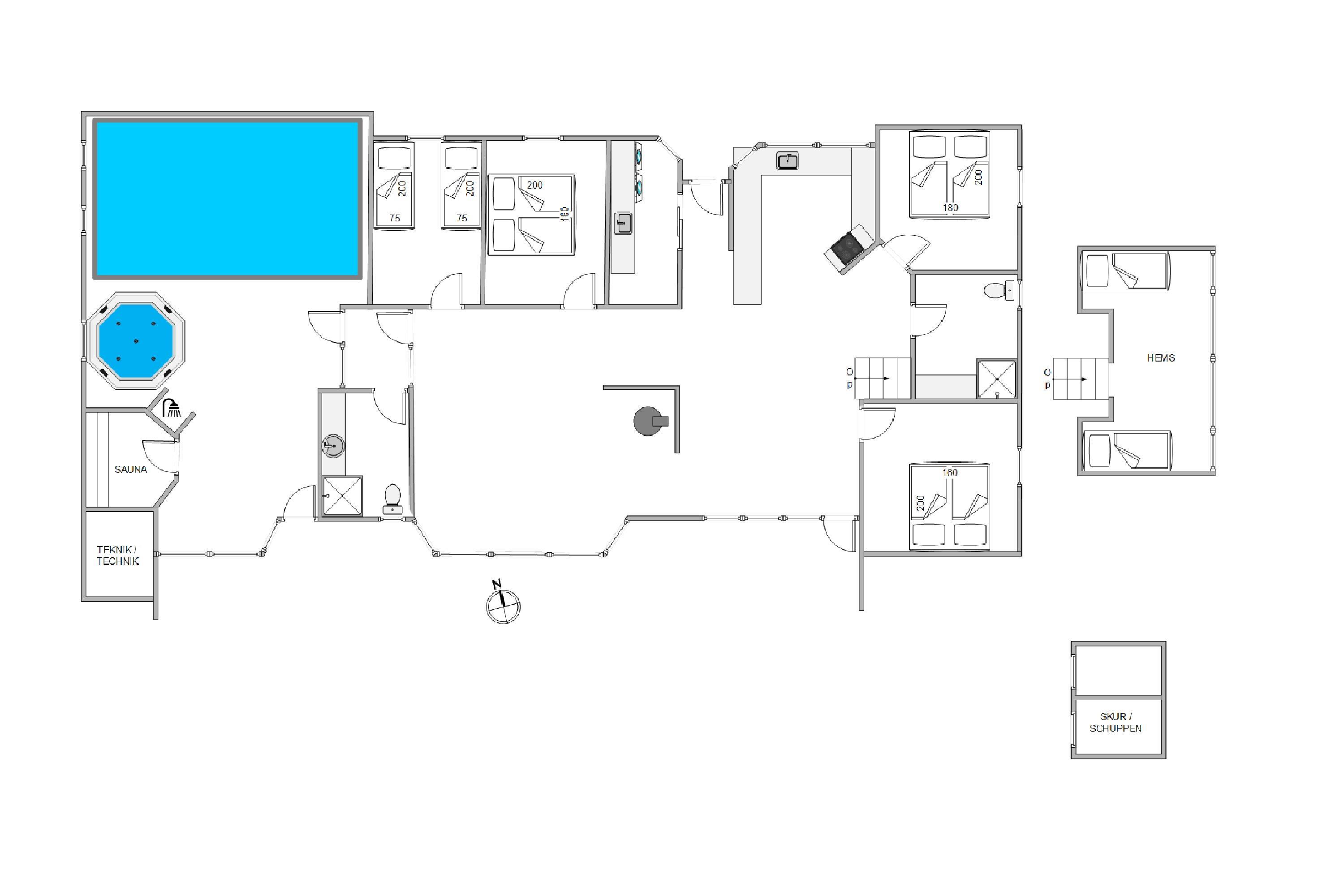 Swimmingpool, spa og brændeovn er nogle af faciliteterne i dette feriehus på 175 m2. Her er plads til 8 personer, ideelt til den større familie eller venner, og der er masser af muligheder, børnene kan udforske. Hunden er også velkommen, og el-bilen kan oplades direkte i indkørslen. (medbring eget type 2 kabel)