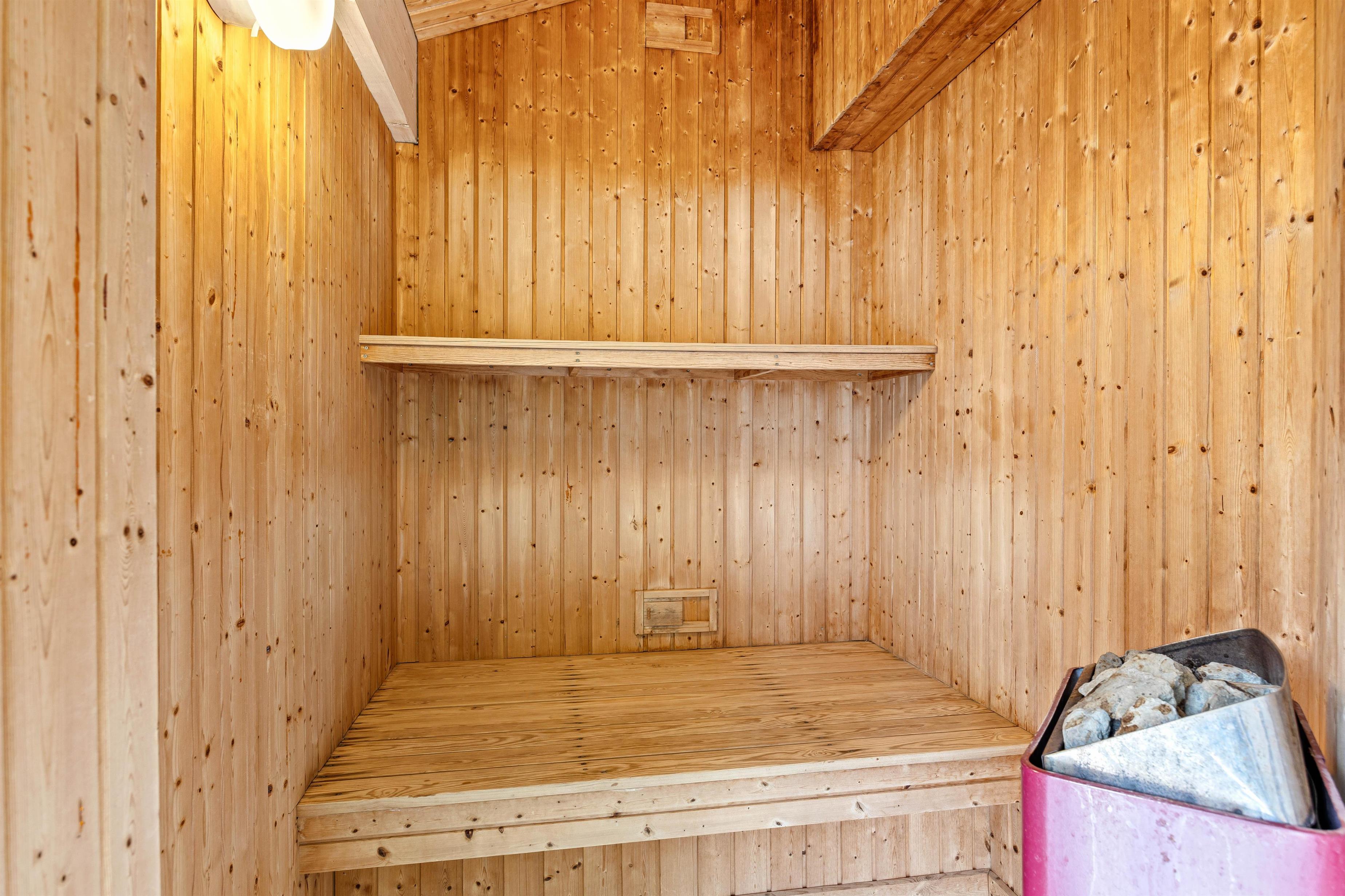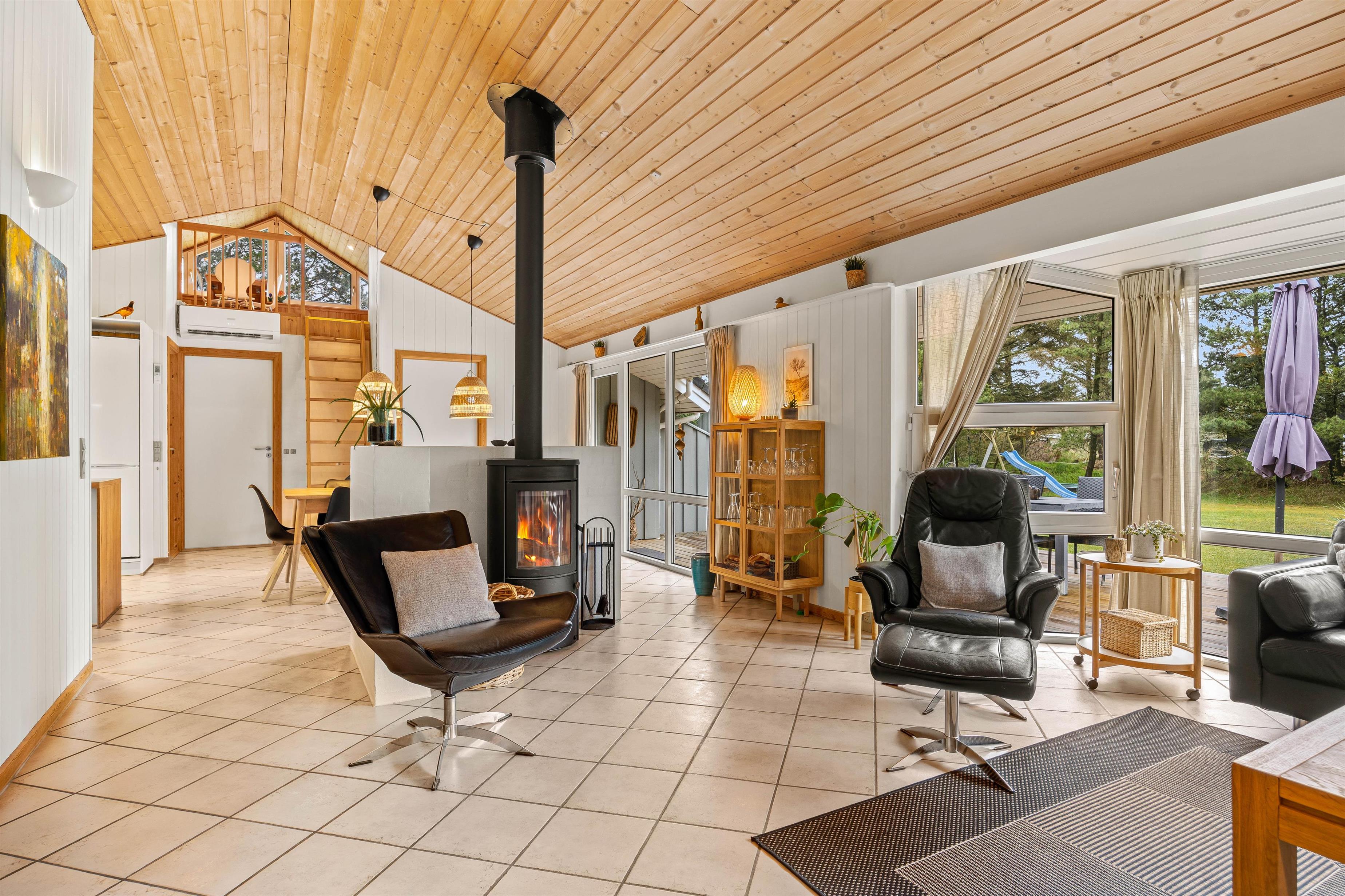 På Søren Lassens Vænge 19 kan I alle tilbringe mange glade ferietimer sammen i den store stue. Det åbne køkkenområde ligger lige ved siden af spisepladsen, så I kan lave mad sammen, mens børnene leger på hemsen. Brændeovnen er centralt placeret i stuen, giver den perfekte feriestemning med den knitrende ild i brændeknuderne. Endvidere er der en energibesparende varmepumpe til opvarmning. Fra stuen er der direkte adgang til poolområdet, og mens børnene plasker rundt i swimmingpoolen, kan de voksne slappe af i spaens bobler – eller omvendt.