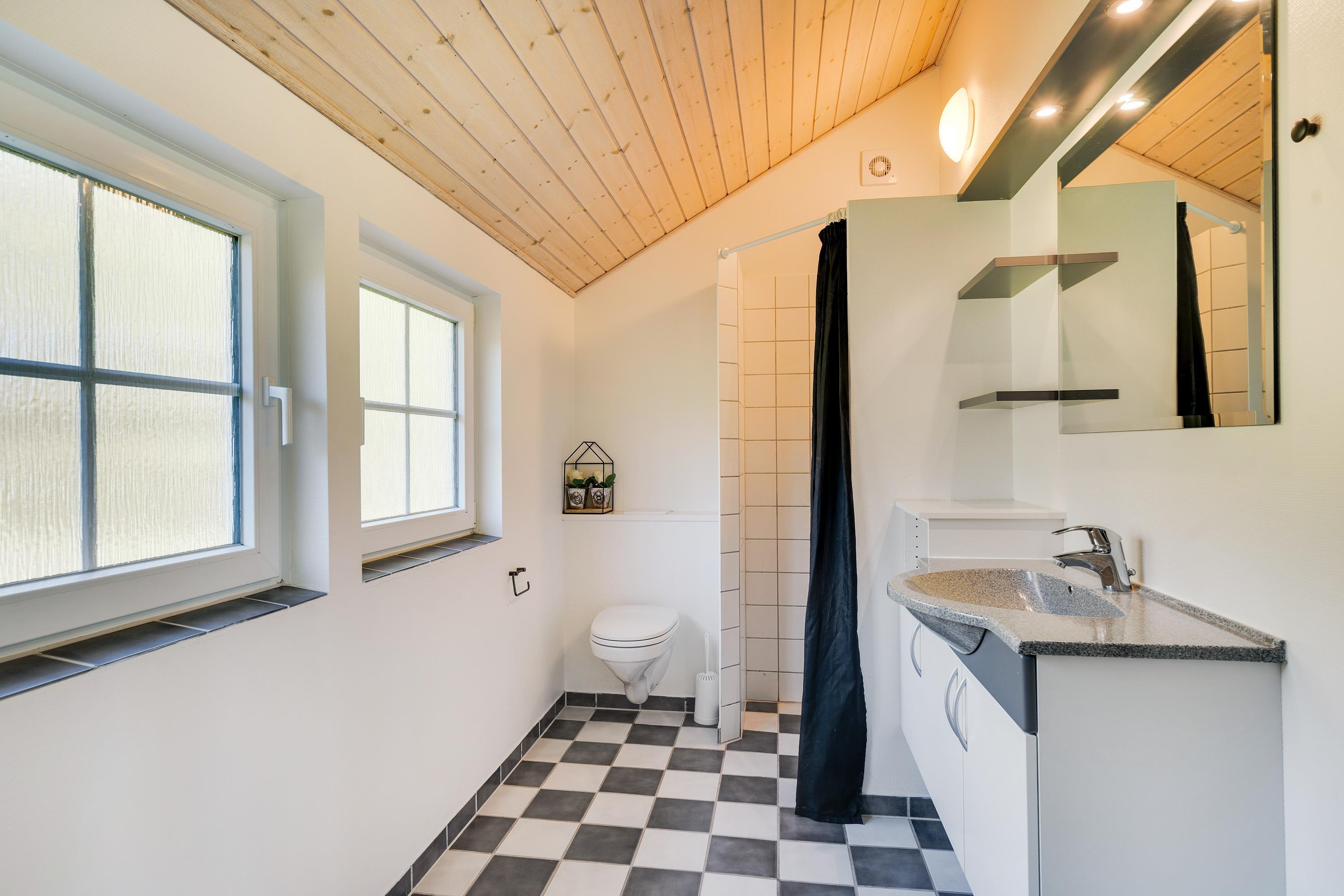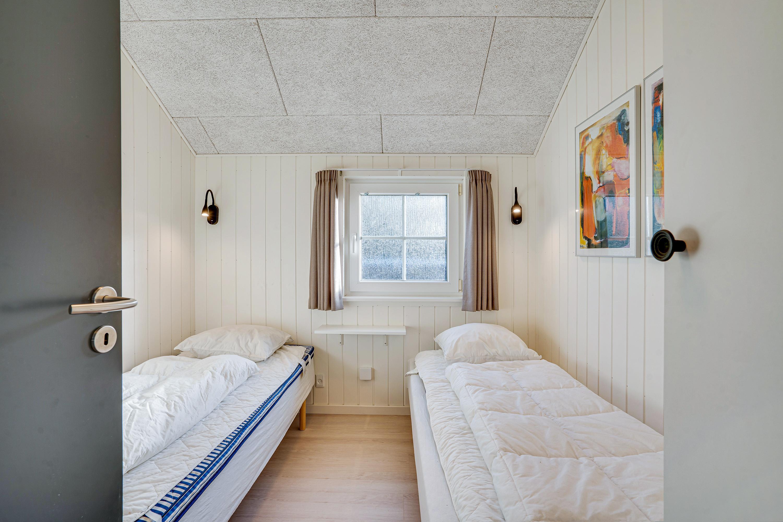 Feriehuset rummer 3 badeværelser og 6 soveværelser, alle med god skabsplads. 3 af soveværelserne er med dobbeltseng, og de andre med hver 2 enkeltsenge. Dertil kommer hemsene, hvorpå der er en soveplads på hver.