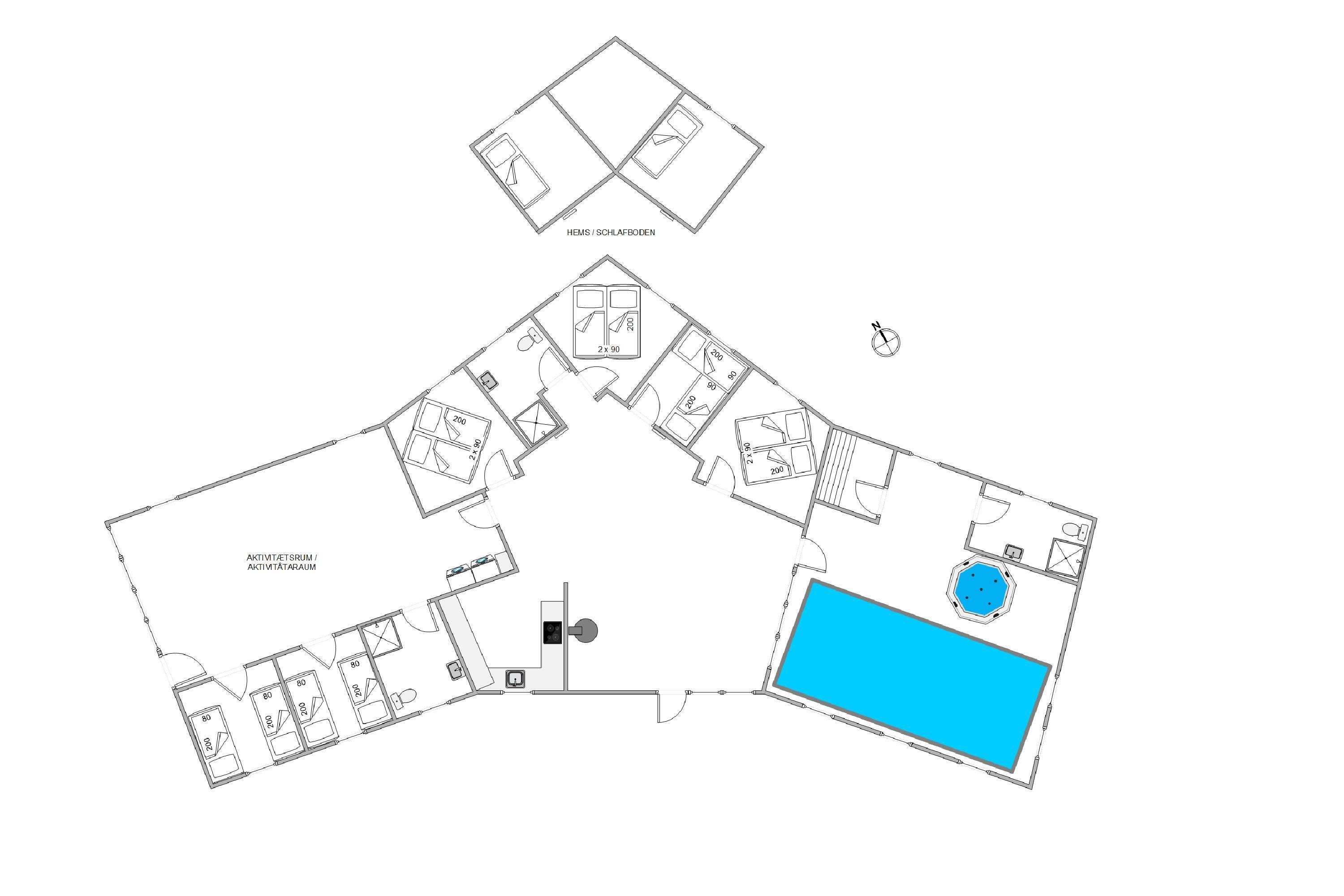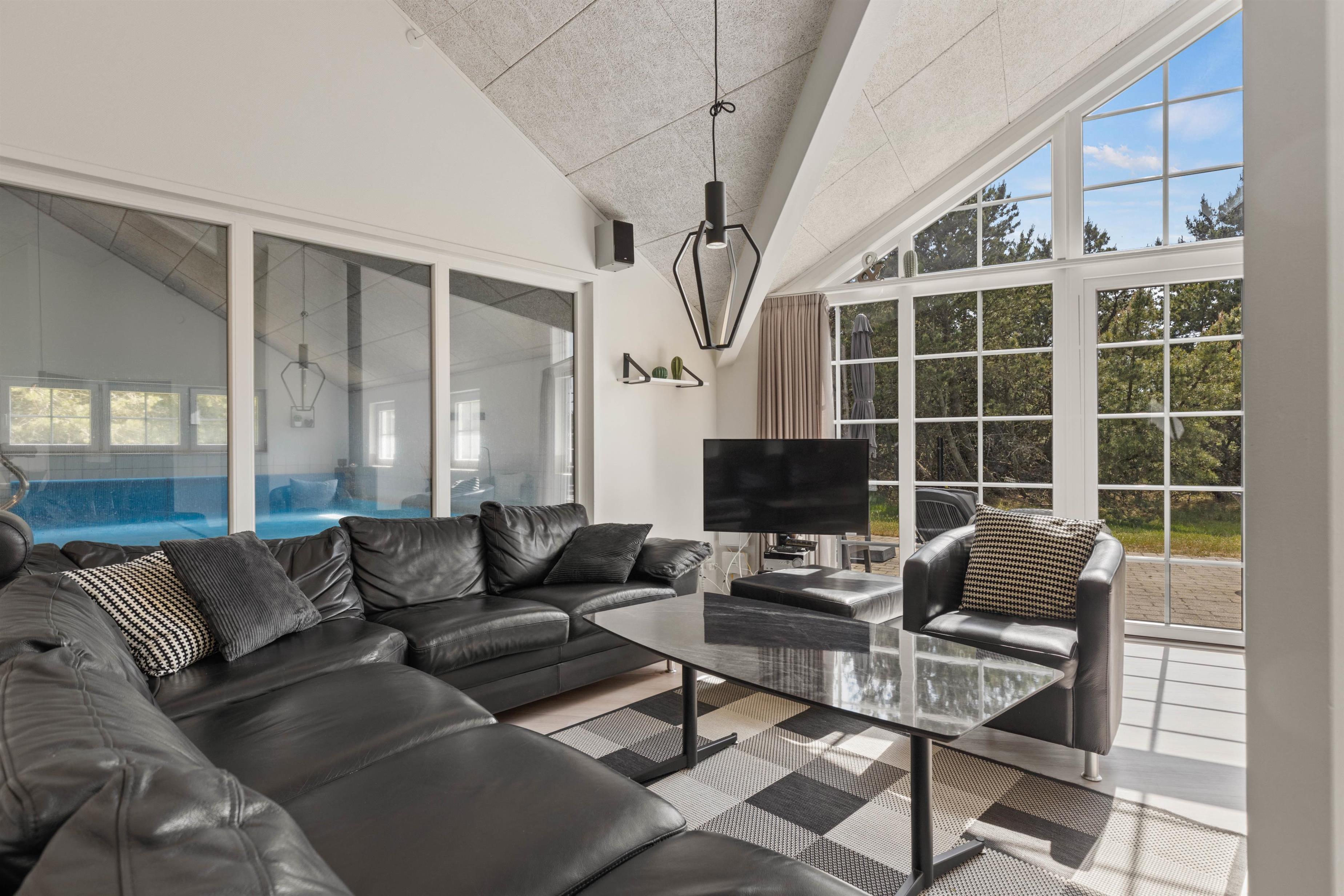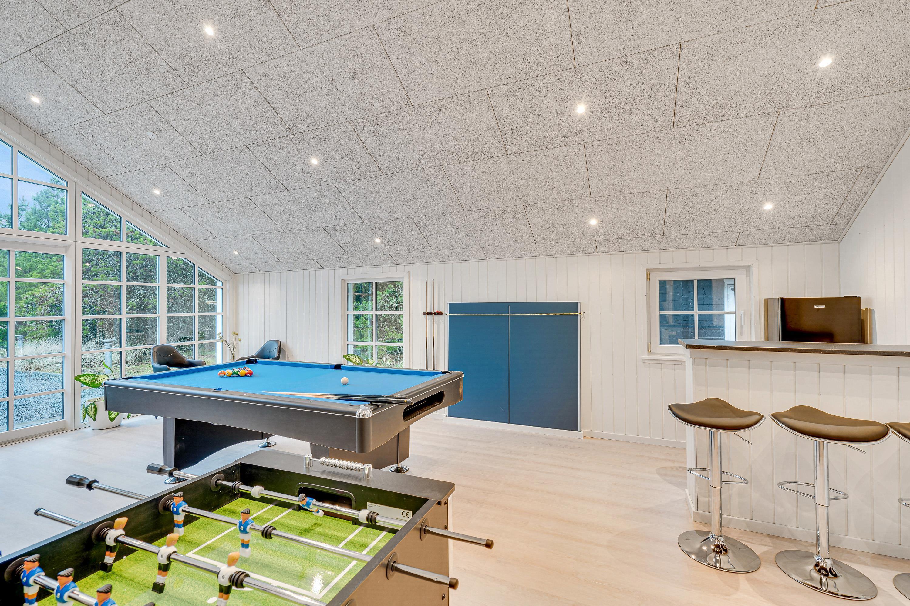 Indendørs swimmingpool, spabad, sauna, aktivitetsrum med billard og bordfodbold, fibernet og et fantastisk udeareal med stor terrasse og legeplads er blot nogle af de skønne feriehighlights, I får i dette sommerhus.