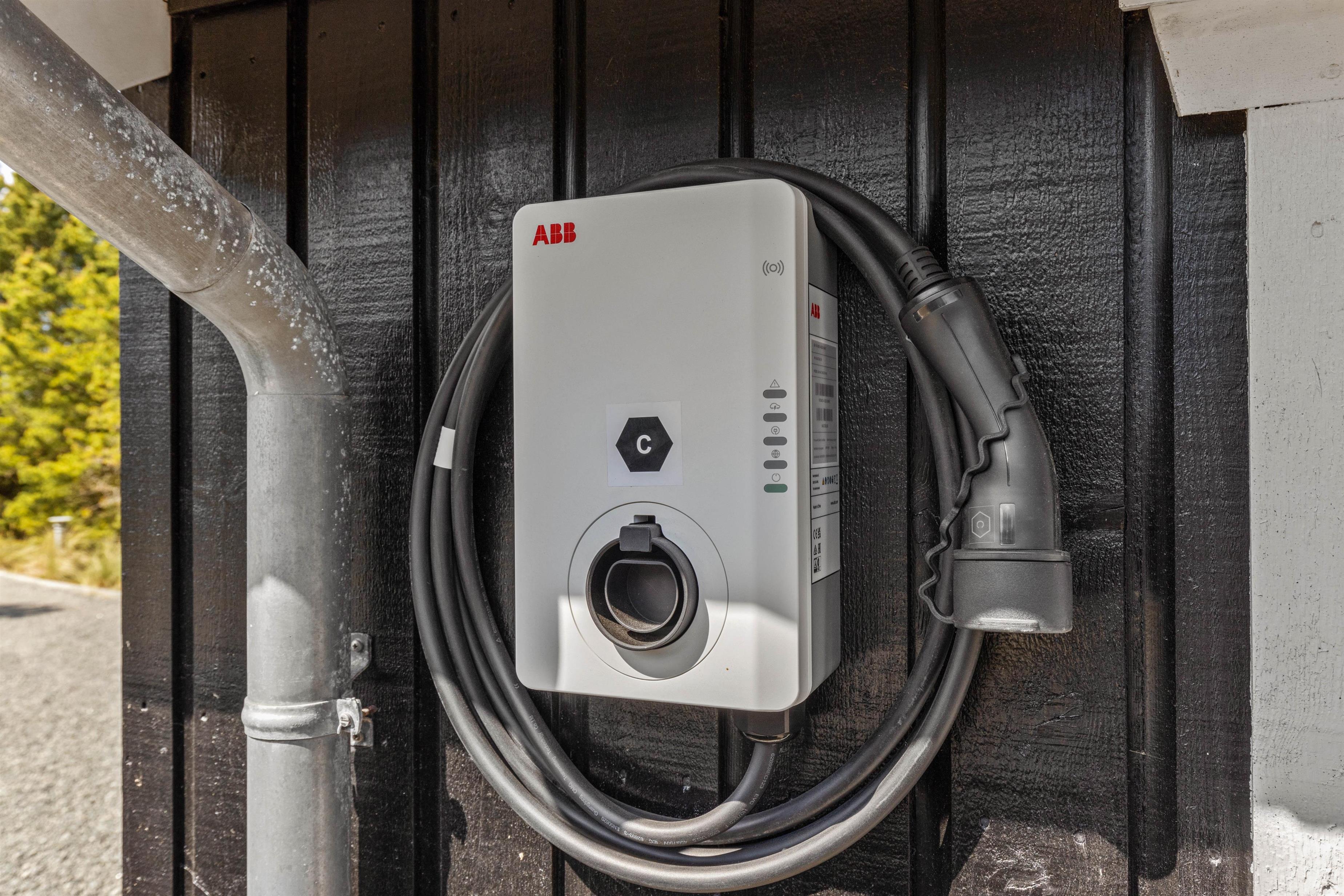 Sommerhuset har grøn strøm i form af jordvarme og solceller, og derudover er der en ladestander til el-bilen ved sommerhuset.