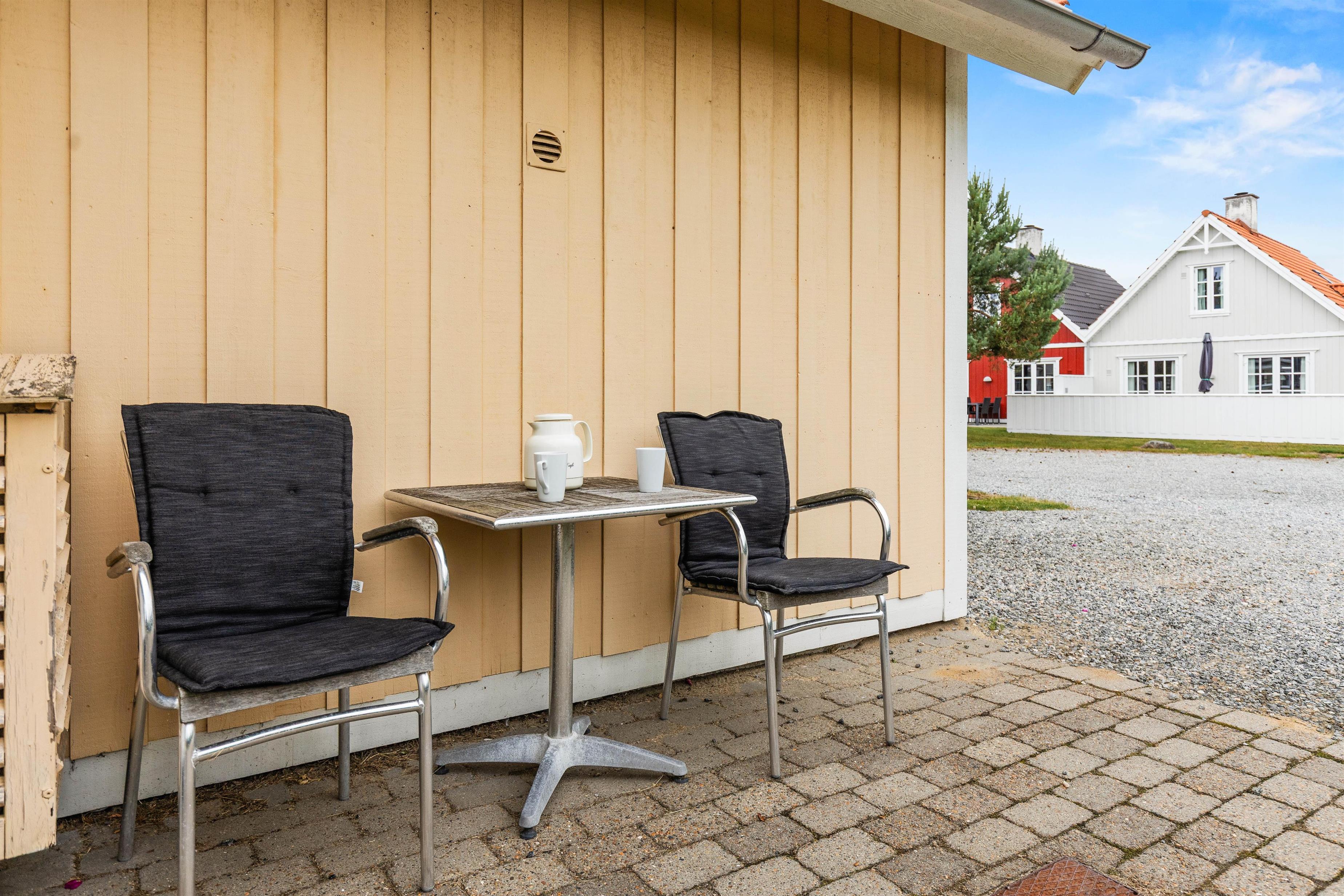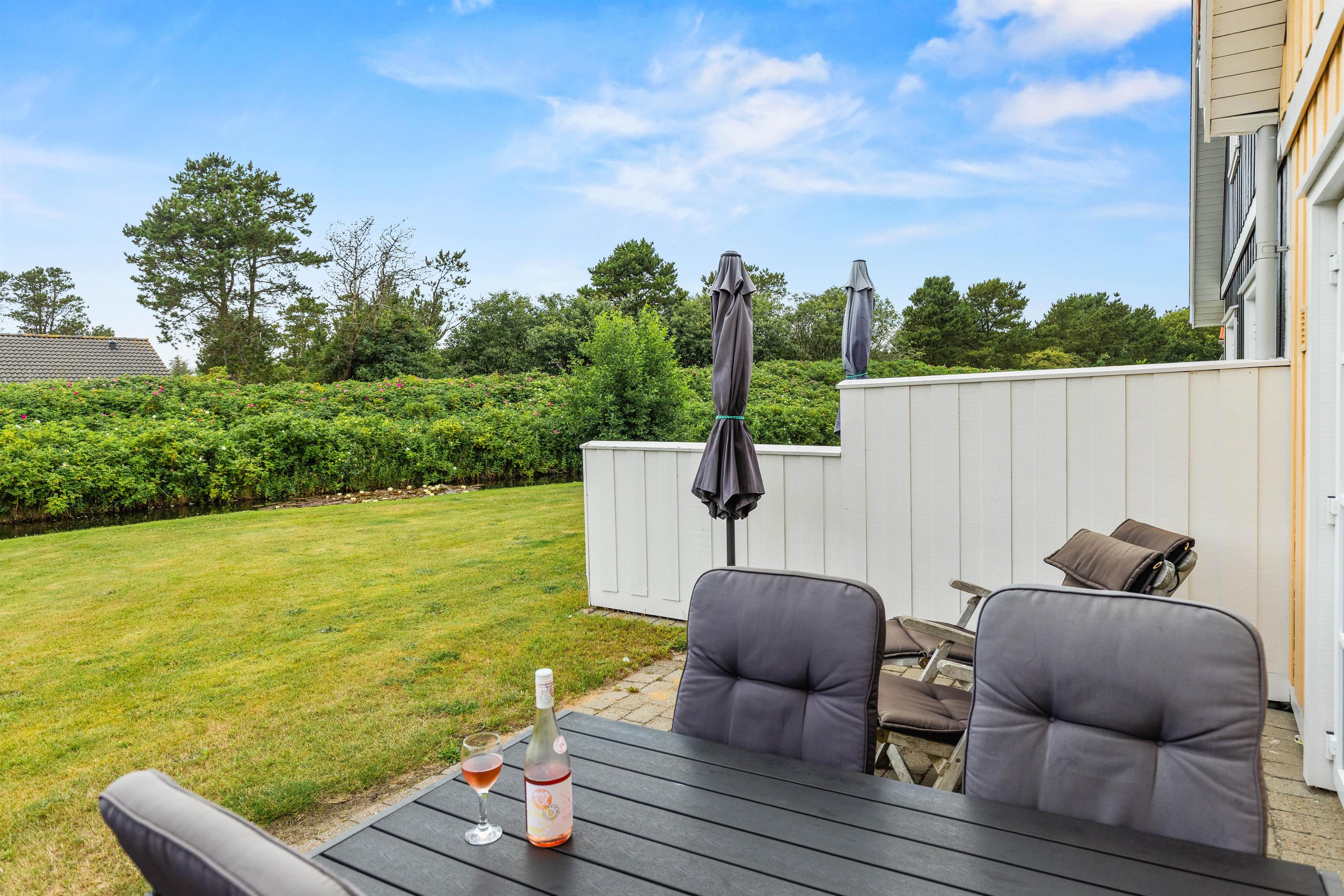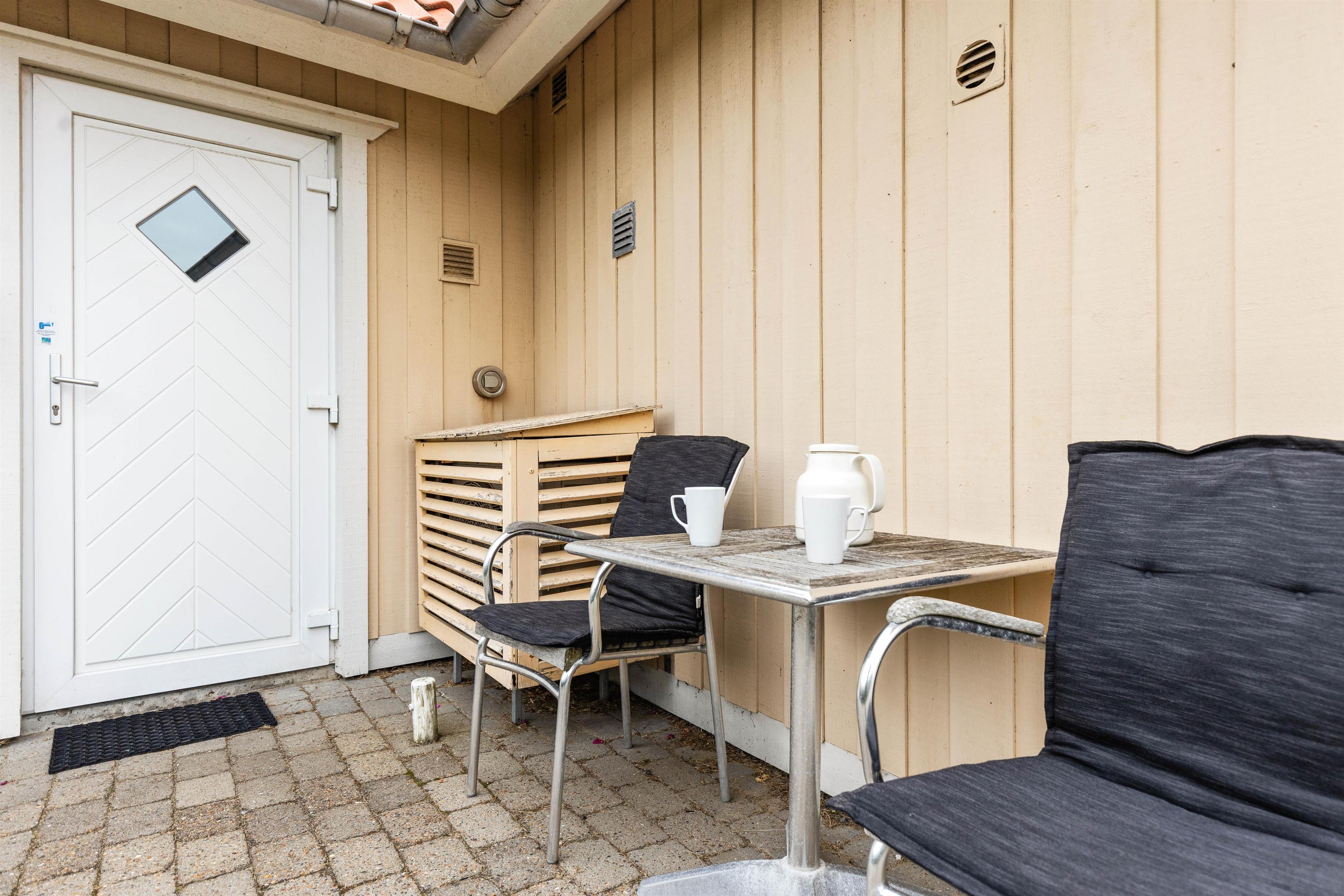 Det cremefarvede rækkehus står hyggeligt og indbydende i Blåvands skønne ferieomgivelser, og her er der ingen tvivl om, at I kan få nogle rigtig dejlige feriedage langt væk fra alting - uden at mangle stil og luksus.