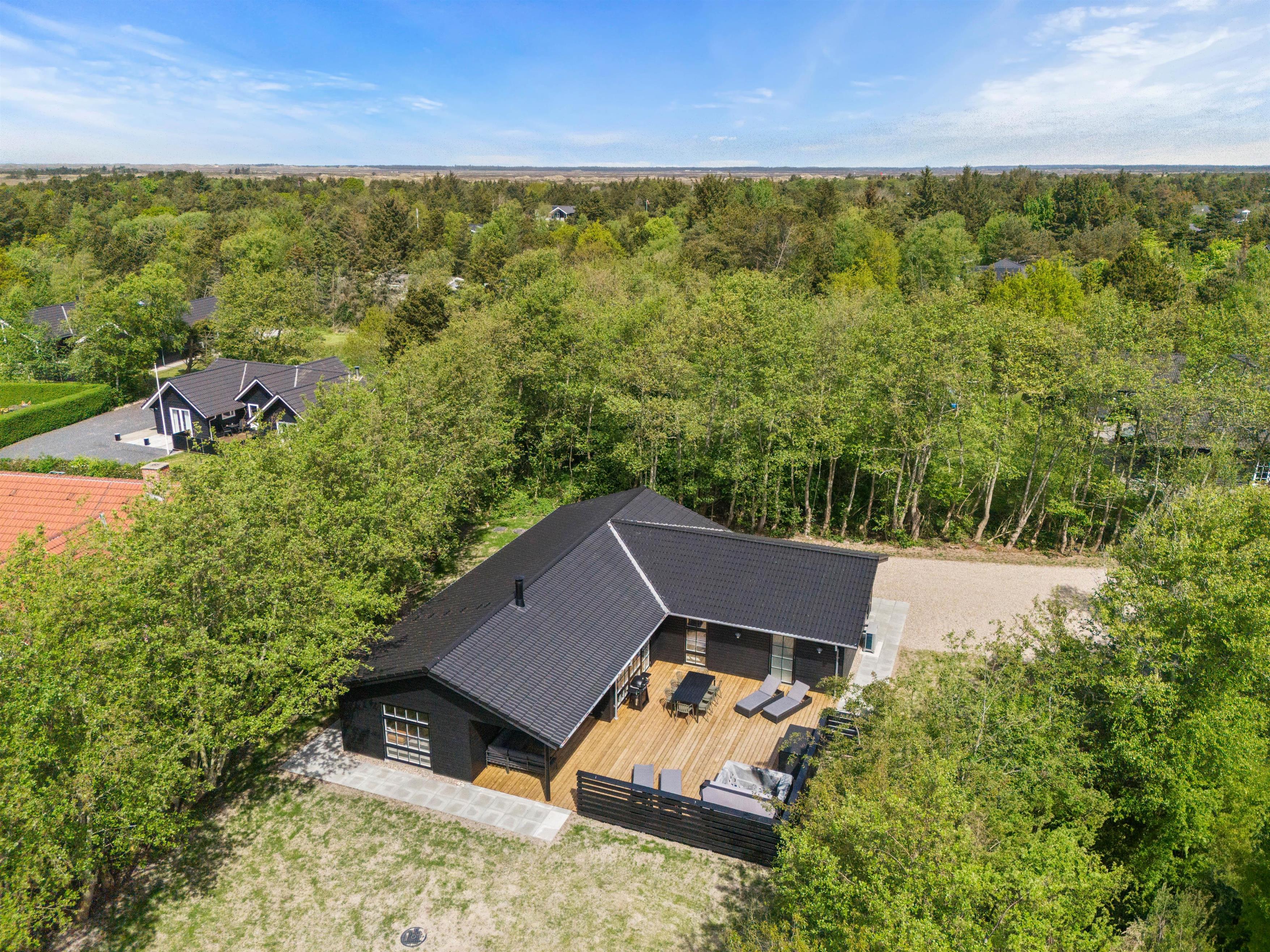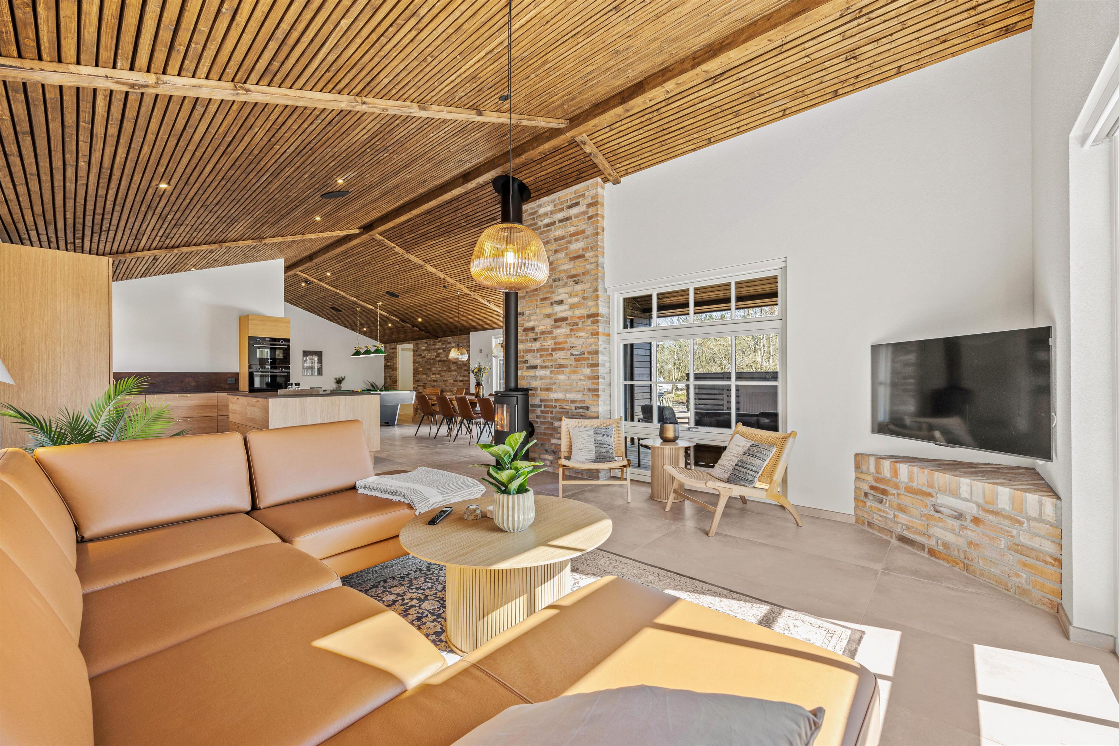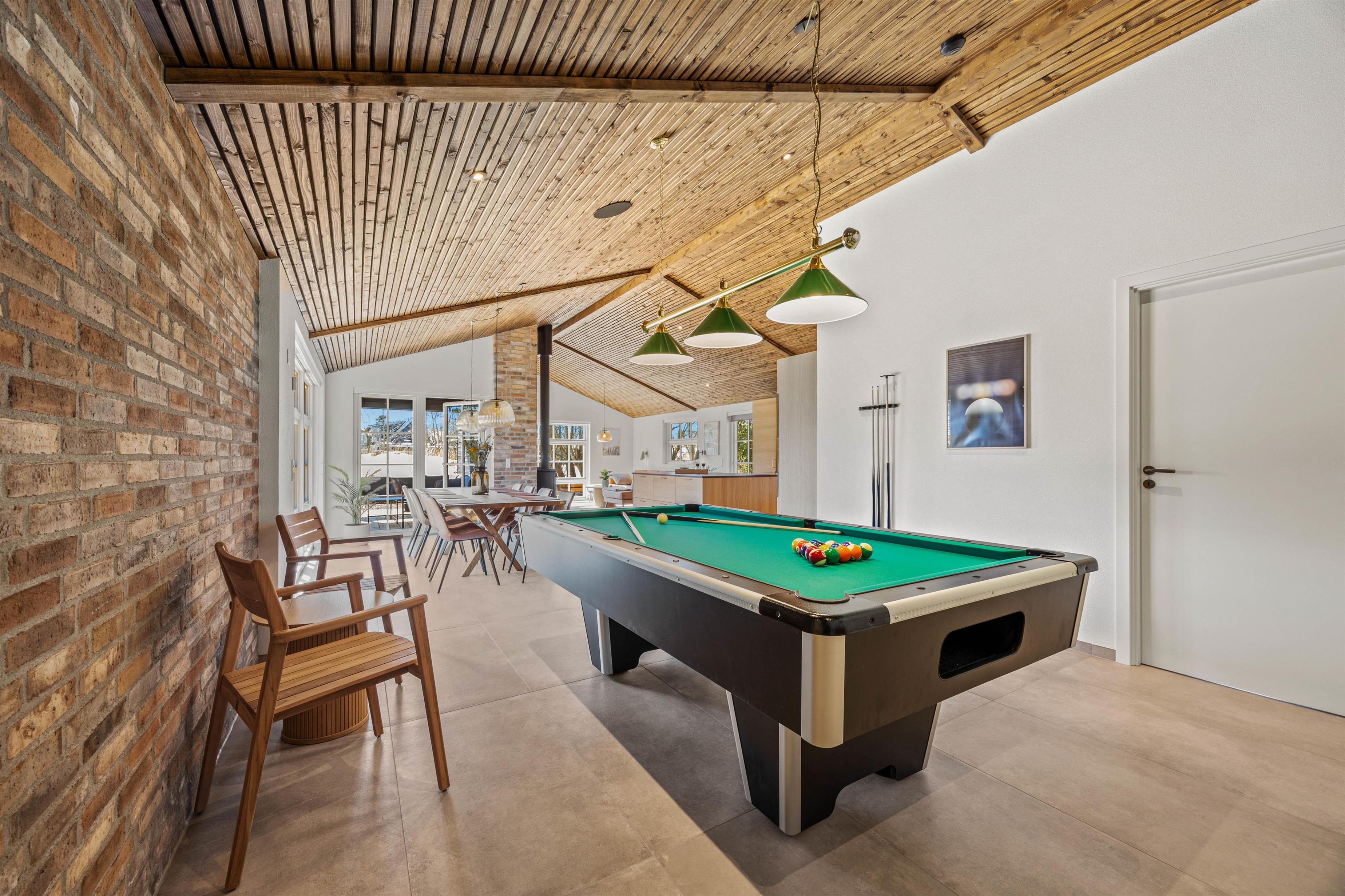 Saunaen er klar til restituerende øjeblikke af velvære, og i aktivitetsrummet byder poolbordet på masser af sjov for dig og dine nærmeste. Skulle I få lyst til at komme ud og nyde den friske, Vestjyske luft kan I med kun 1800 meter til stranden tage på spontane ture til havet, og fornødenheder kan I købe ind i supermarkedet, blot 400 meter væk.
