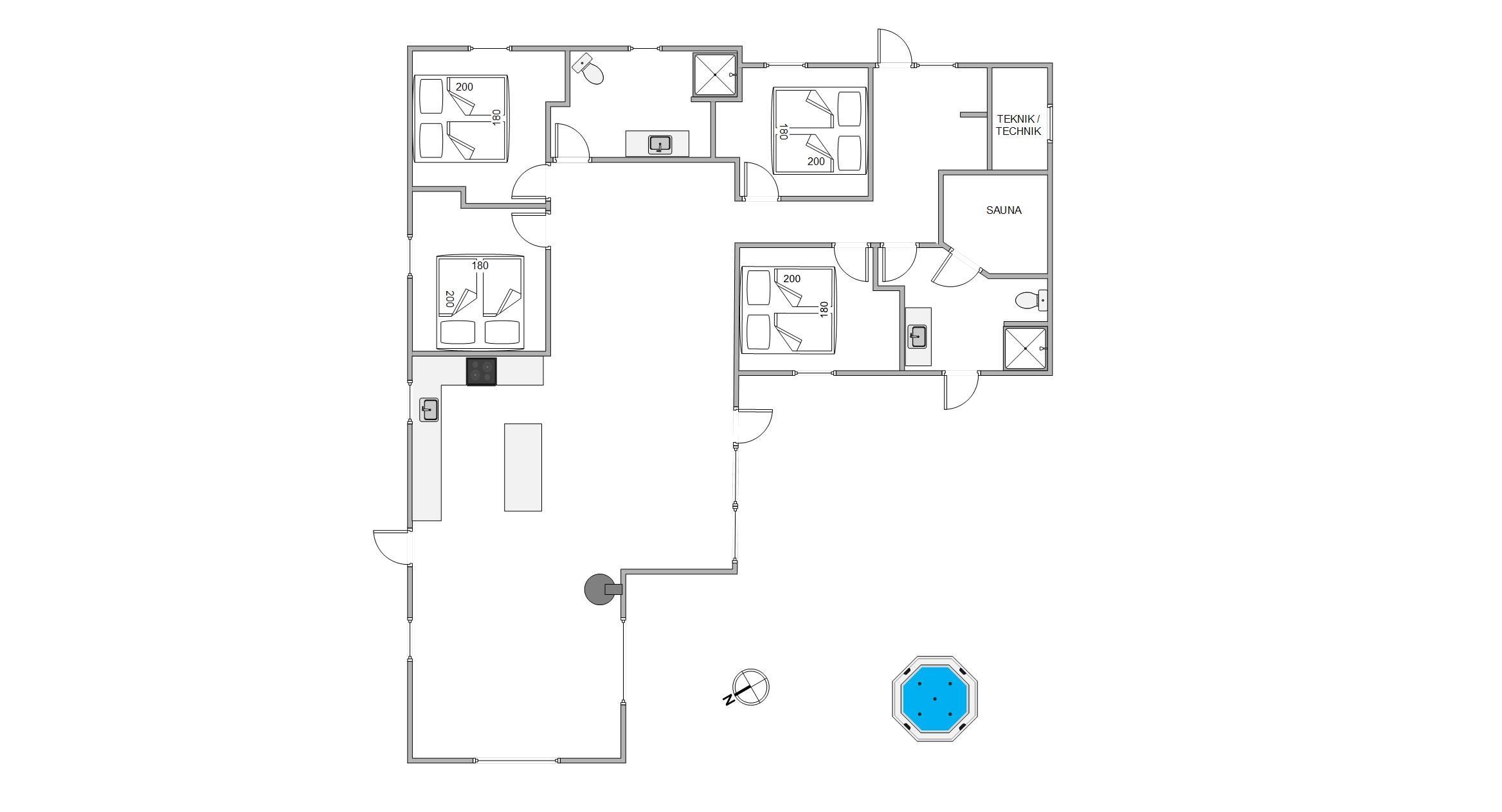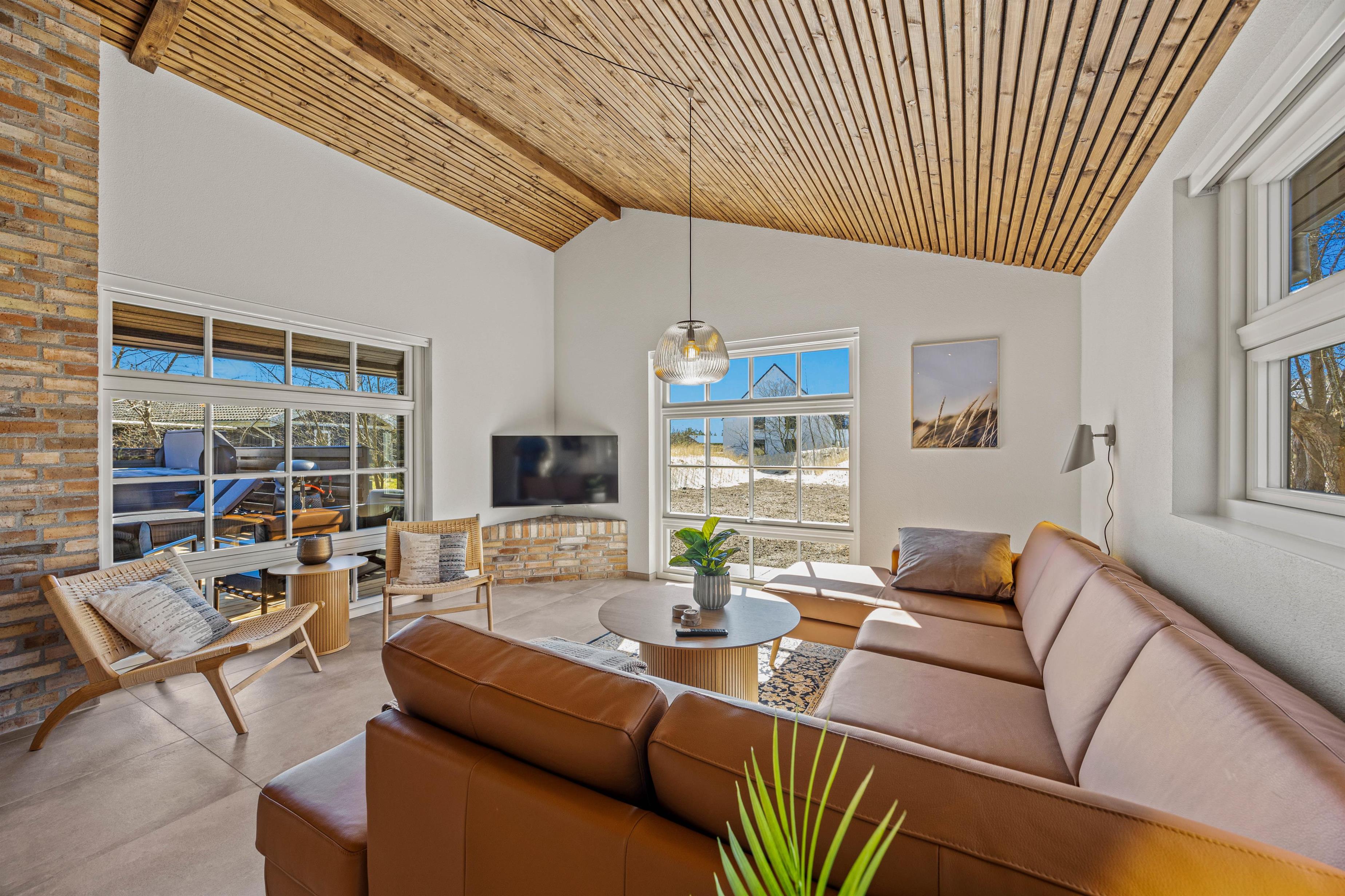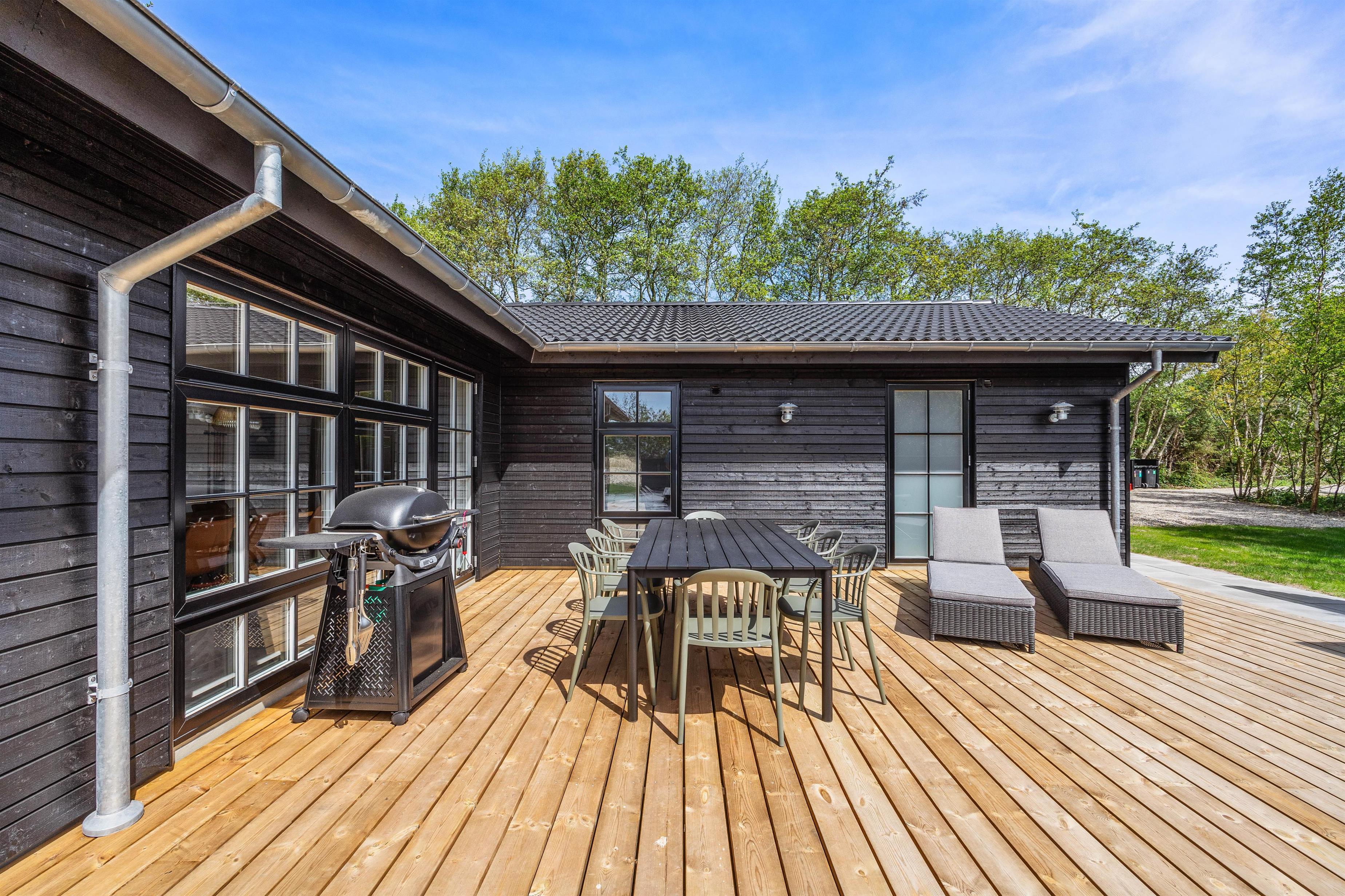 Saunaen er klar til restituerende øjeblikke af velvære, og i aktivitetsrummet byder poolbordet på masser af sjov for dig og dine nærmeste. Skulle I få lyst til at komme ud og nyde den friske, Vestjyske luft kan I med kun 1800 meter til stranden tage på spontane ture til havet, og fornødenheder kan I købe ind i supermarkedet, blot 400 meter væk.