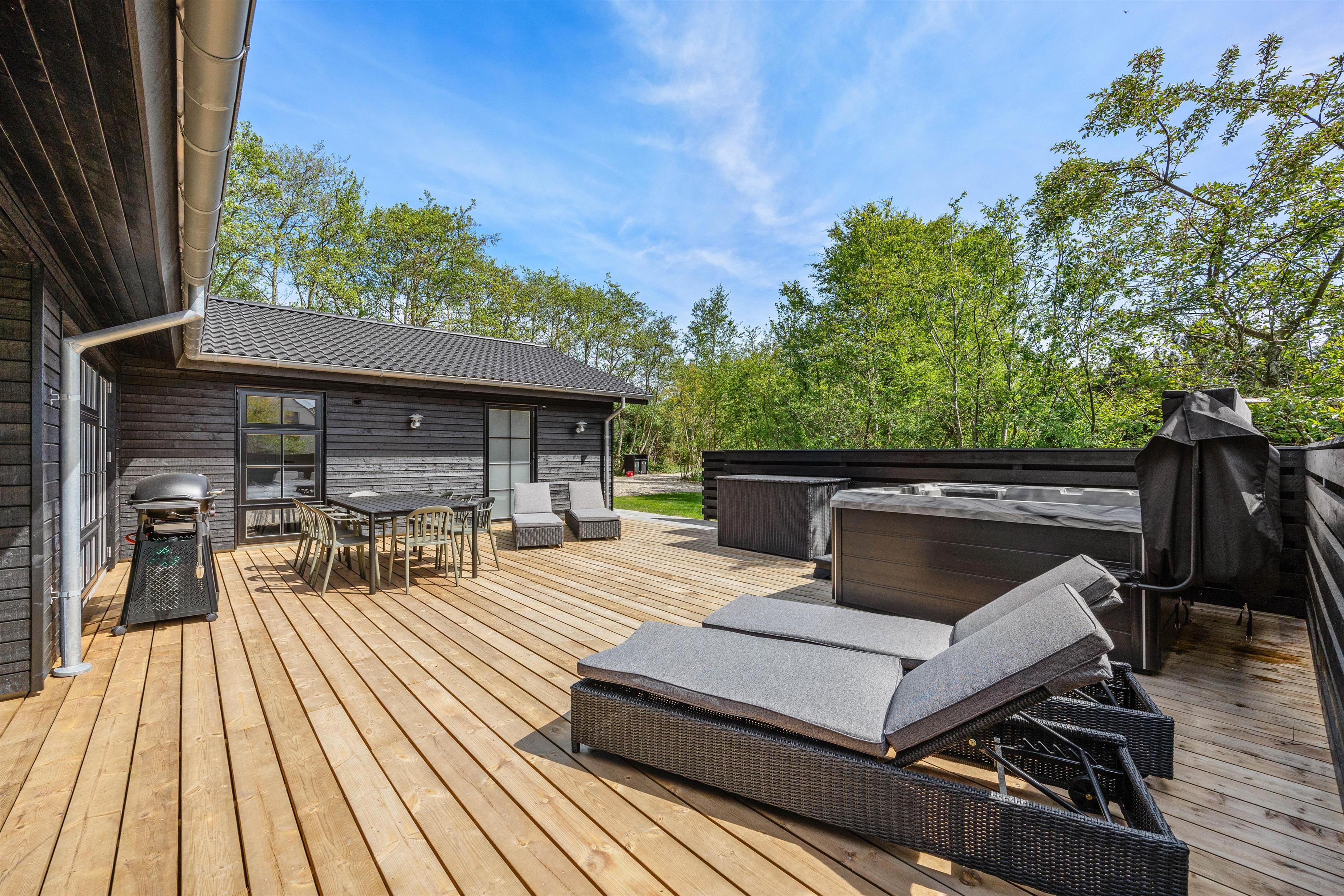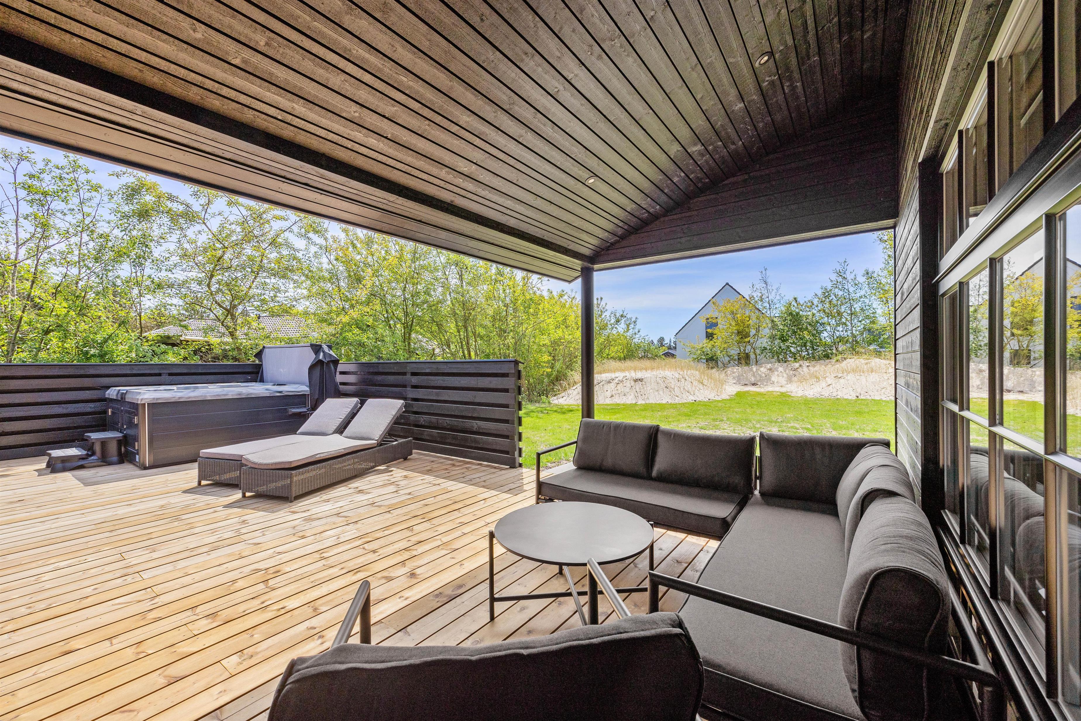Det luksuriøse udendørs spabad sikrer, at du kan få wellnessoplevelser uden lige og komme helt ned i gear i en pause fra alting til indre ro. Nyd solen på terrassen eller hyg dig med familie og venner og få et minderigt ophold.