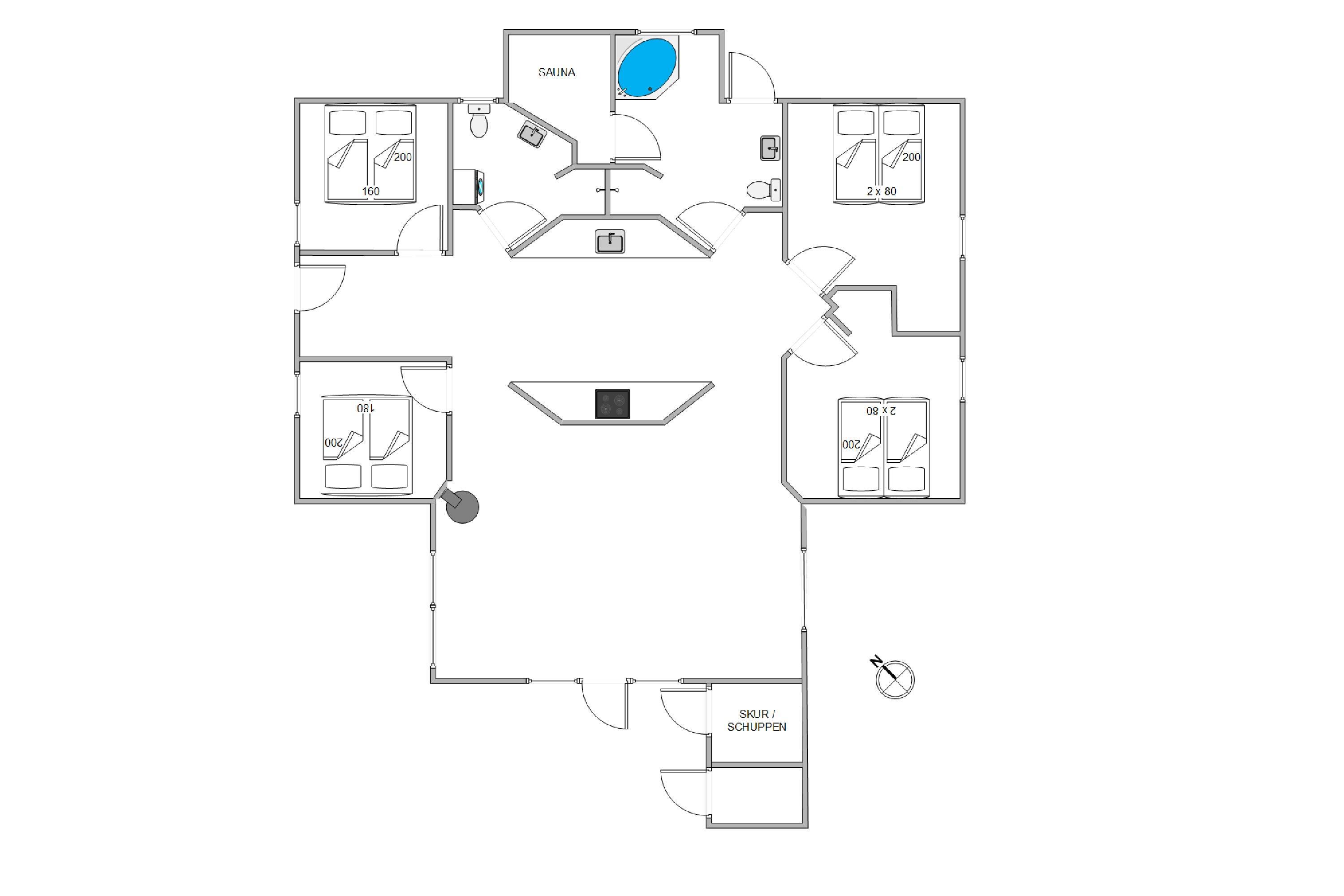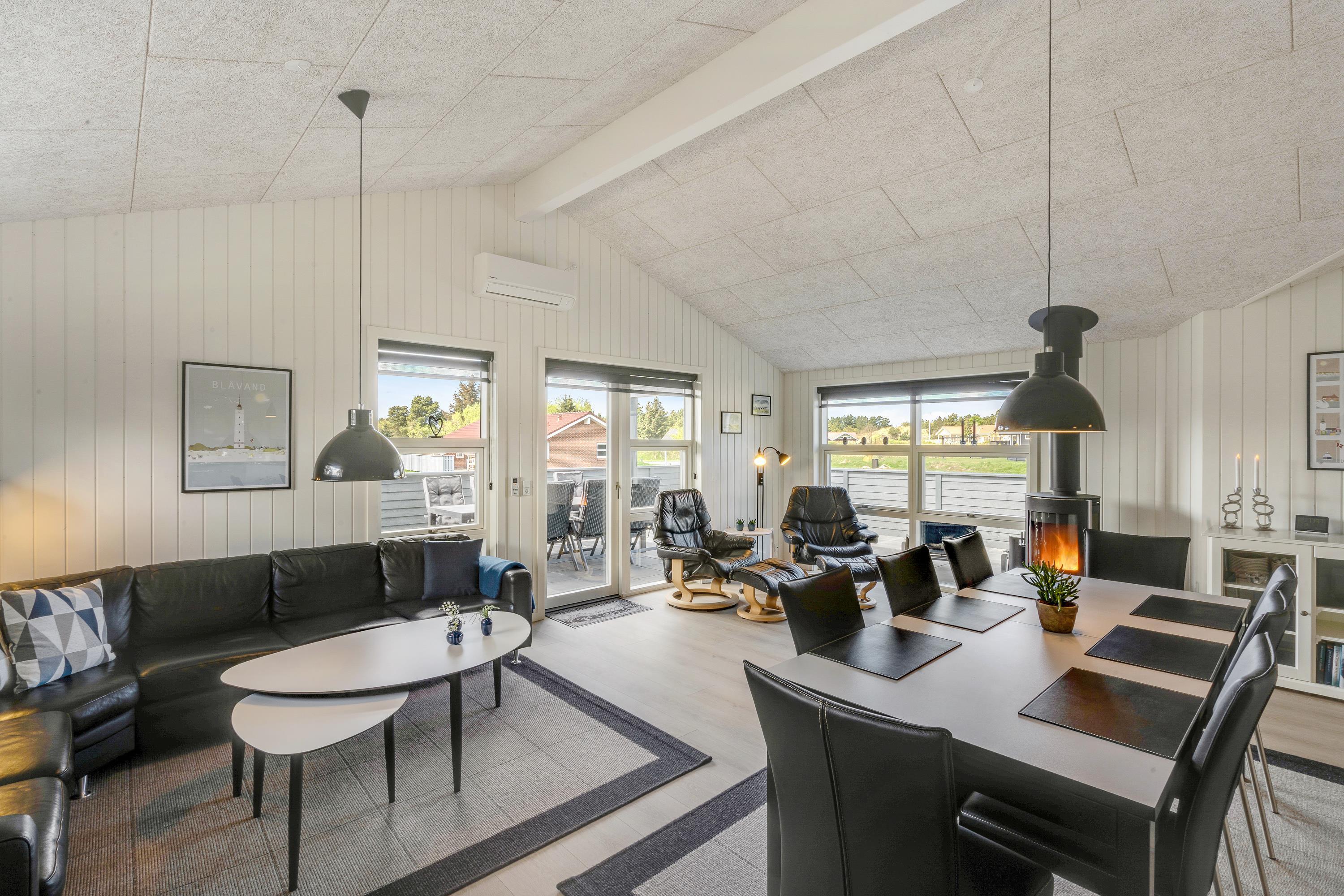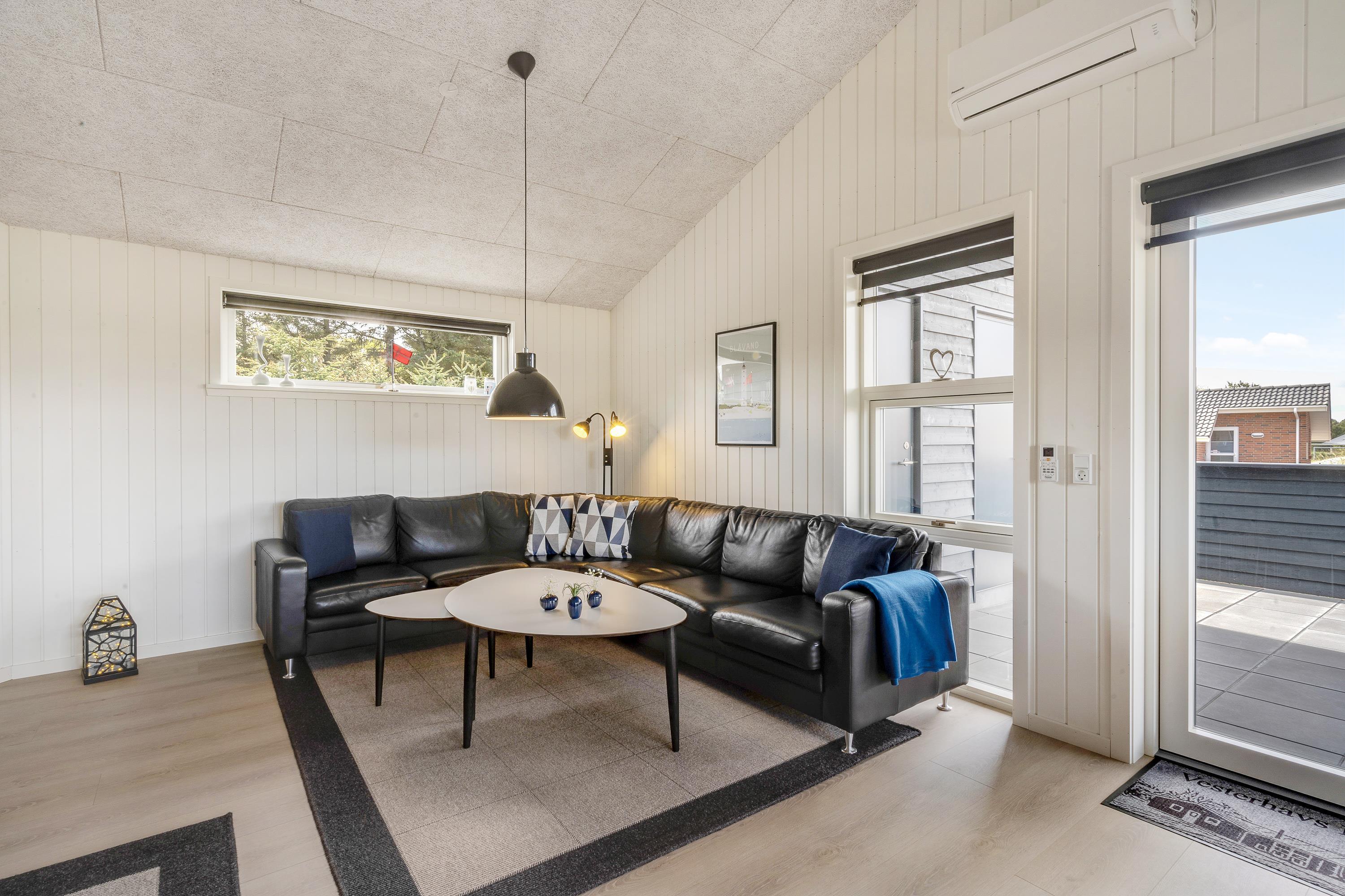 I dette sommerhus i Blåvand er der plads til hele 8 personer, og her er de helt rigtige rammer sat for en luksuriøs ferie med familien eller vennerne. I får ikke kun en stilfuld, moderne indretning med blandt andet sauna og spabad samt et skønt uderum med alsidige terrassemuligheder – I får også en super beliggenhed kun 5 minutters gang fra Blåvands centrum.