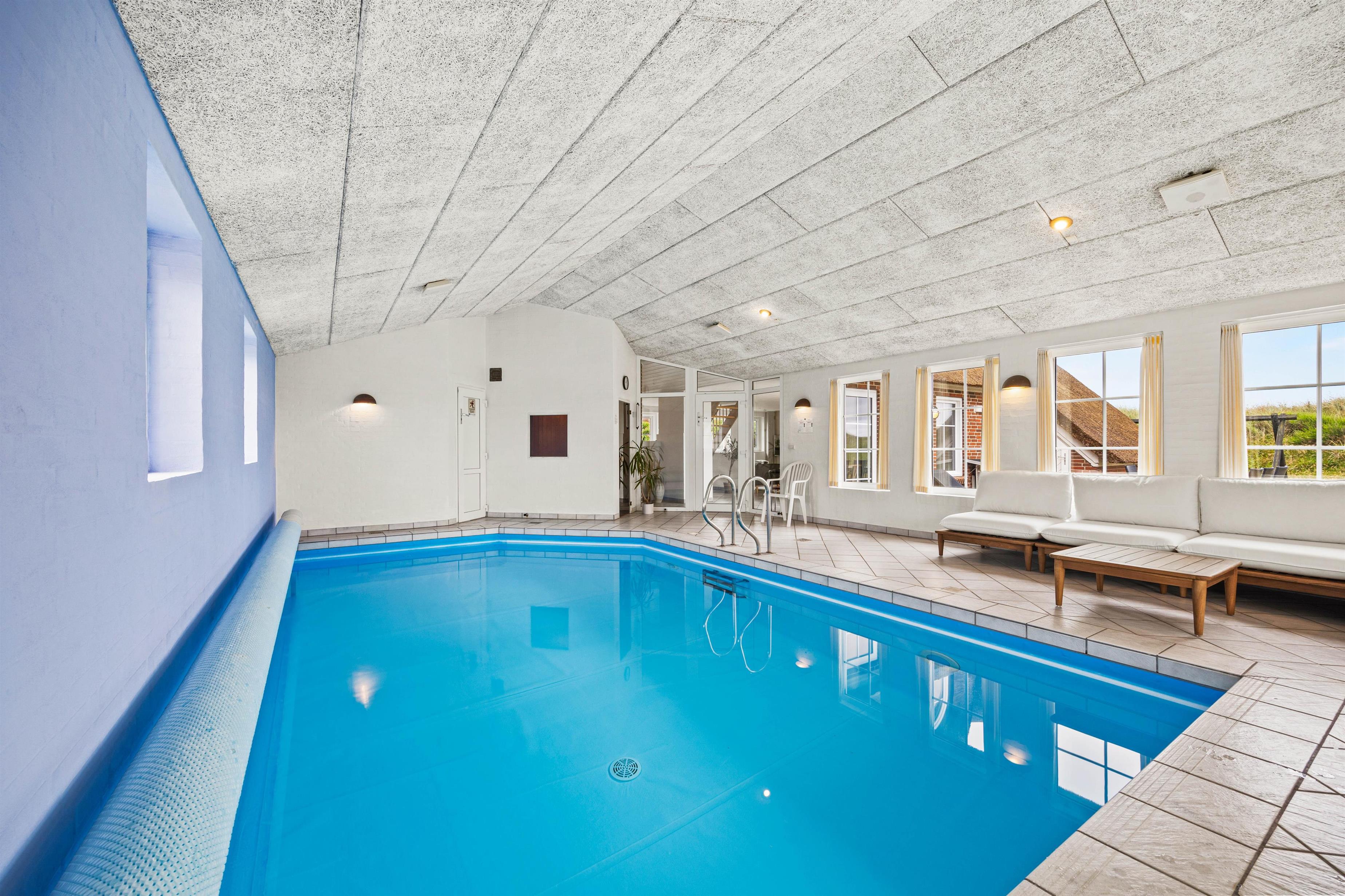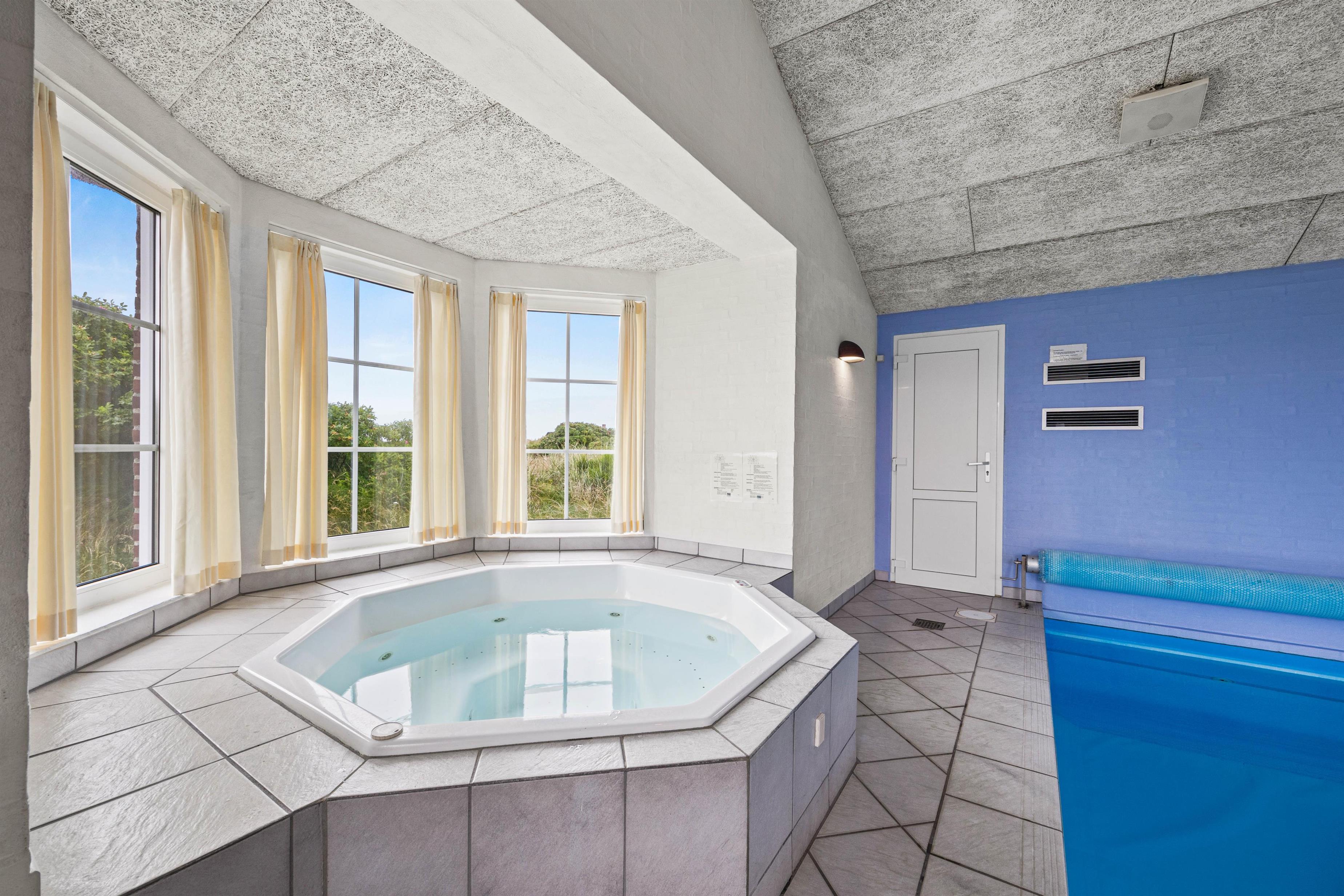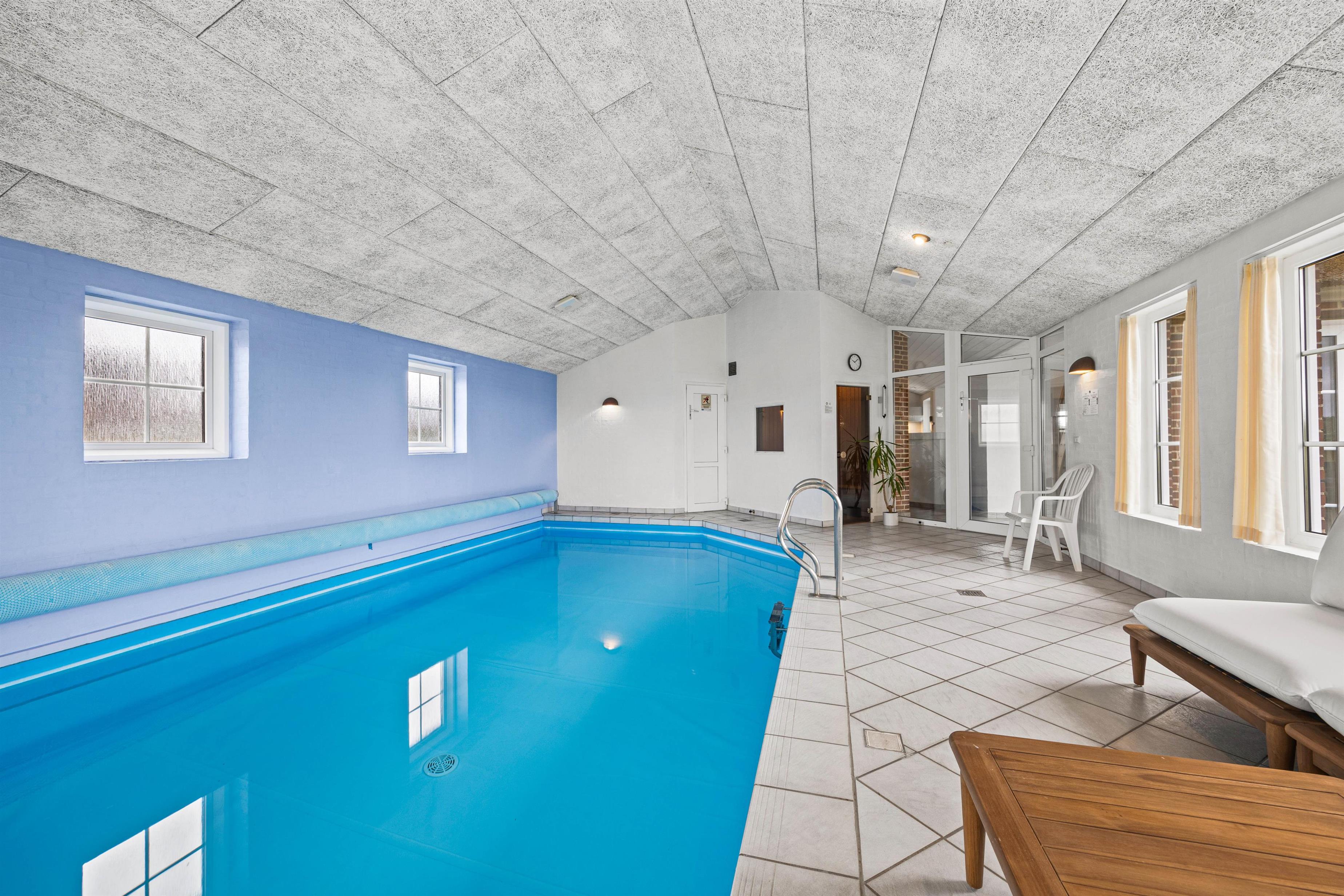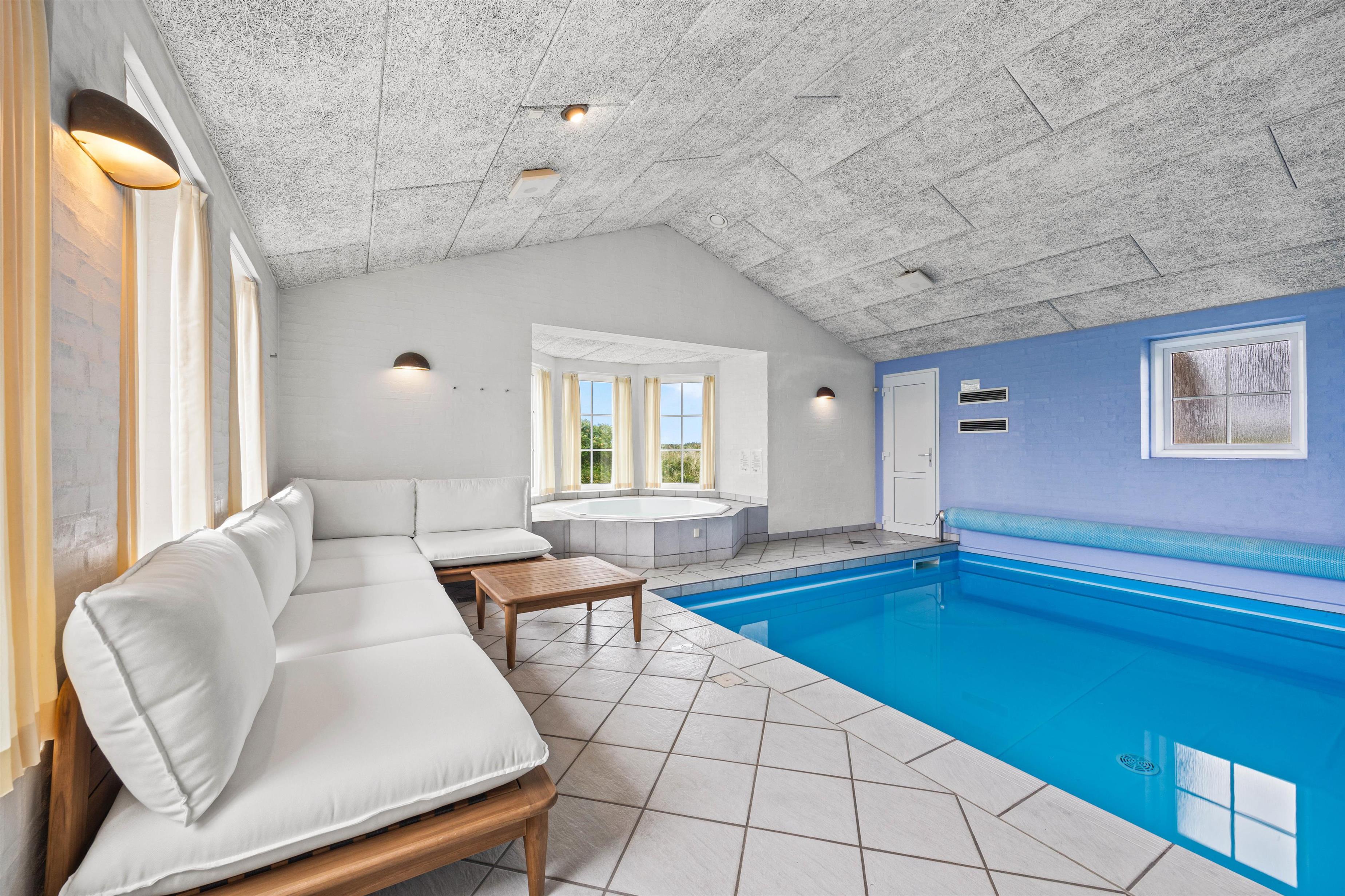 Stor poolafdeling med swimmingpool, spa og sauna