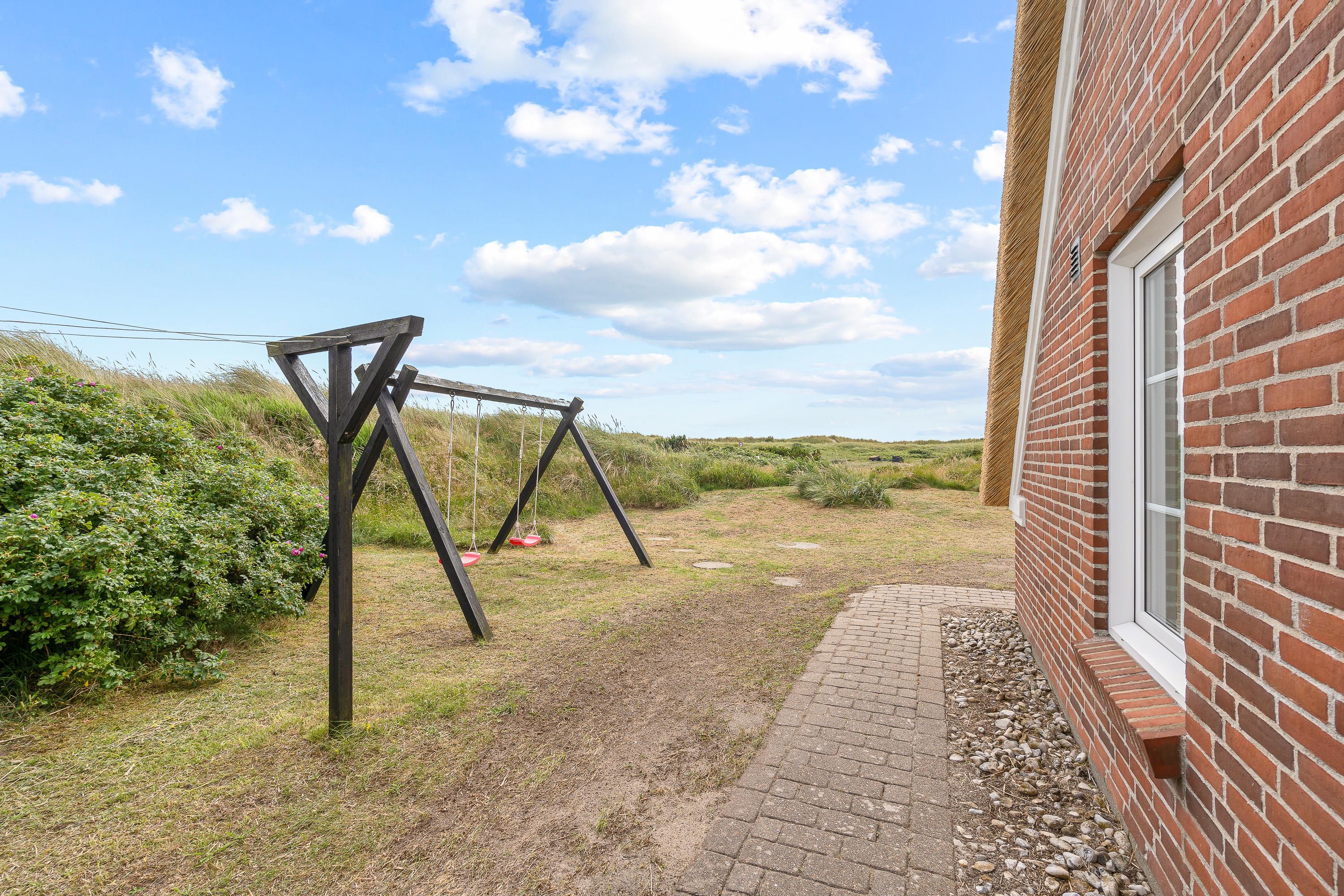 Til familiens mindste er der både en sandkasse og en gynge, som de kan få glæde af i godt vejr.