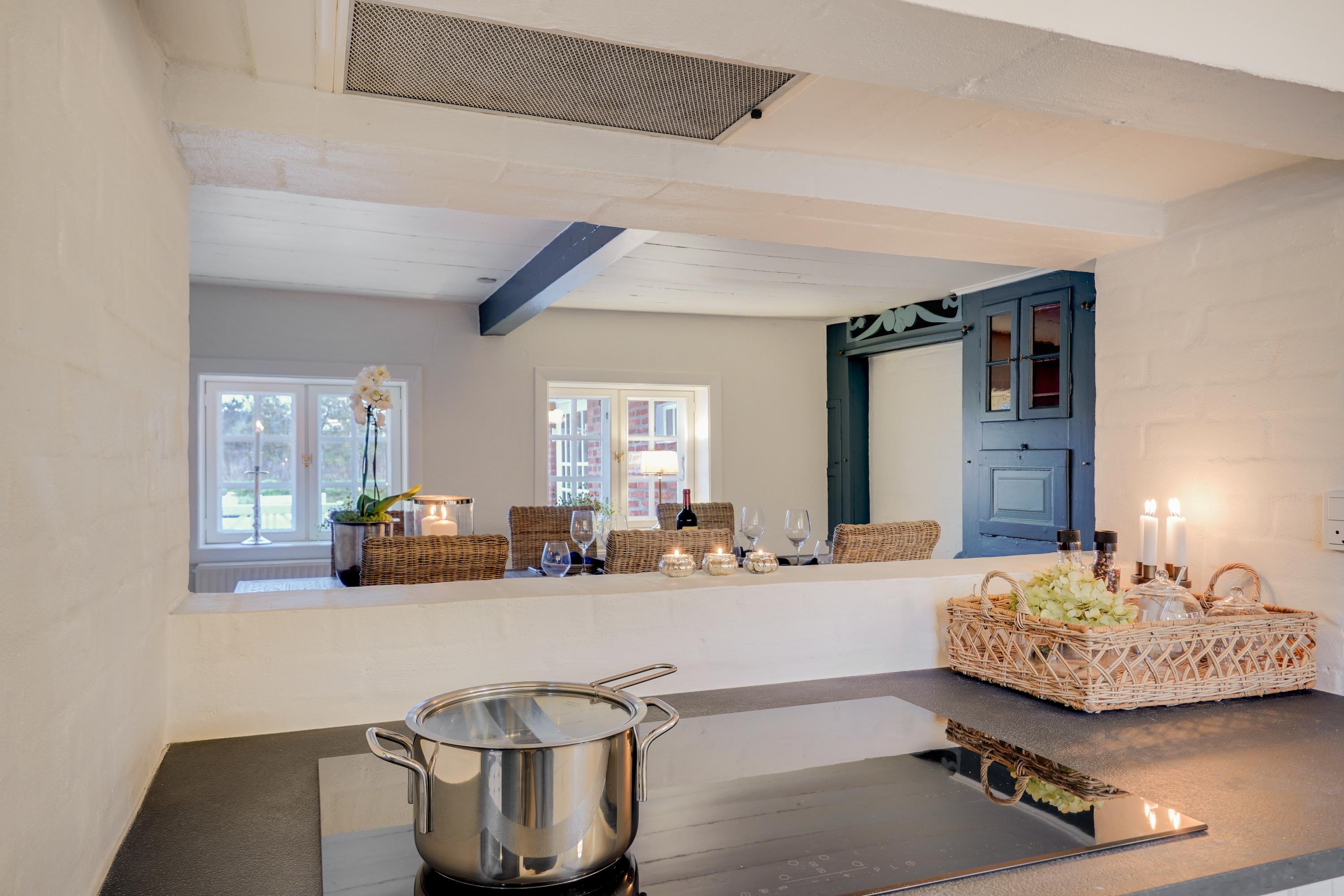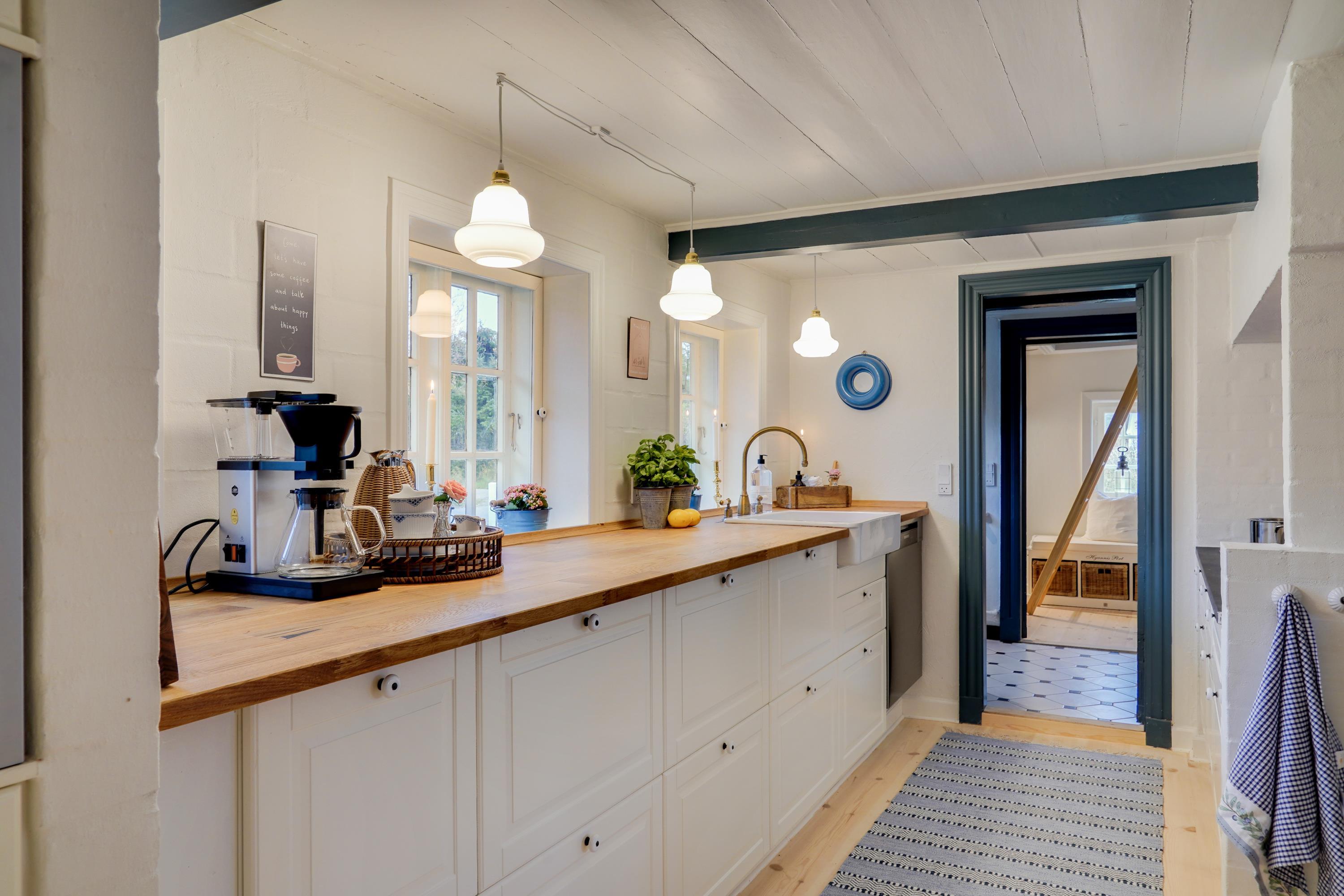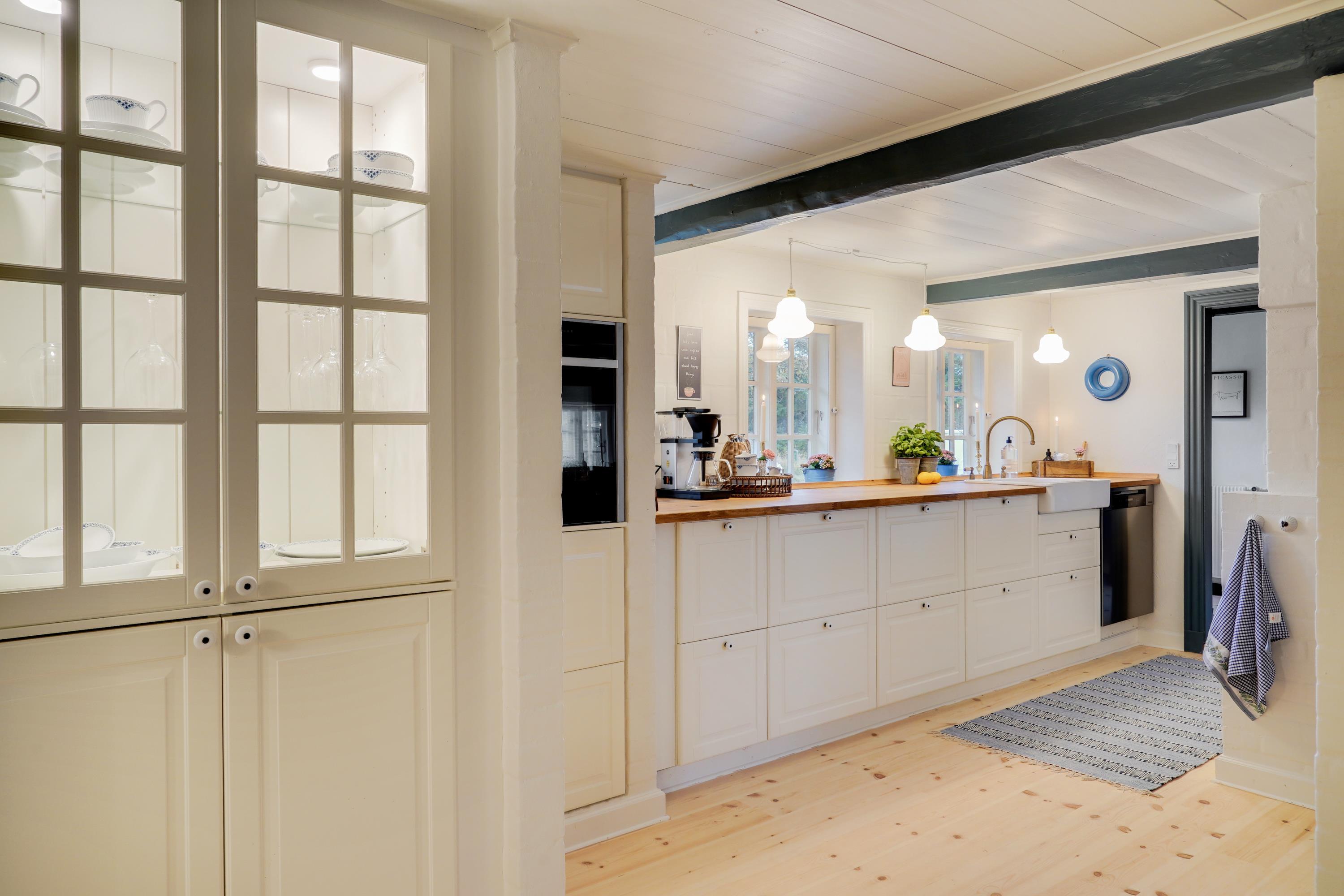 Overalt i huset kan man fornemme feriehusets sjæl og se fine spor af dets tidligere præg. Køkkenet er udstyret med moderne bekvemmeligheder som bl.a. to vinkøleskabe, en større induktionskogeplade, opvaskemaskine og en 200 liters fryser, så I har god plads til jeres indkøb.