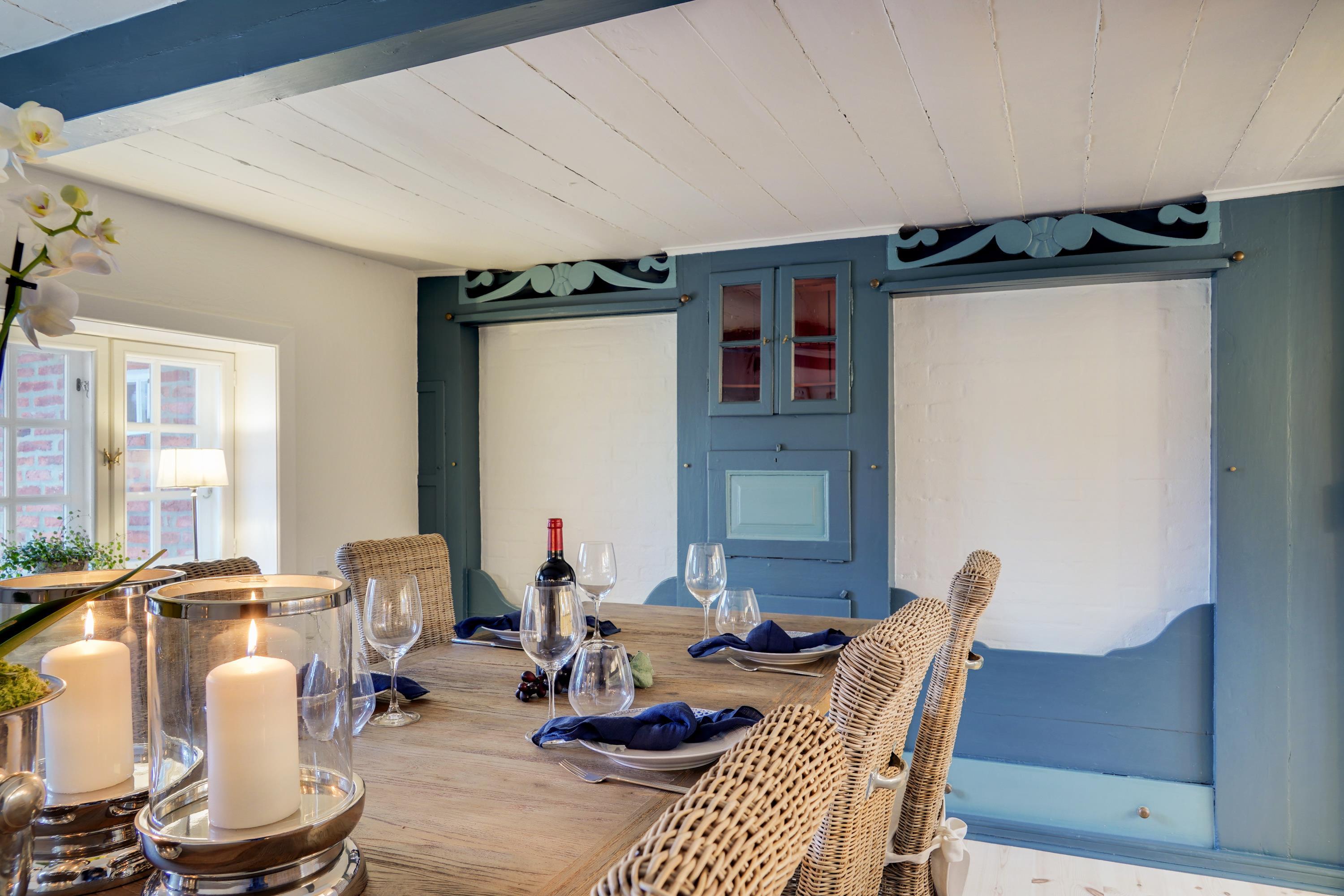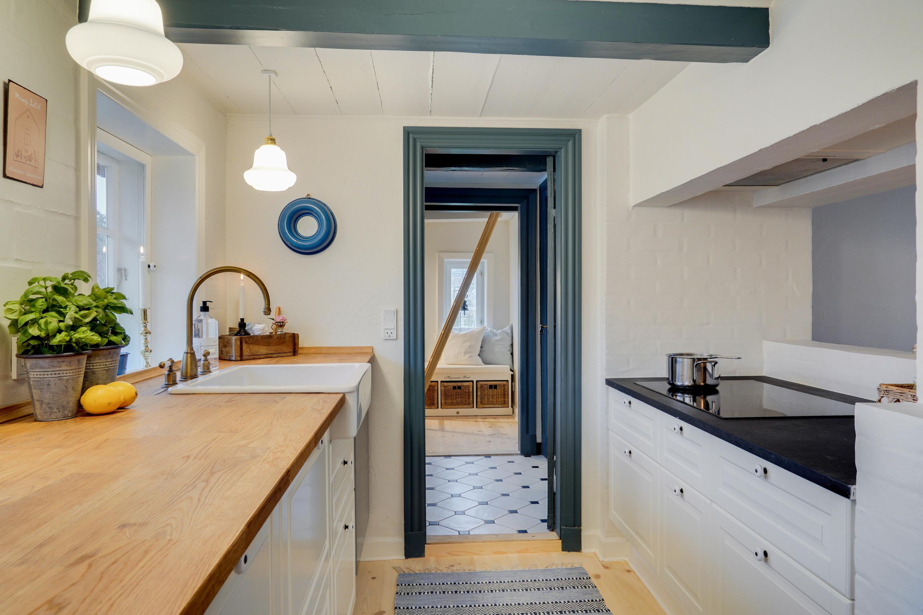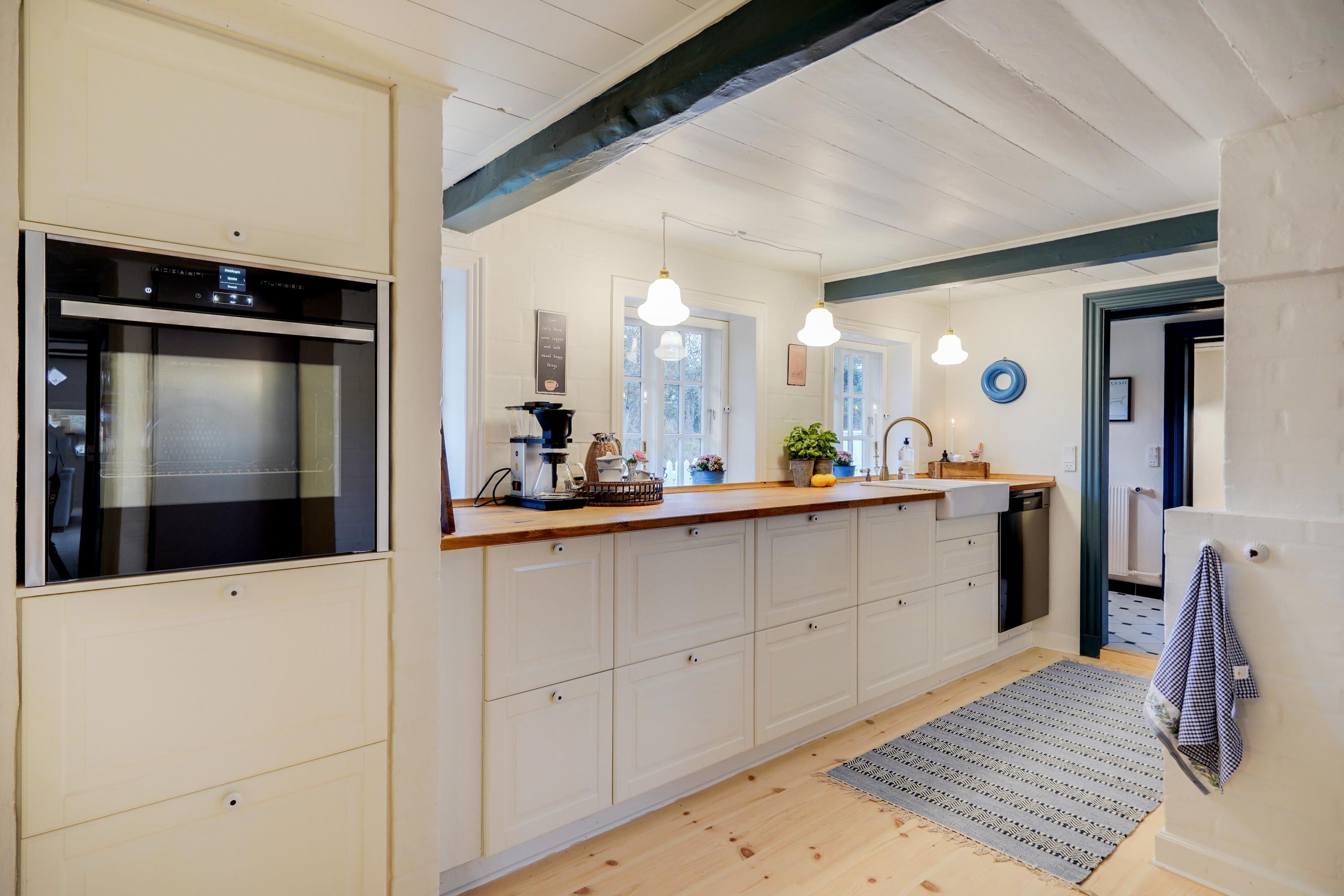 Overalt i huset kan man fornemme feriehusets sjæl og se fine spor af dets tidligere præg. Køkkenet er udstyret med moderne bekvemmeligheder som bl.a. to vinkøleskabe, en større induktionskogeplade, opvaskemaskine og en 200 liters fryser, så I har god plads til jeres indkøb.
