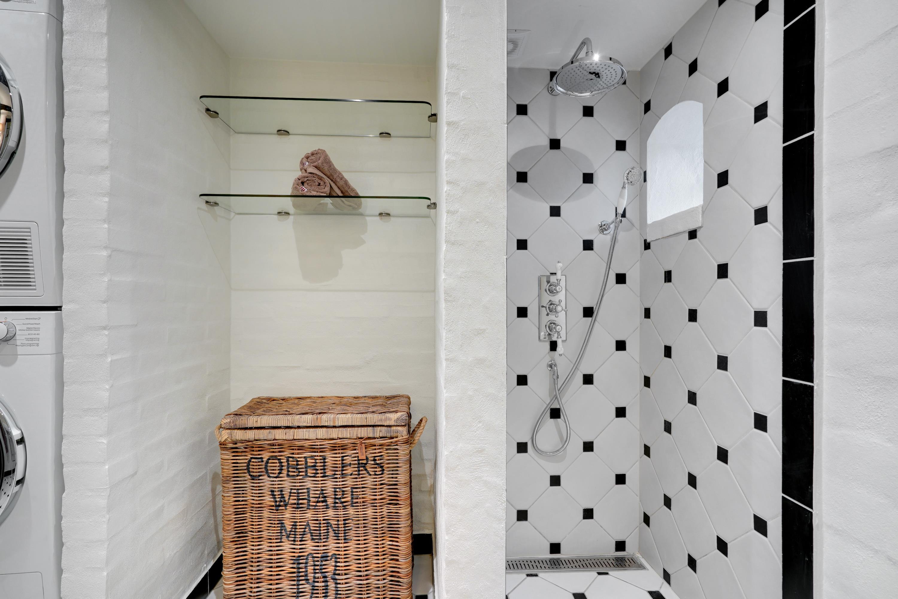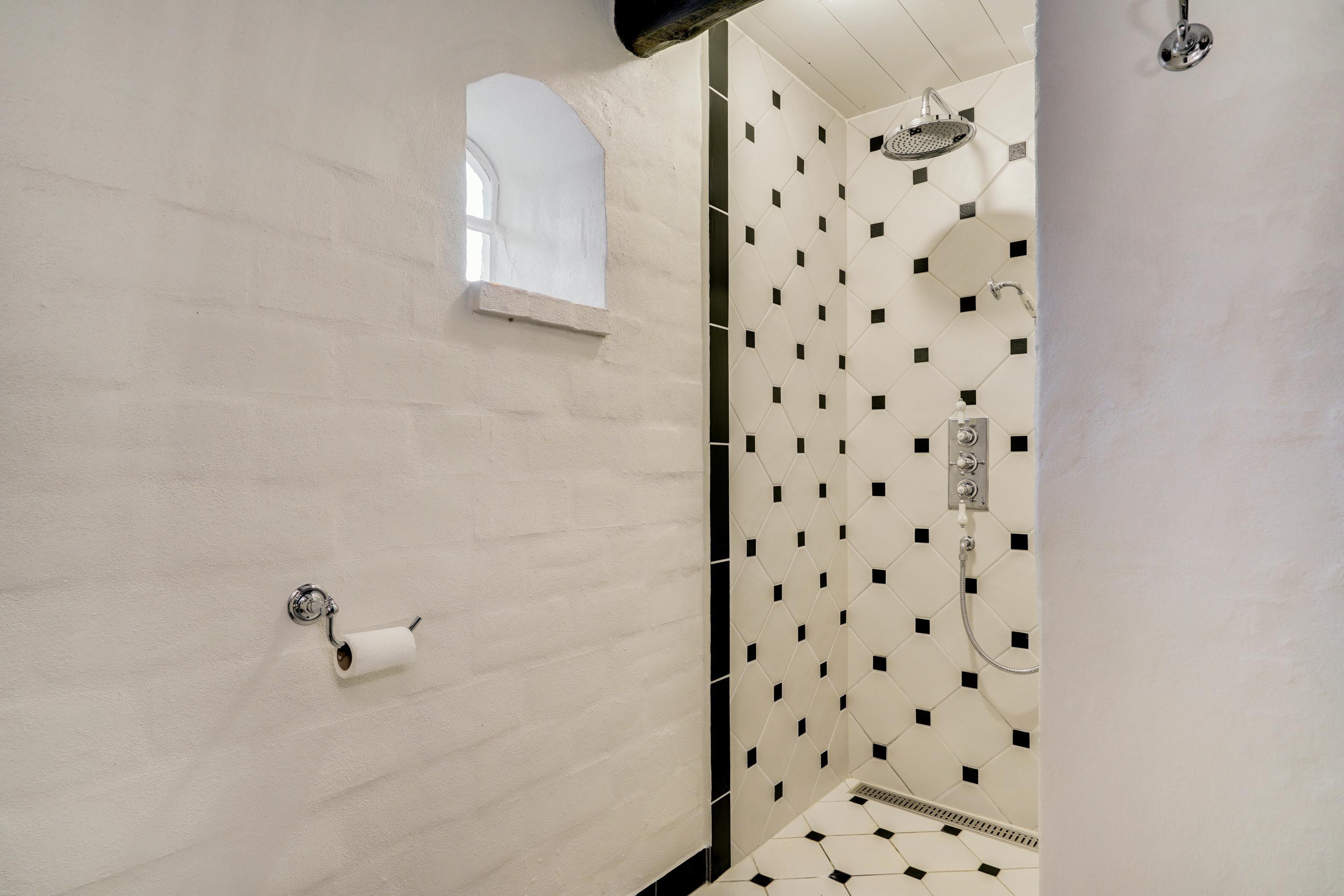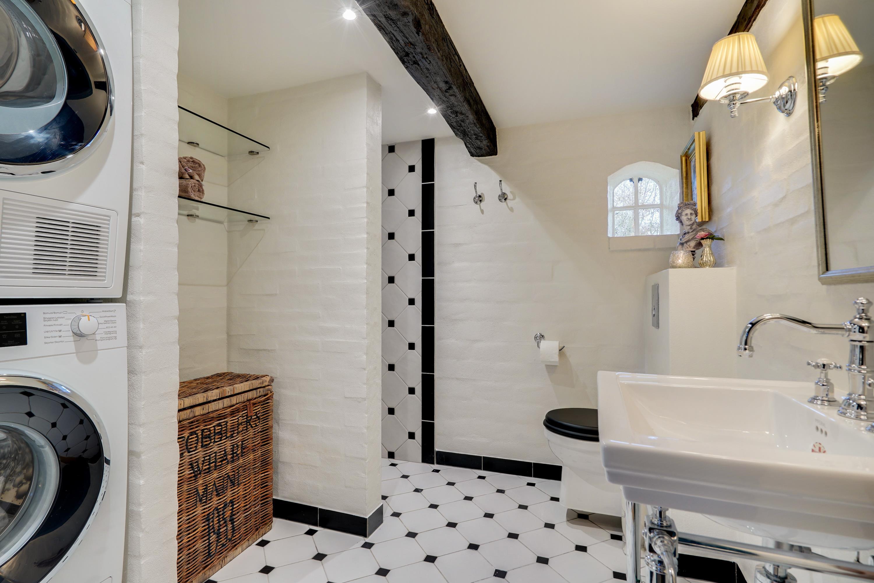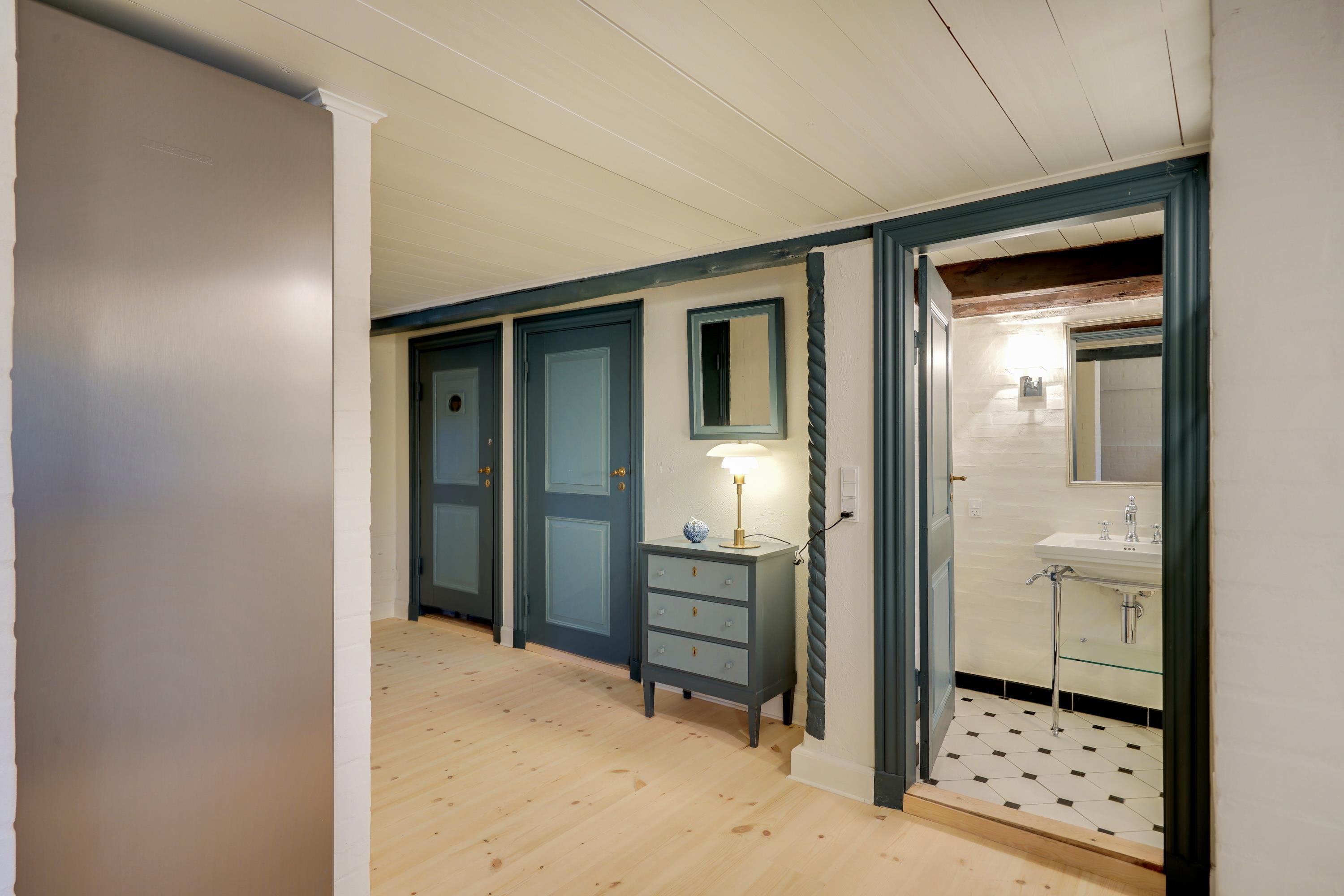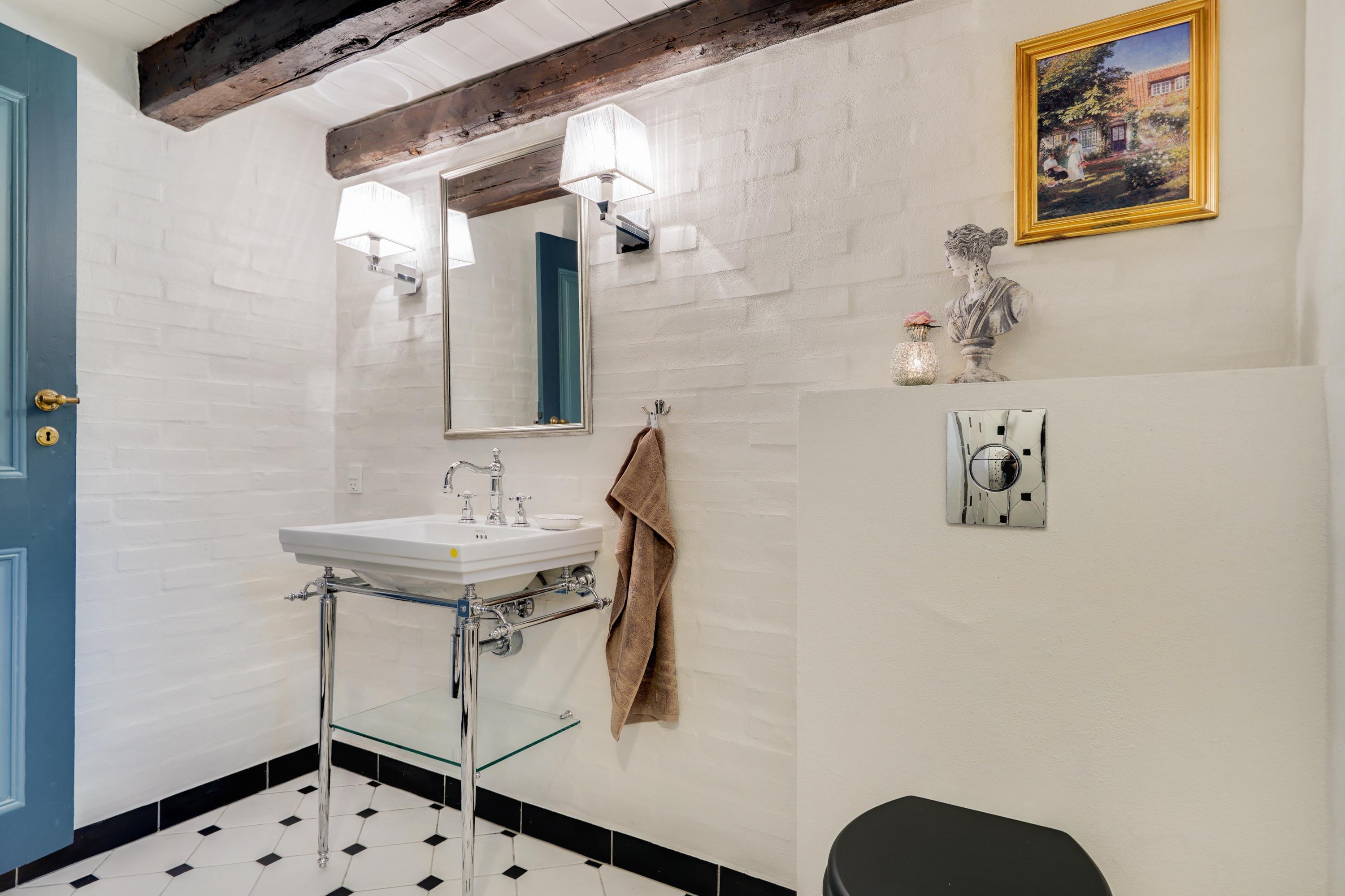 De to flotte badeværelser med gulvvarme gør morgenrutinen til en fornøjelse, og på det ene finder I både vaskemaskine og tørretumbler. Badeværelserne er renoveret med respekt for husets oprindelige stil, så der er en naturlig sammenhæng i hele huset.