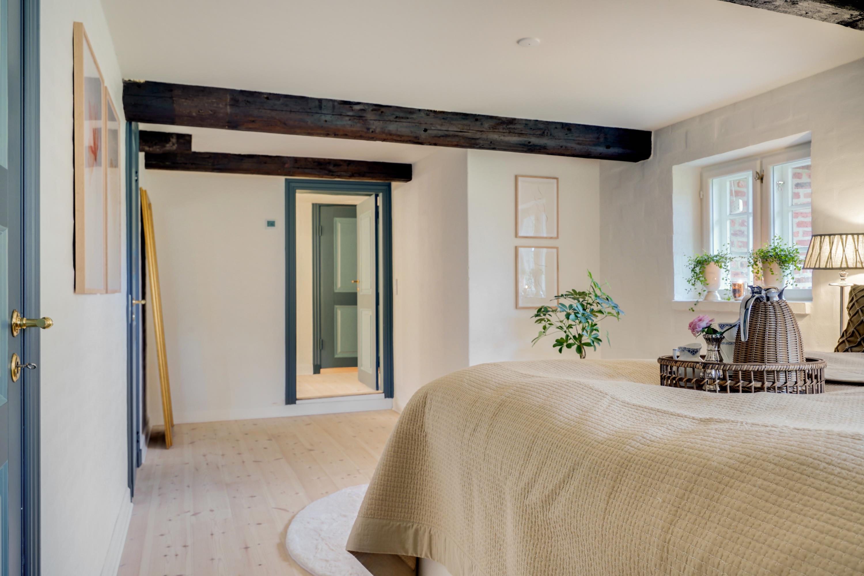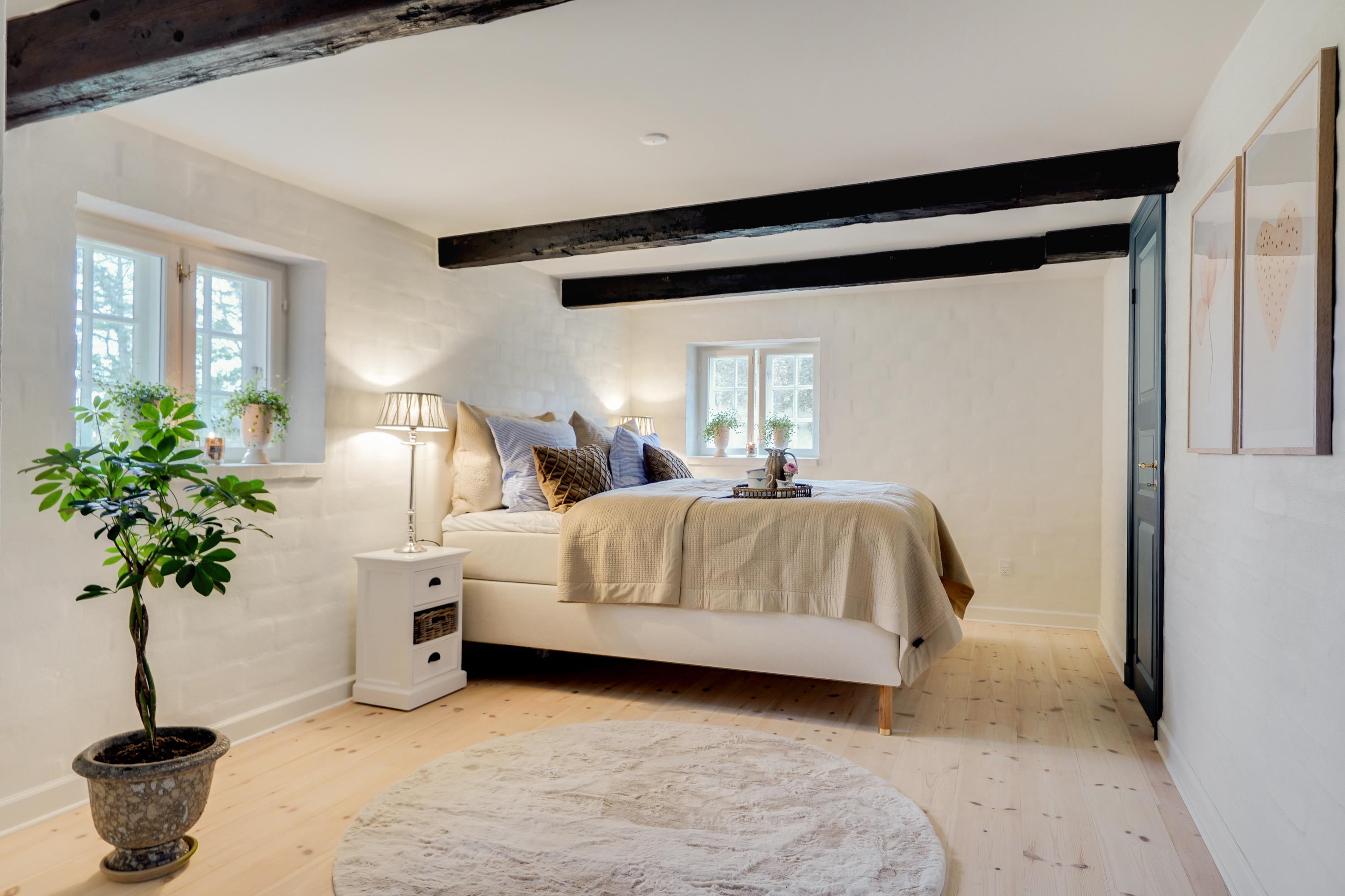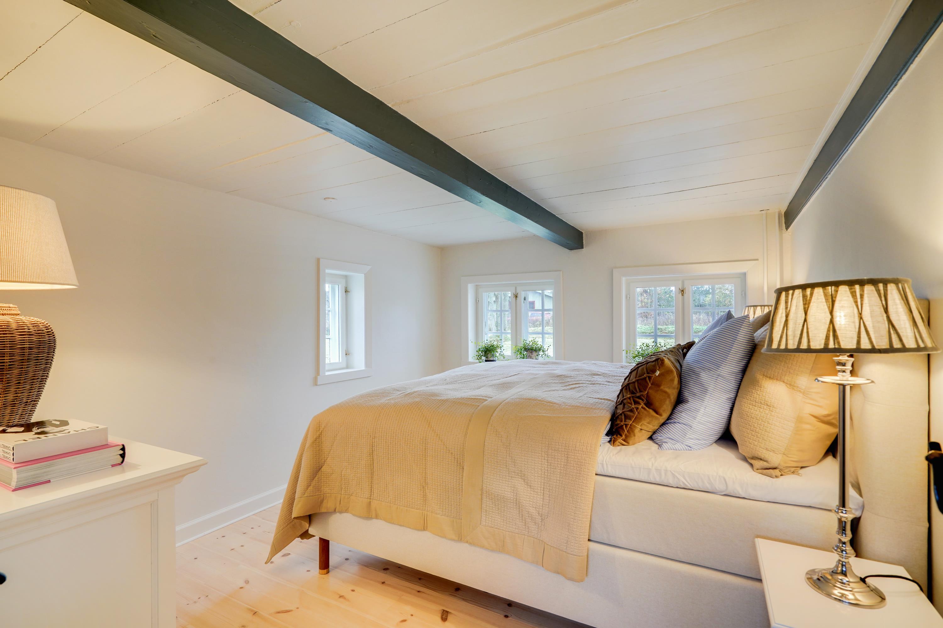 De luksuriøst og smagfuldt indrettede soveværelser med komfortable dobbeltsenge giver ro og hvile, og huset byder også på et walk-in-closet, så I kan indrette jer optimalt under ferien.