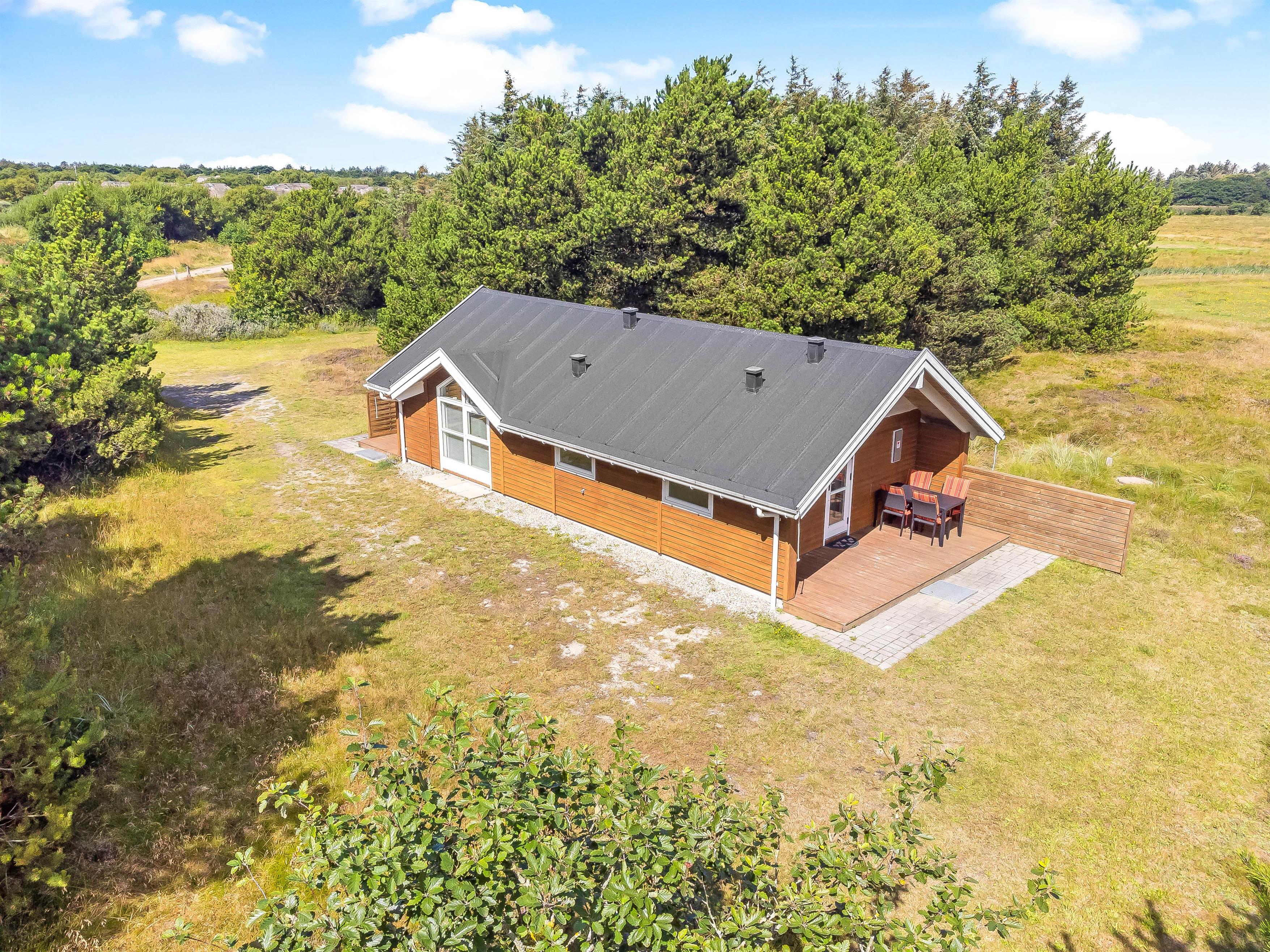 Kun 400 meter fra Vesterhavet står dette hyggelige og lyse sommerhus klar til en ferie for op til 4 personer – et oplagt feriehus for parret eller den lille familie. I sommerhuset på Mærsk Vase 1 kan I holde en afslappede ferie i skønne omgivelser, som I kan nyde fra sommerhusets terrasser og store udeområde.