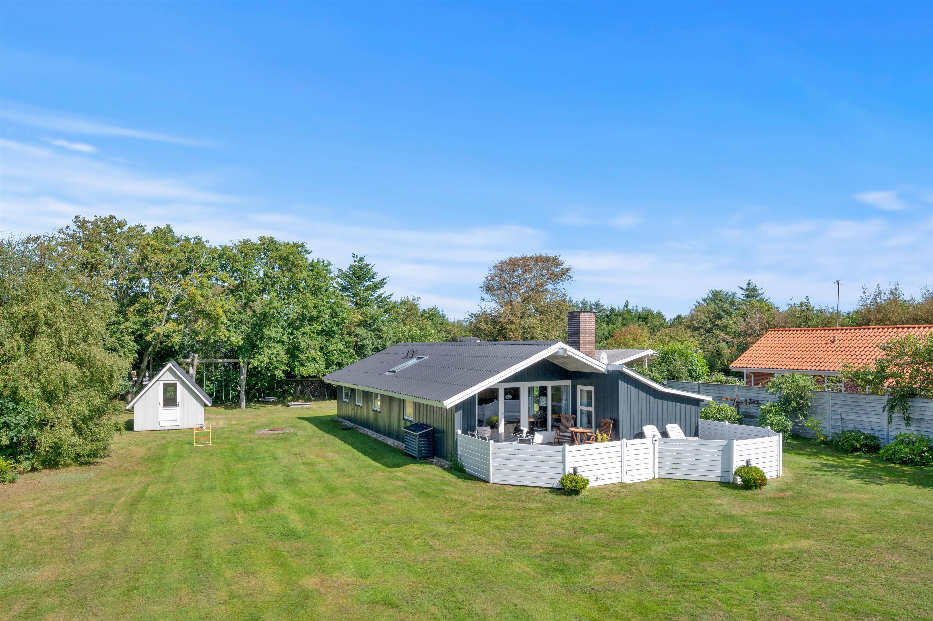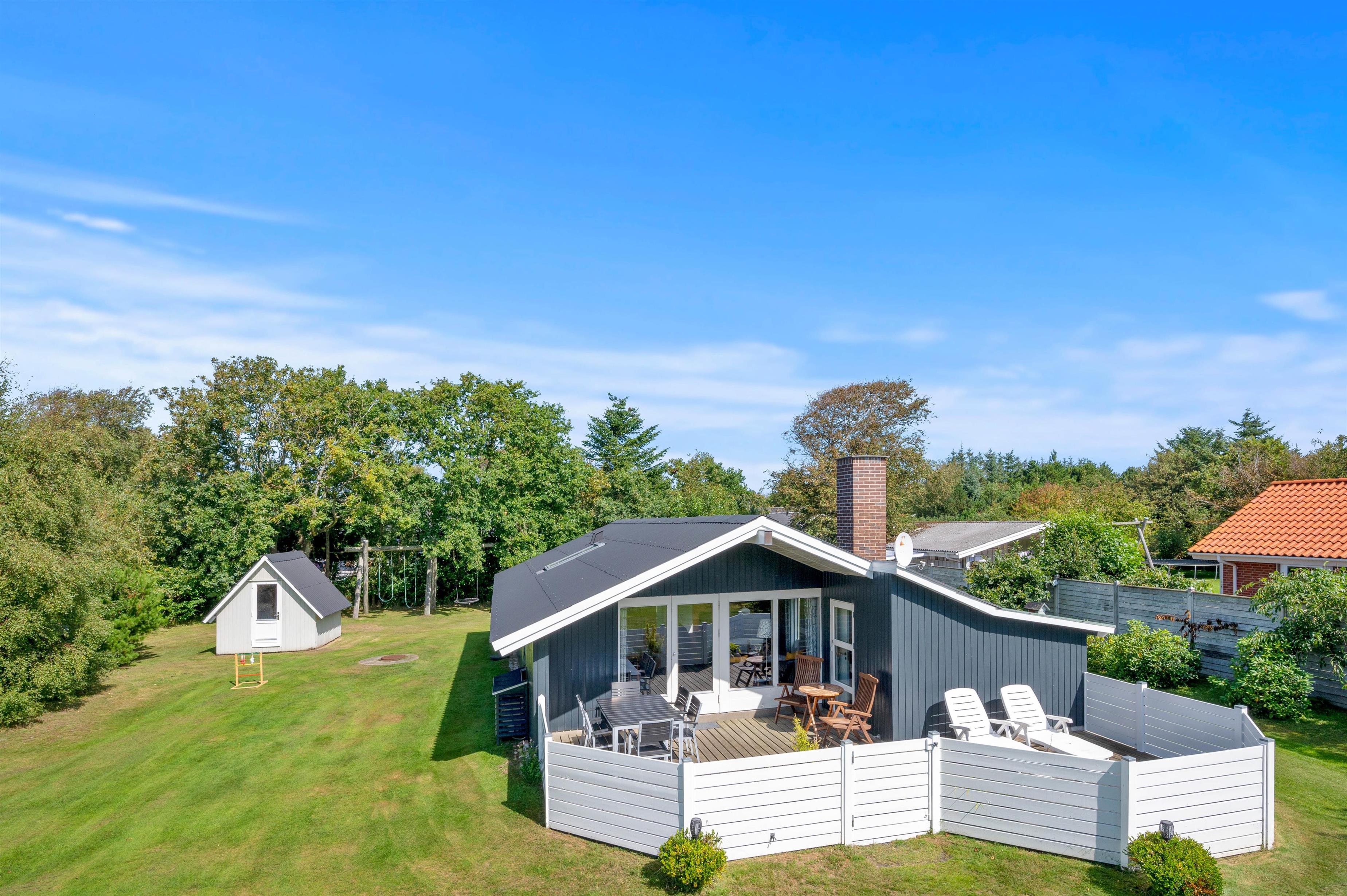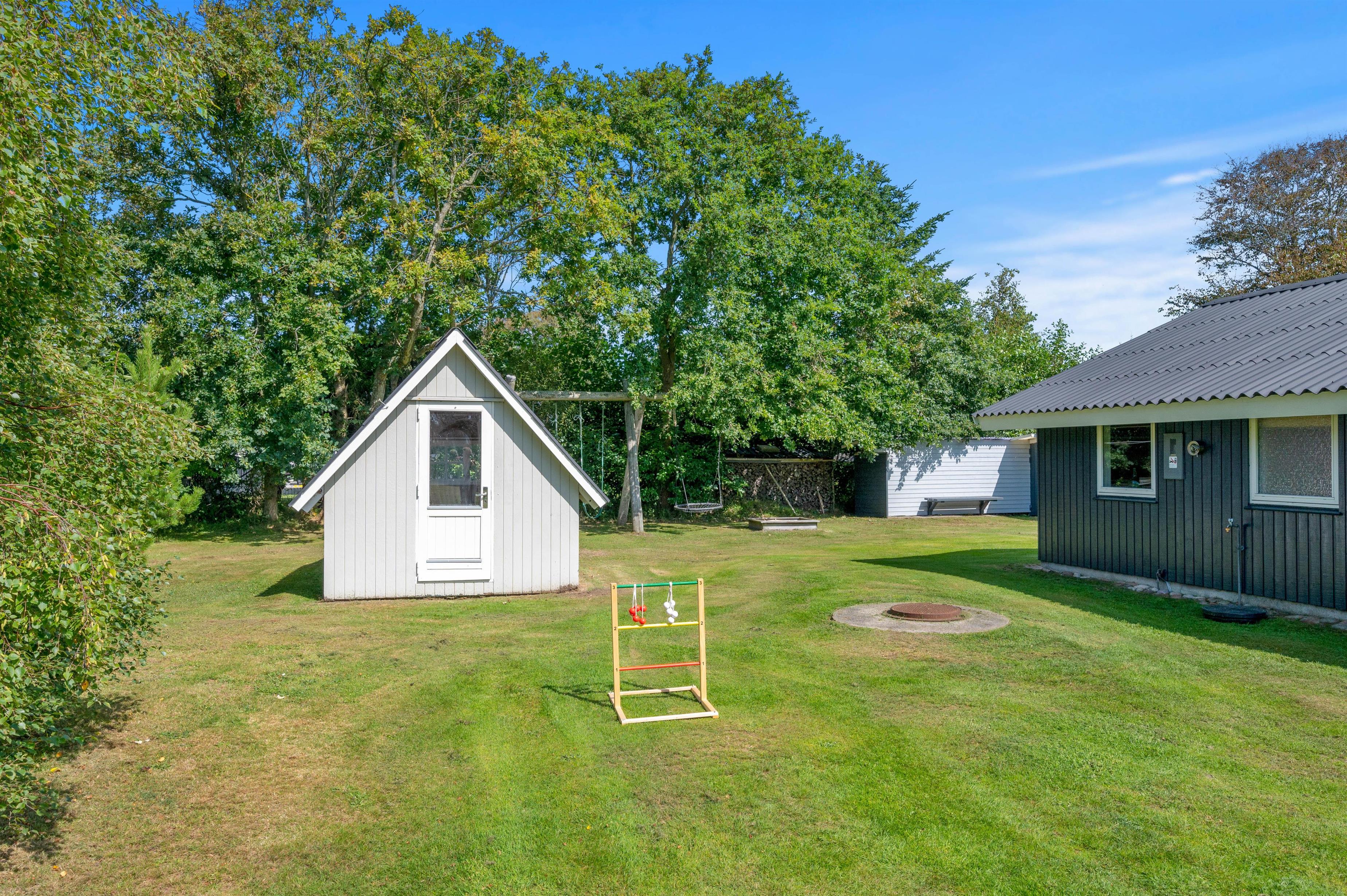 På terrassen har I havemøbler og liggestole til rådighed, så I kan sætte jer godt til rette på en god plads i solen. Imens kan børnene lege i haven, hvor der står en sandkasse og et gyngestativ klar til dem.