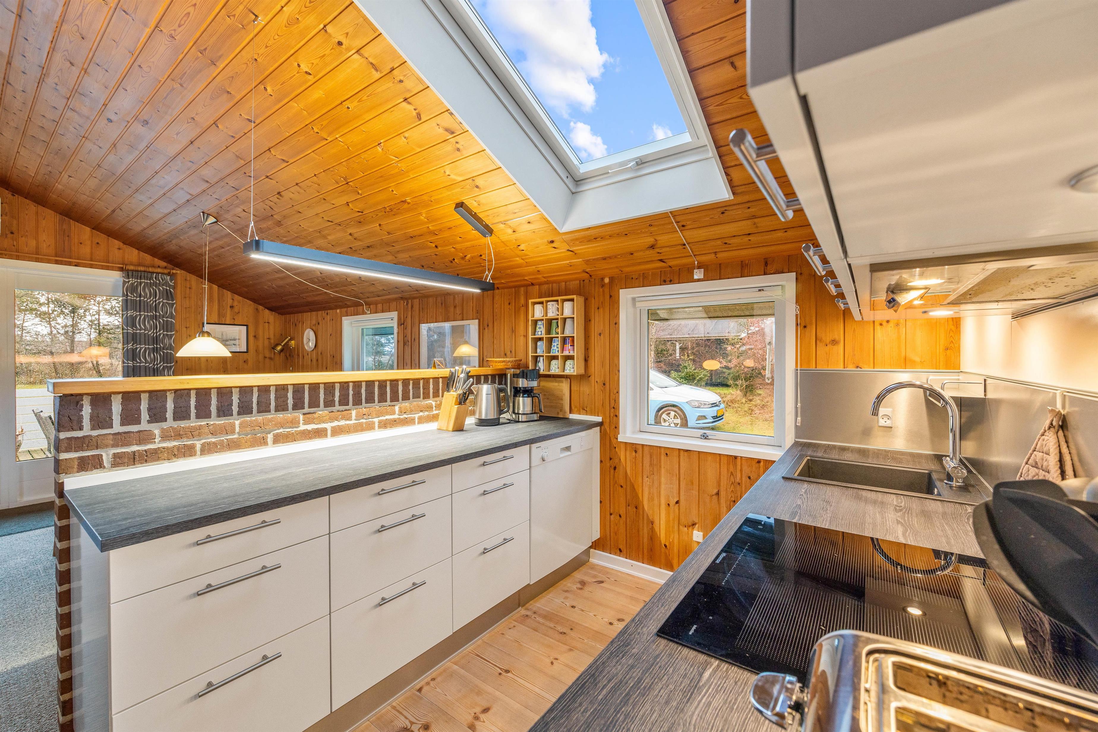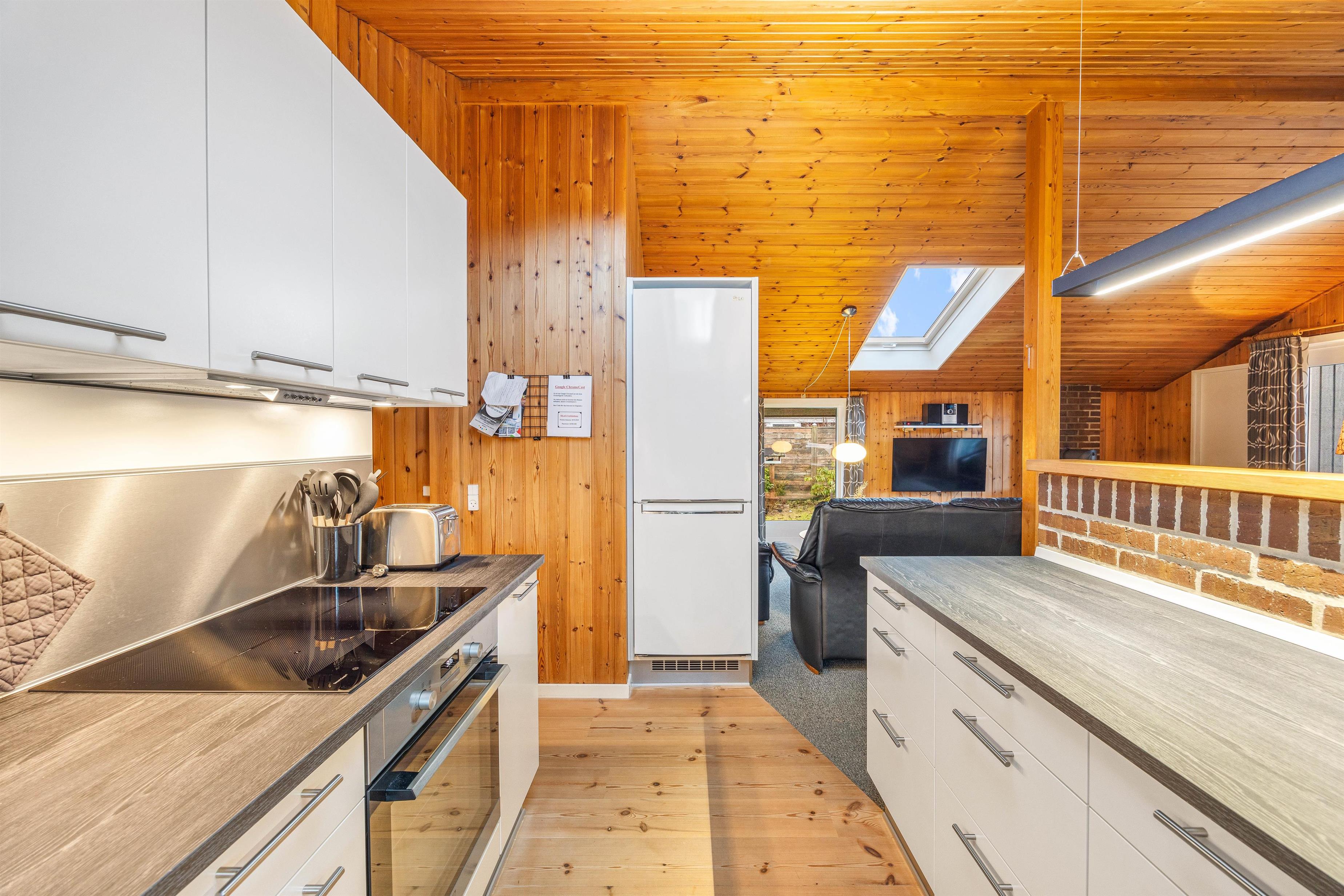Badeværelset og køkkenet er blevet renoveret i 2022. Køkkenet har nu et fyrretræsgulv og en induktionsplade.