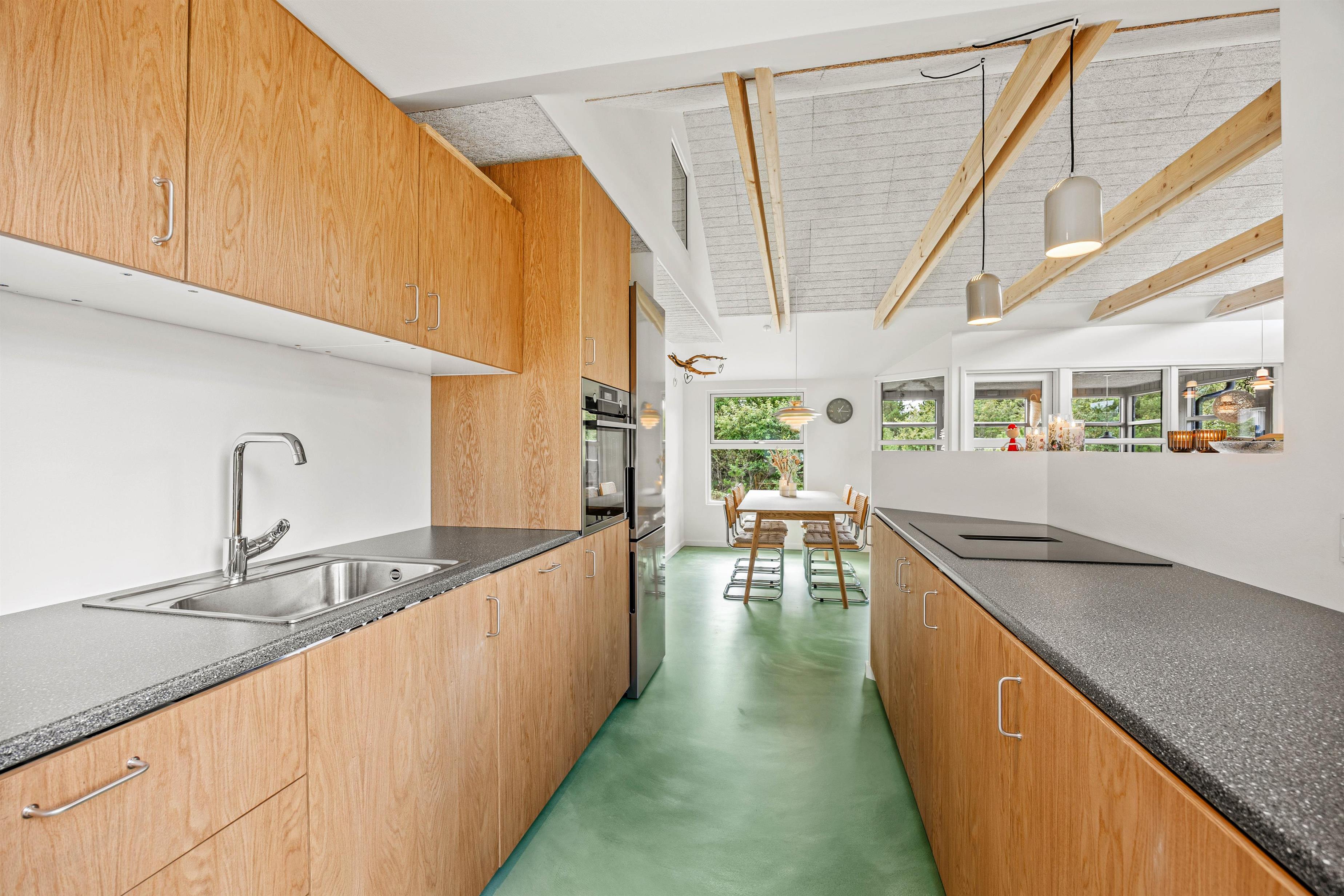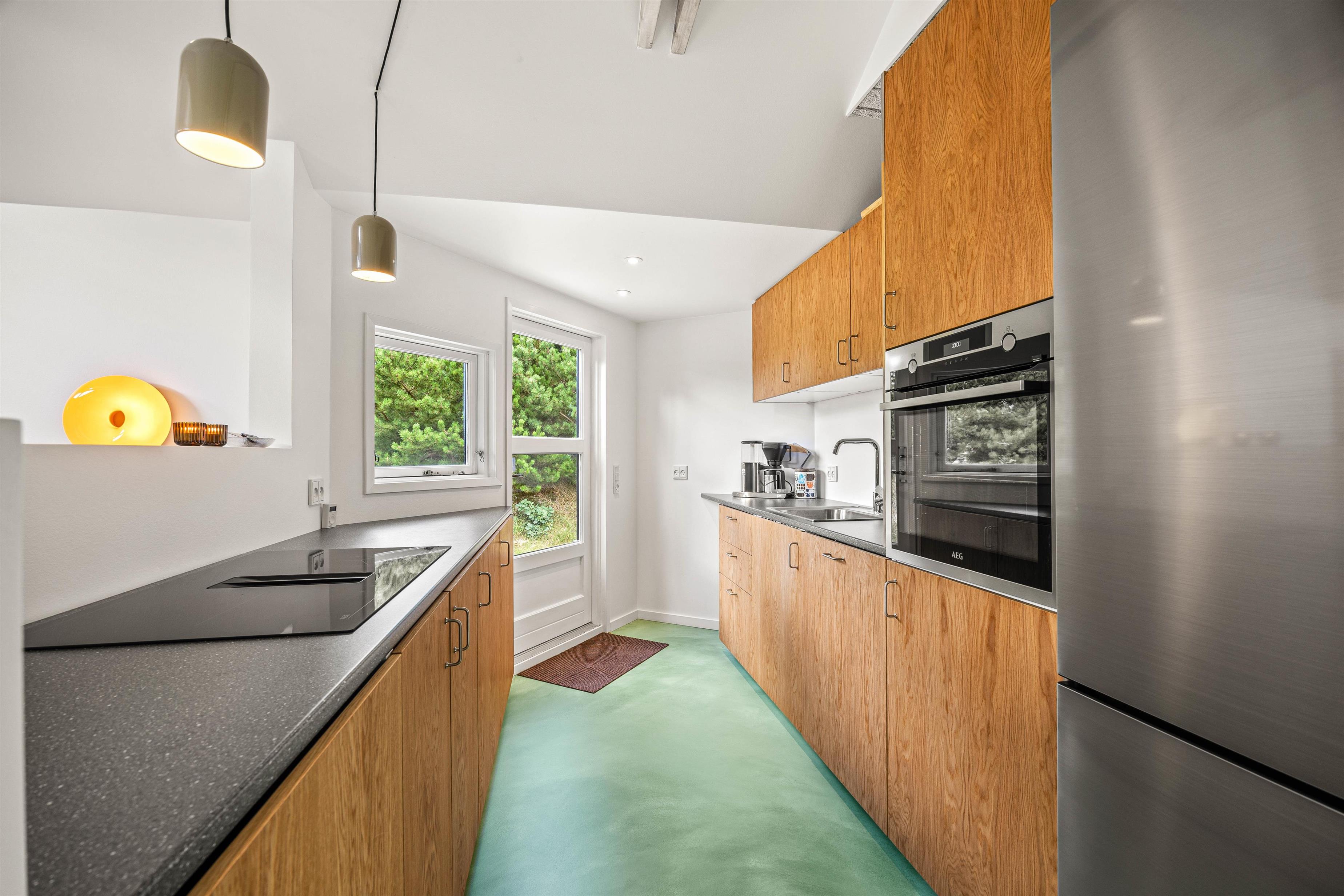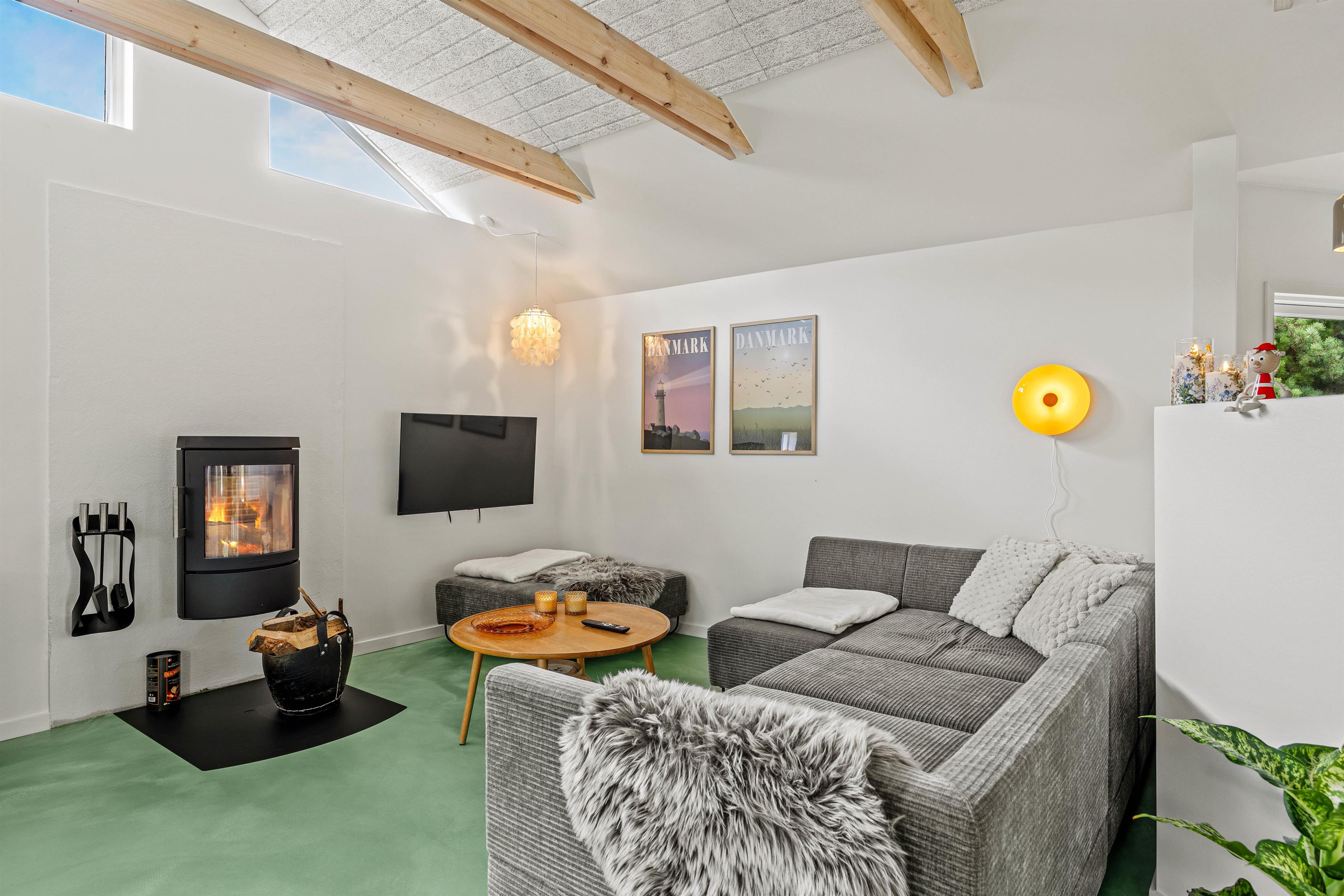 Ingen detaljer vil være overset i sommerhuset. Med induktionskomfur og en opvaskemaskine i køkkenet bliver madlavningen en leg for jeres feriekok, og der er rigelig plads til jeres indkøb af mad, idet huset også rummer en separat 90-liters fryser. I stuen vil I på kølige aftener kunne hygge jer foran brændeovnen - det er balsam for sjælen at slappe til dens knitren.