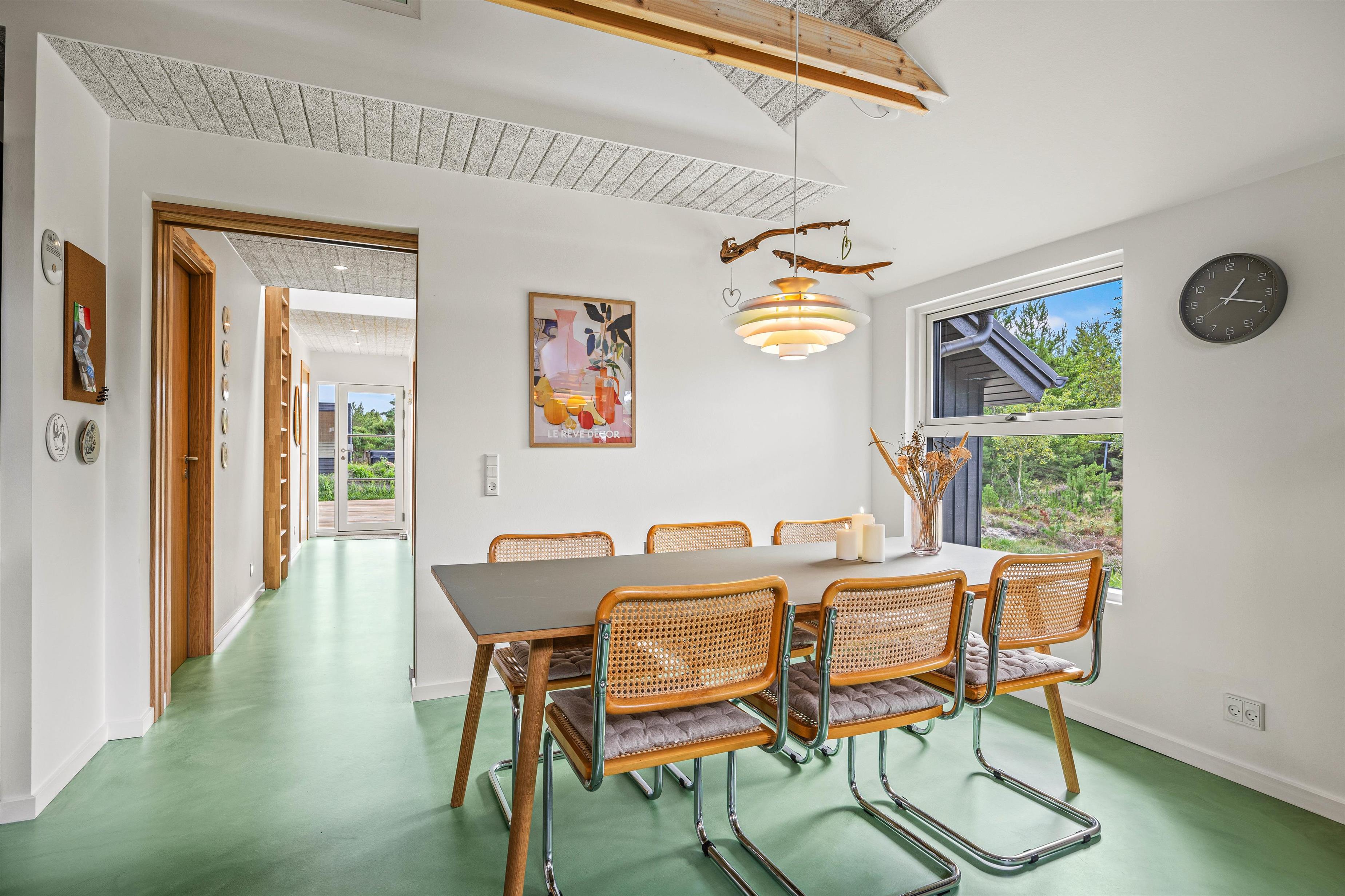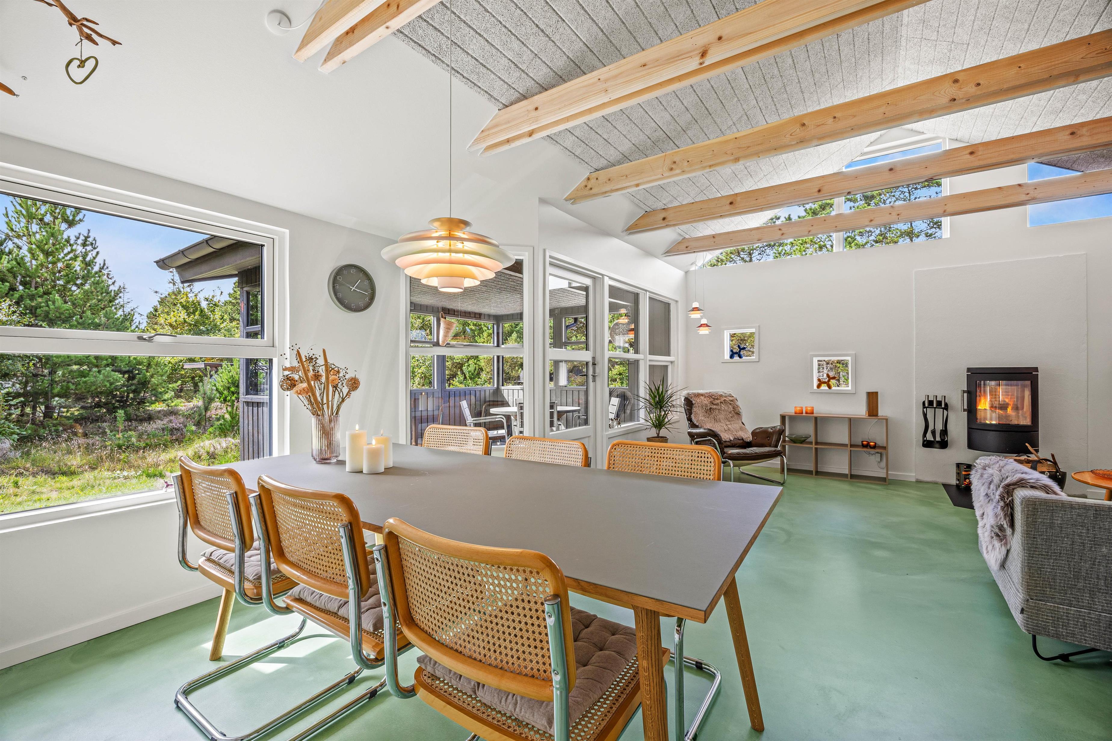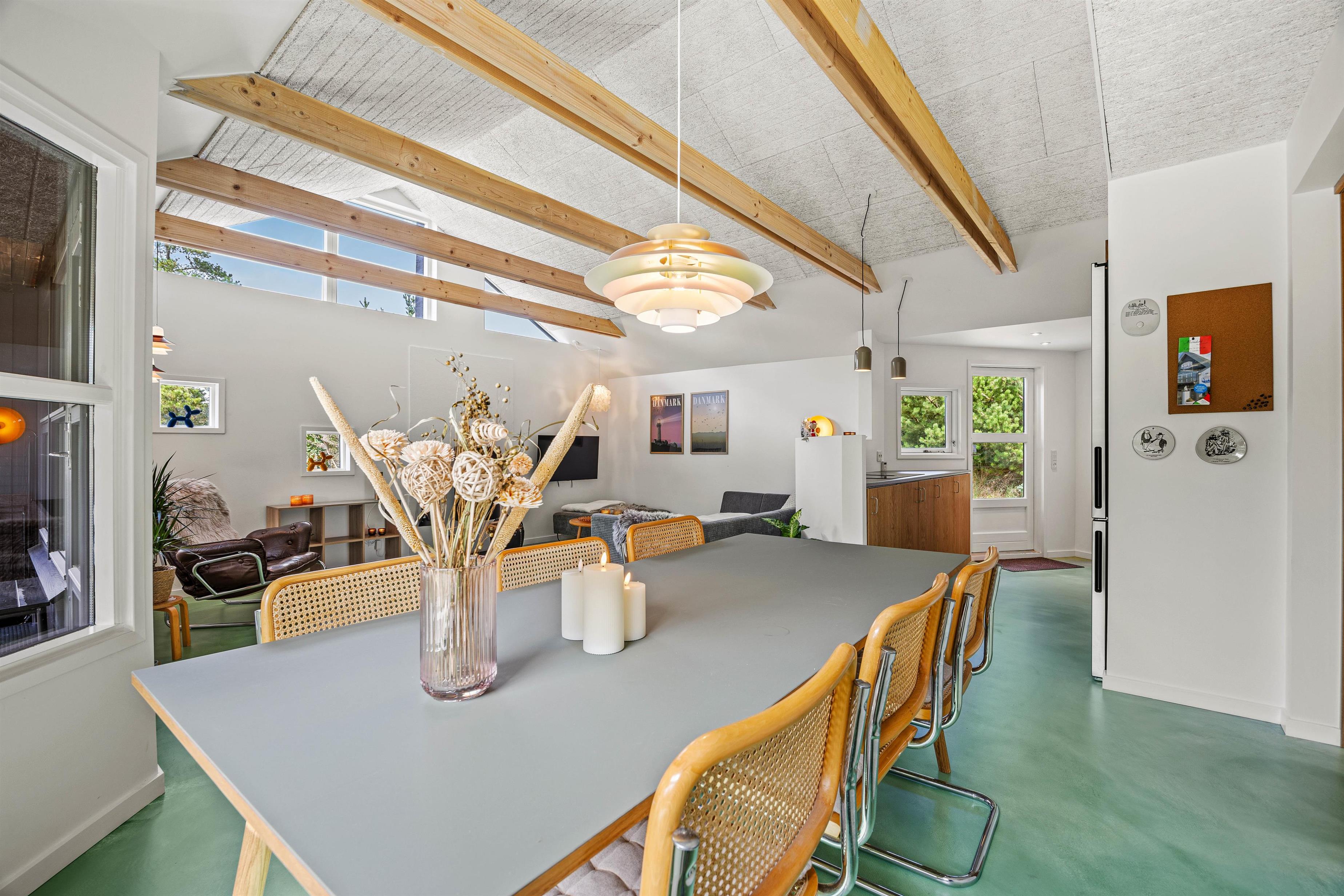 Ingen detaljer vil være overset i sommerhuset. Med induktionskomfur og en opvaskemaskine i køkkenet bliver madlavningen en leg for jeres feriekok, og der er rigelig plads til jeres indkøb af mad, idet huset også rummer en separat 90-liters fryser. I stuen vil I på kølige aftener kunne hygge jer foran brændeovnen - det er balsam for sjælen at slappe til dens knitren.