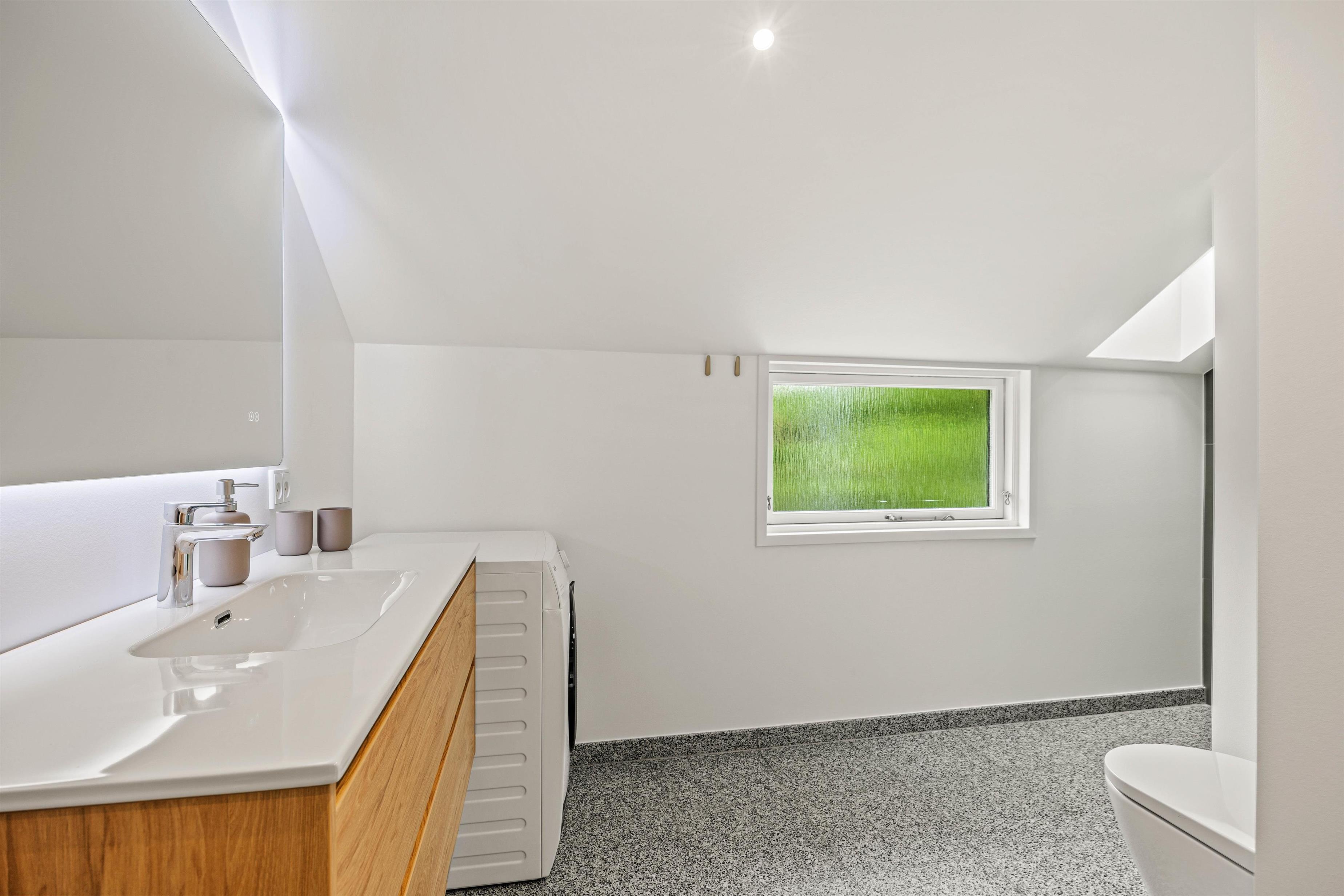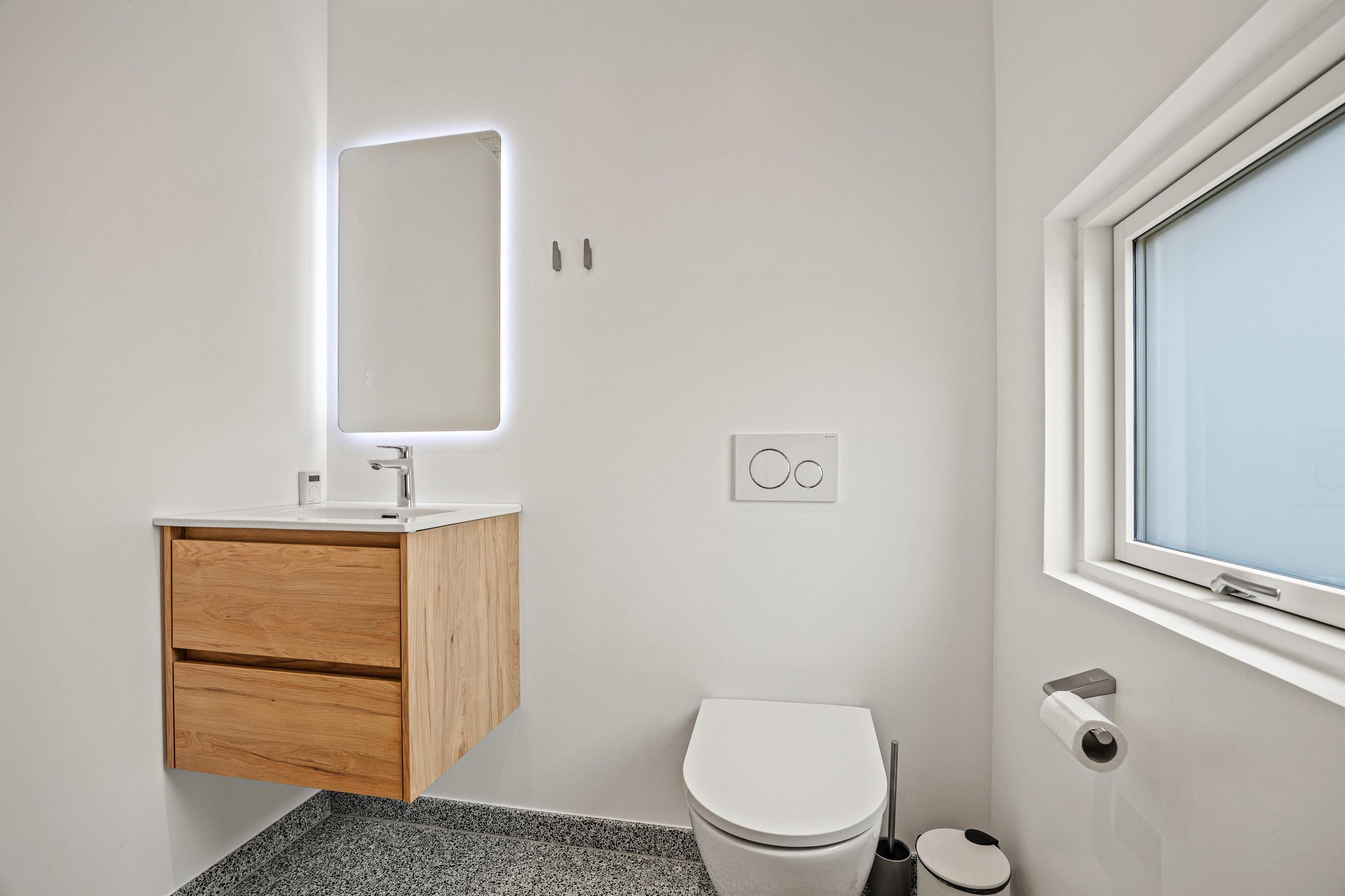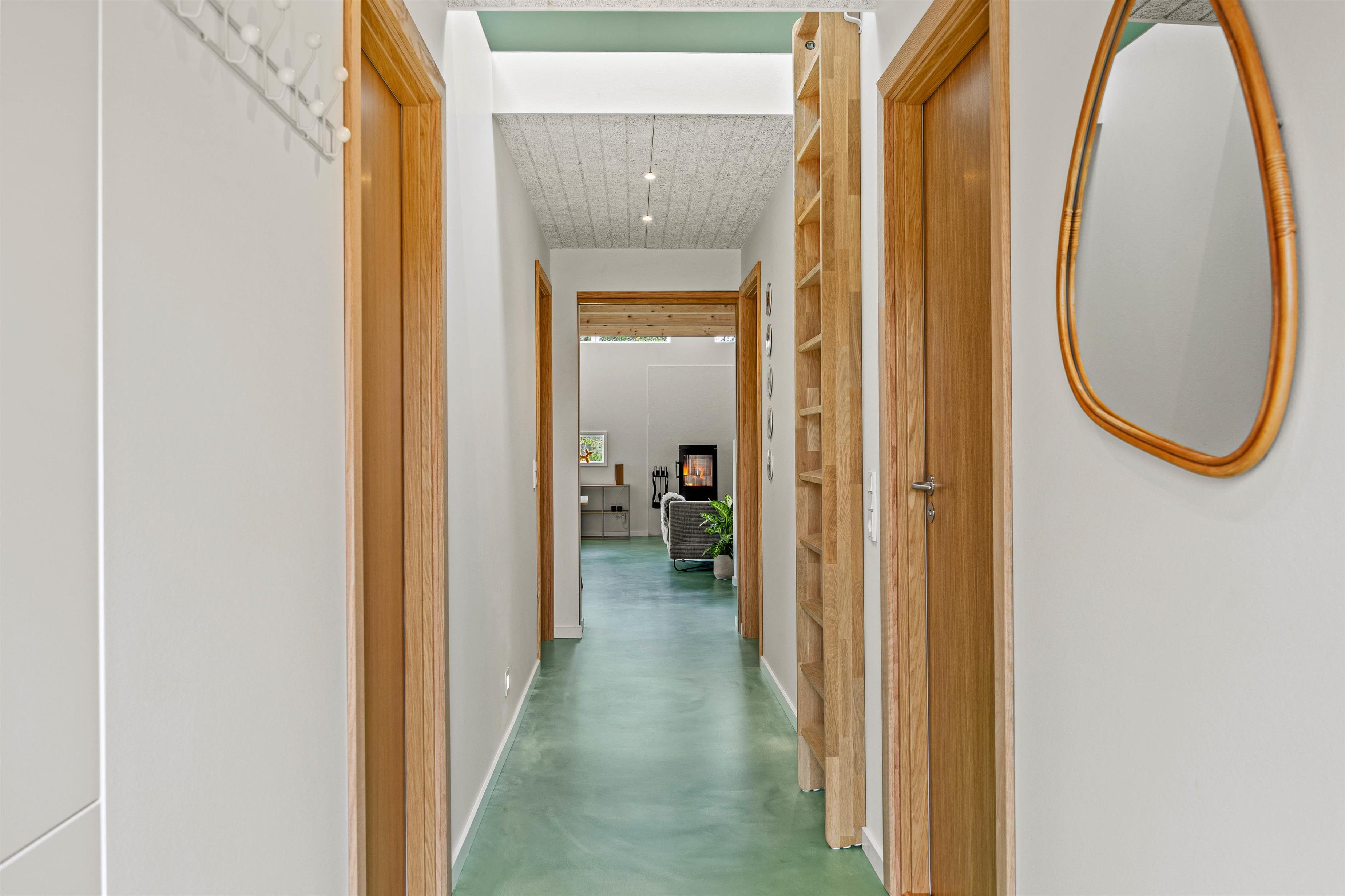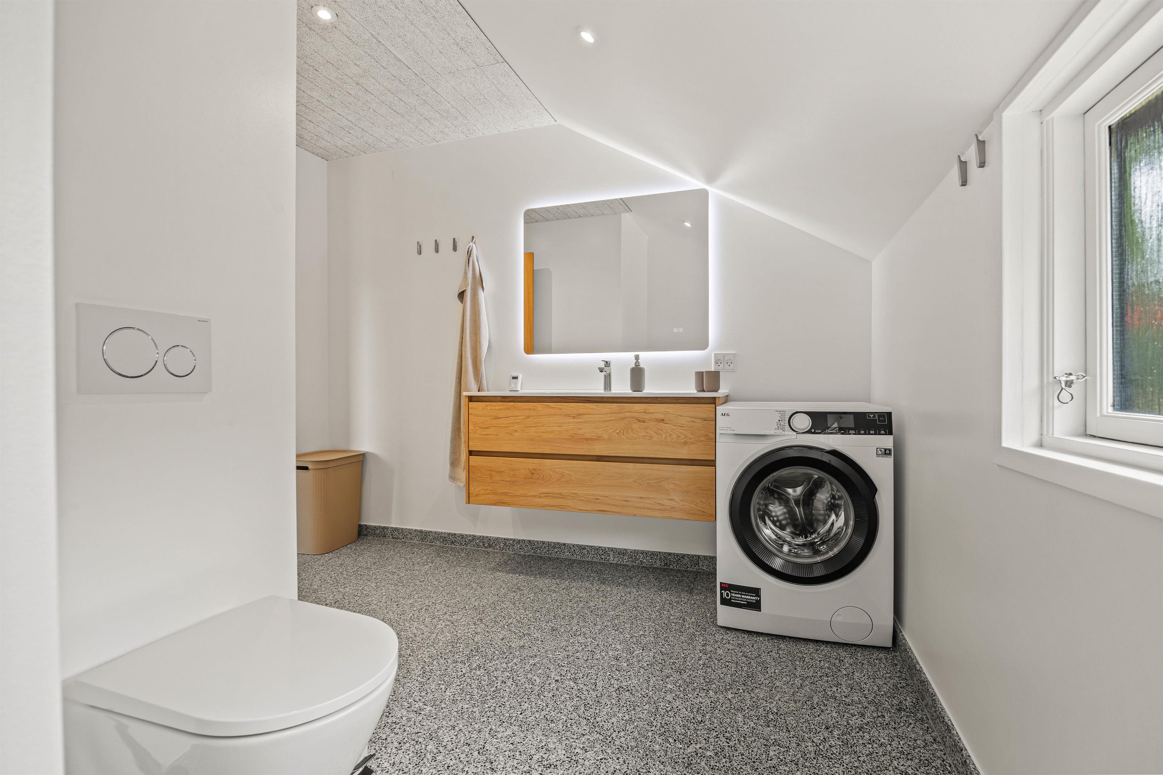 Sommerhusets soverum tilbyder god plads og komfort til op til 6 personer i de 3 dobbeltsenge. Her vil I kunne få nætter med ro og hvile efter dage fyldt med spændende aktiviteter både ude og inde, og husets indeklima styres effektivt af luft-til-vand-varmepumpen. Der er både badeværelse og gæstetoilet i sommerhuset, så I ikke behøver at stå i kø til morgentoiletten, og der er gulvvarme i hele huset. Når I har brug for at få vasket tøj, kan I benytte husets vaskemaskine.