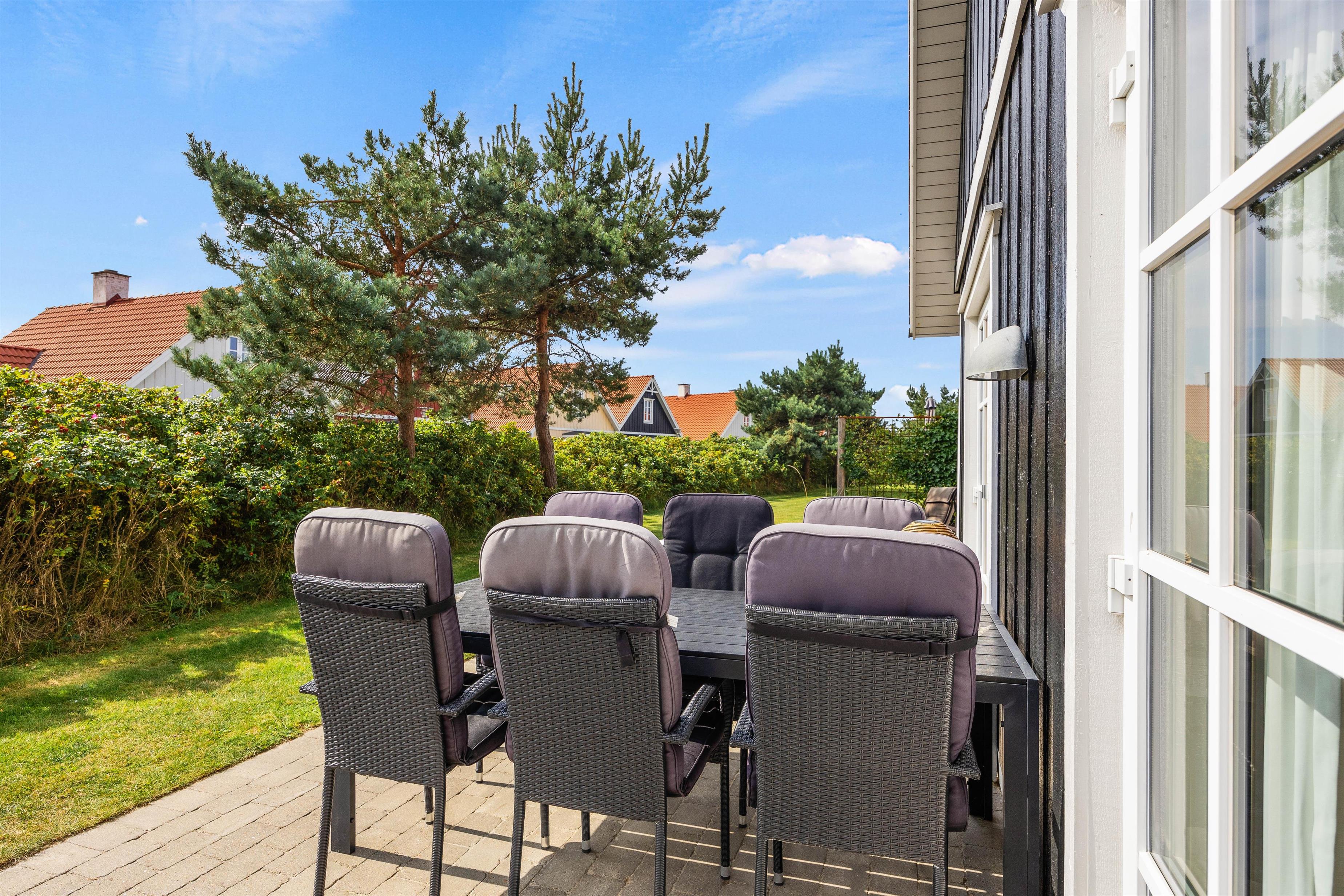 På de varme, solskinsfyldte feriedage skal I selvfølgelig udenfor. Ryk ud på terrassen, hvor I kan finde jer godt til rette i liggestole og havemøbler (bemærk blot, at havemøblerne er fjernet i vintermånederne). Terrassen er godt afskærmet af et hegn med slyngplanter og ligger godt for solen, så I kan have glæde af den det meste af dagen. Om aftenen kan I finde grillen frem og nyde en lækker middag med røde bøffer og god vin.